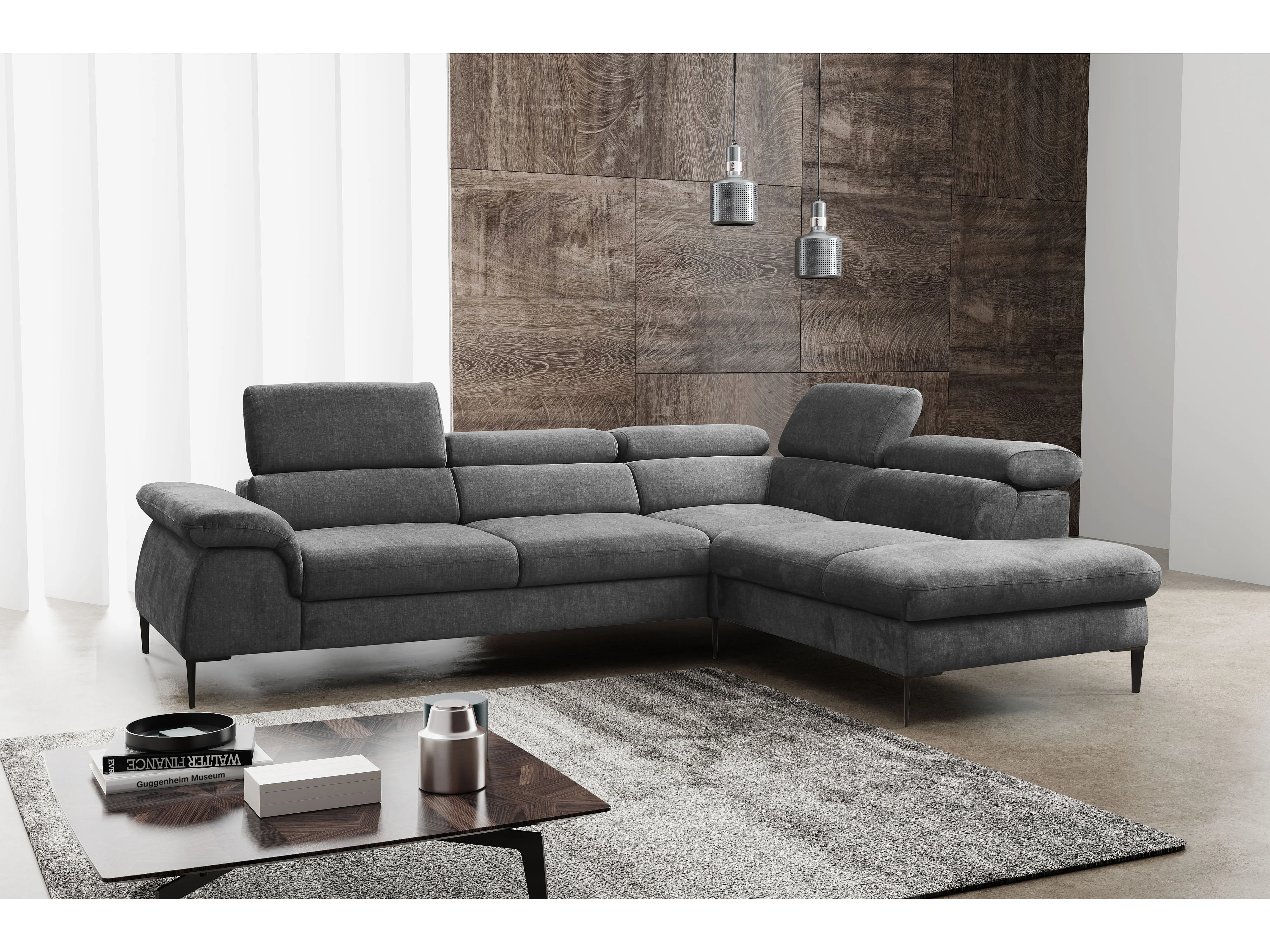 Grand canapé d'angle droit convertible en velours gris anthracite SEPINA de Pascal Morabito