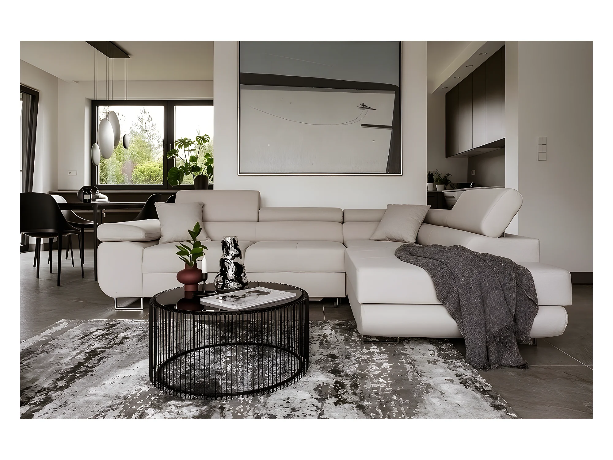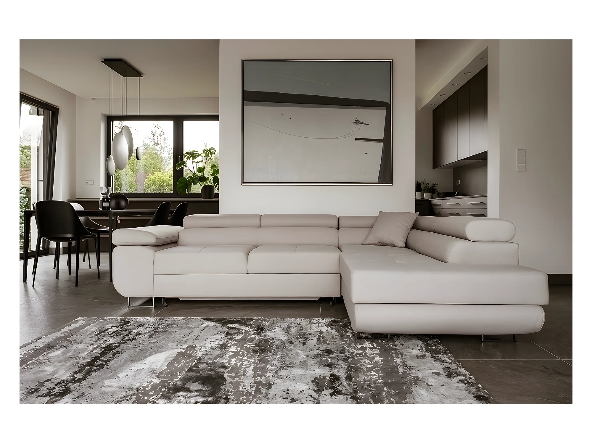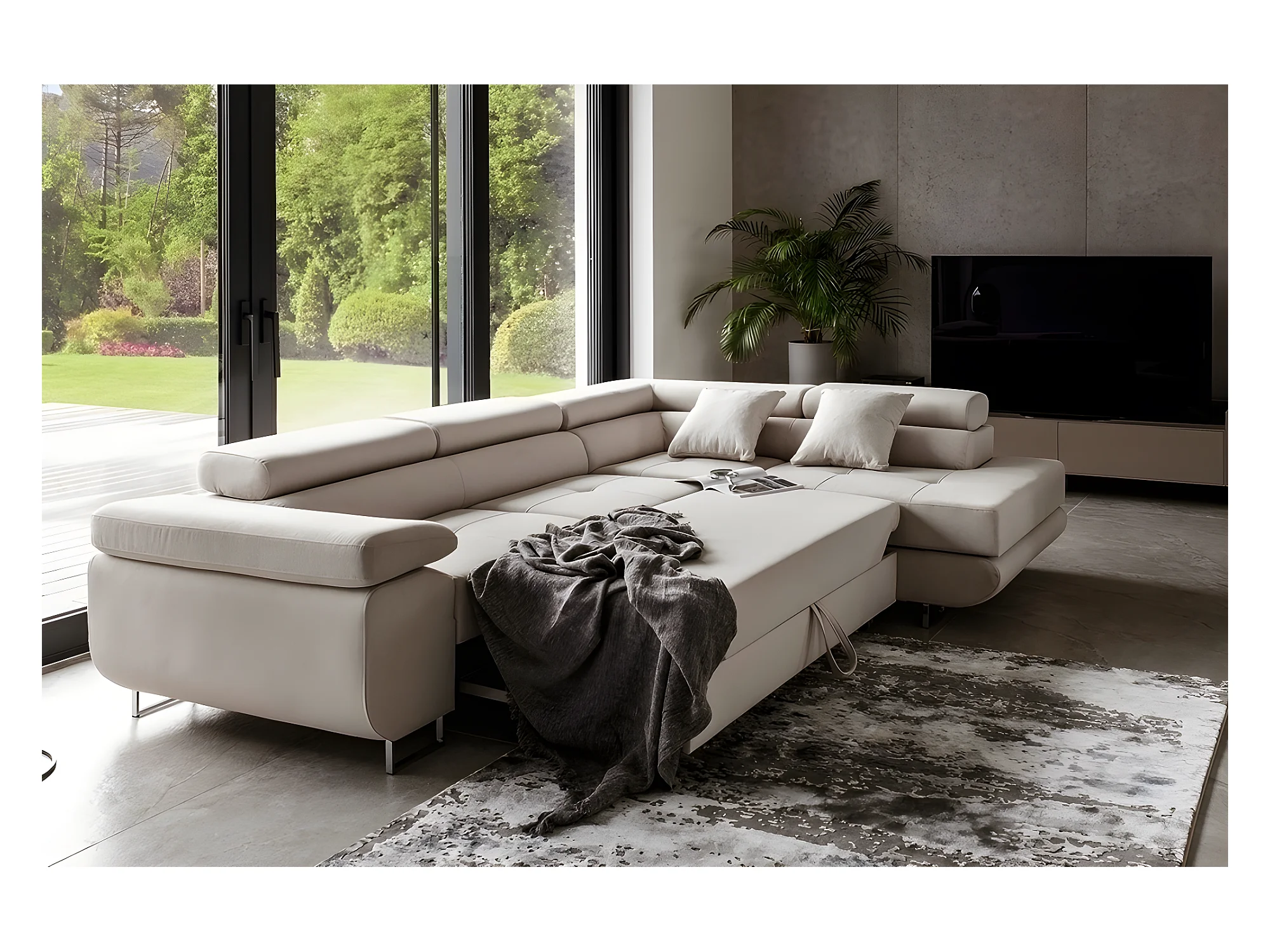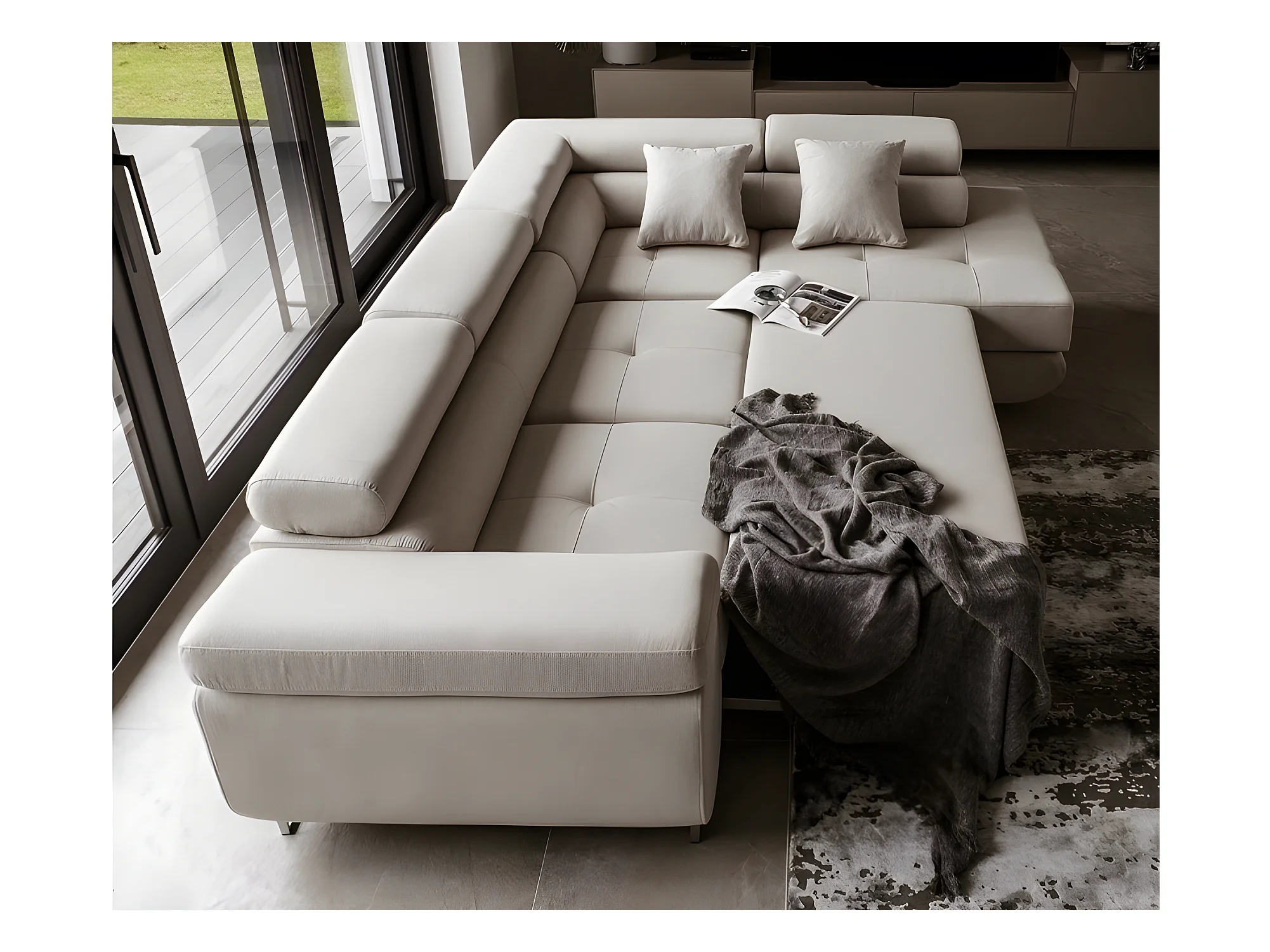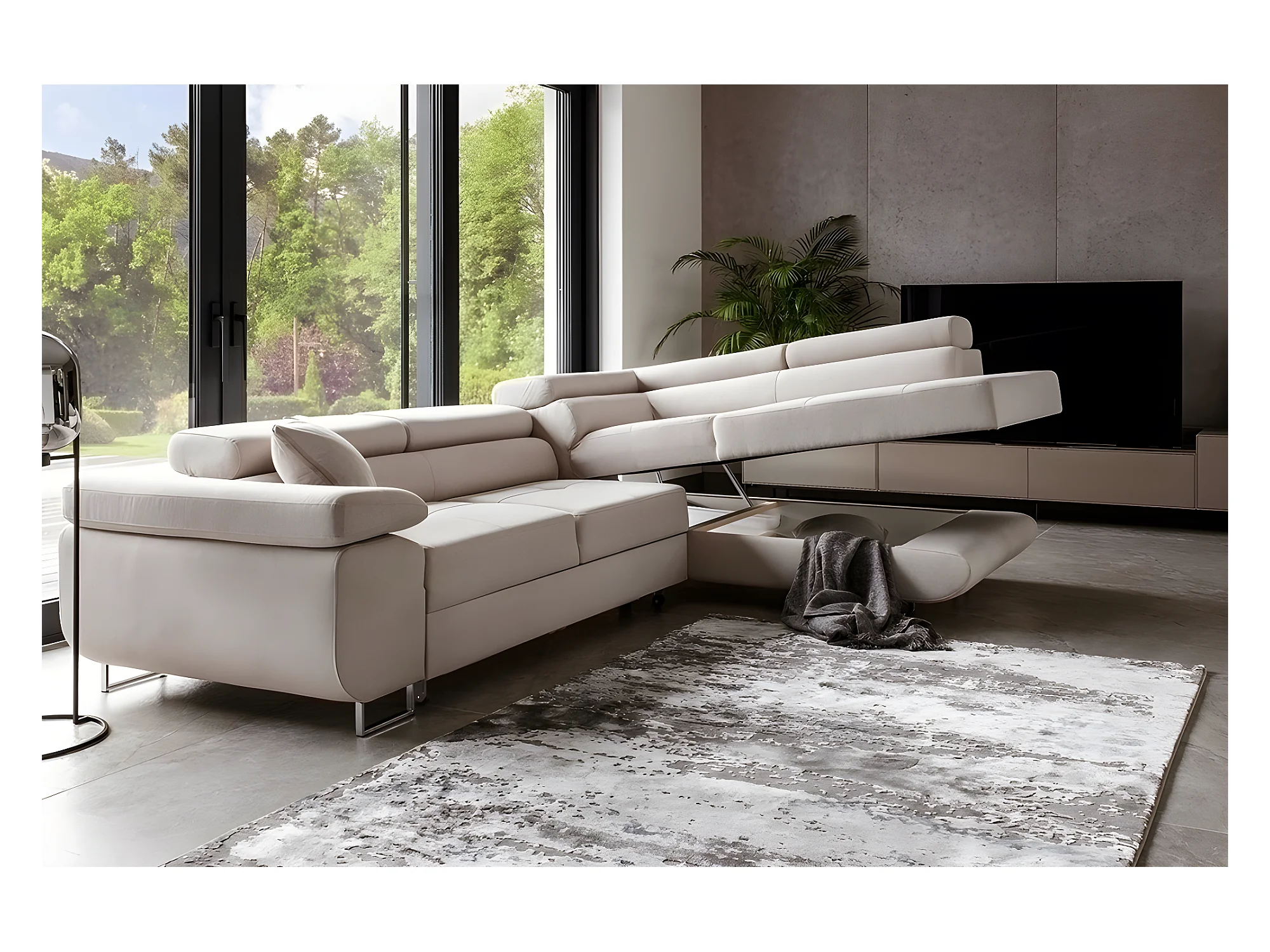 Canapé d'angle convertible en tissu luxe 5 places, ANNECY, couleur beige clair, angle droit