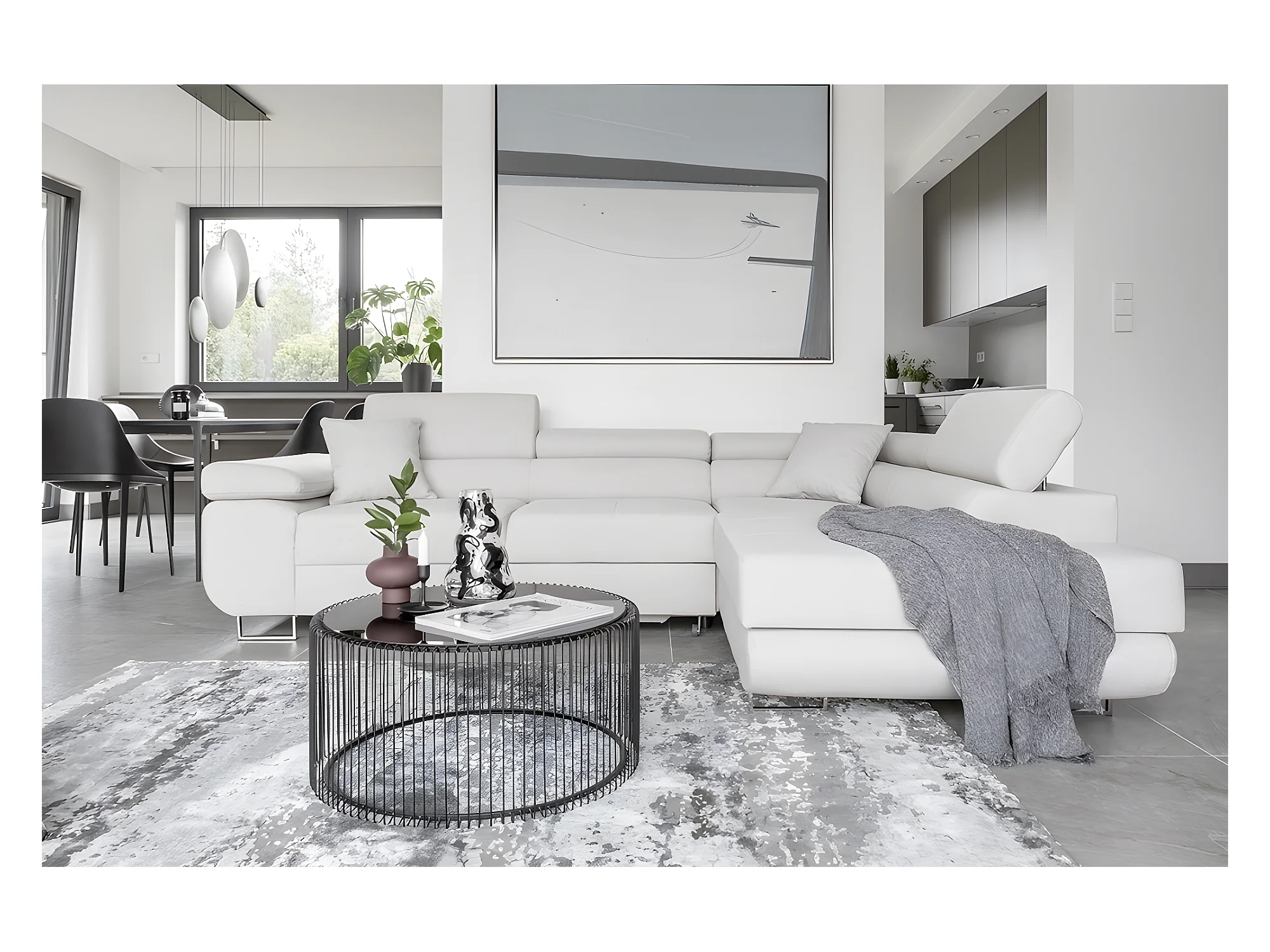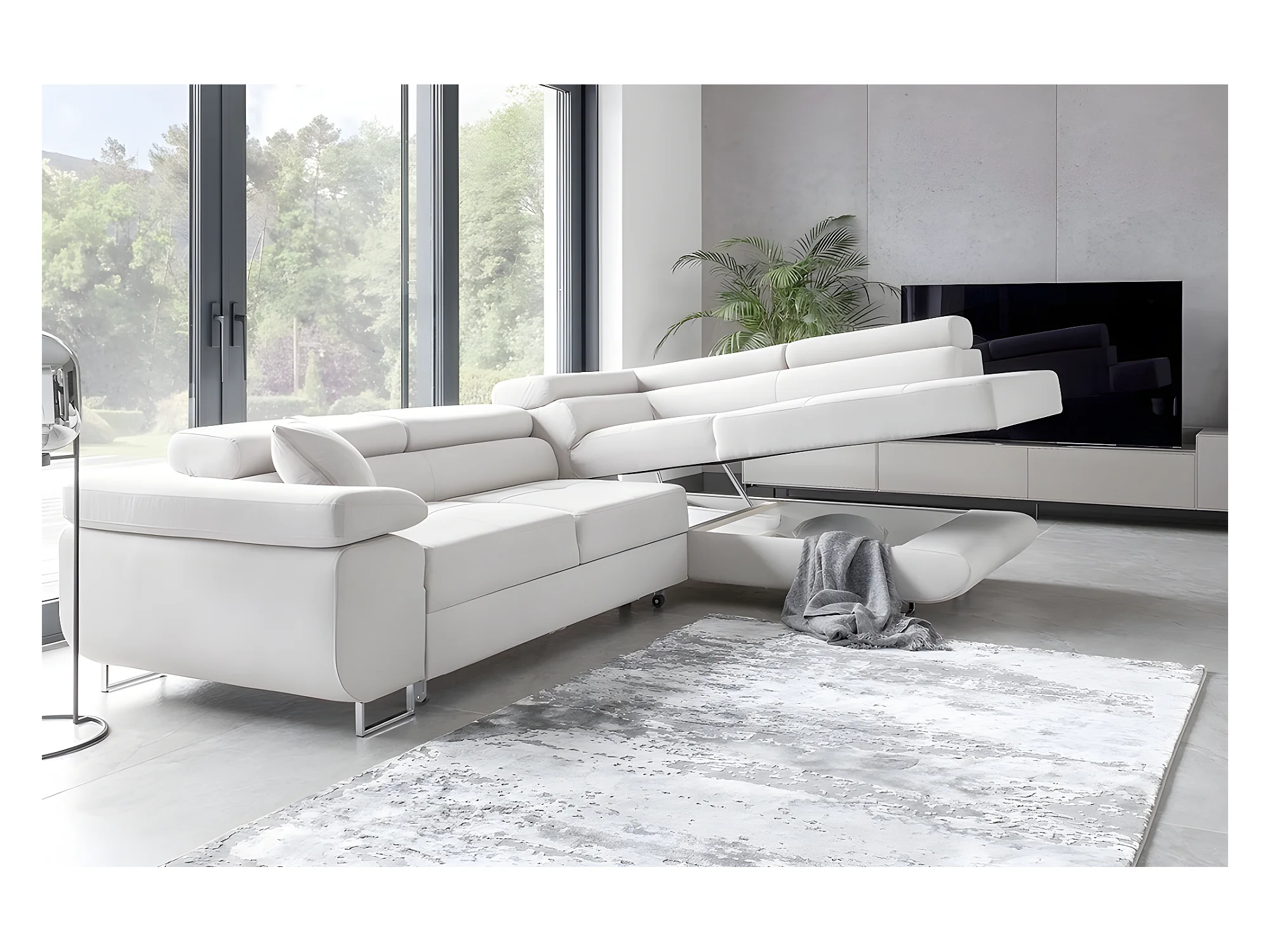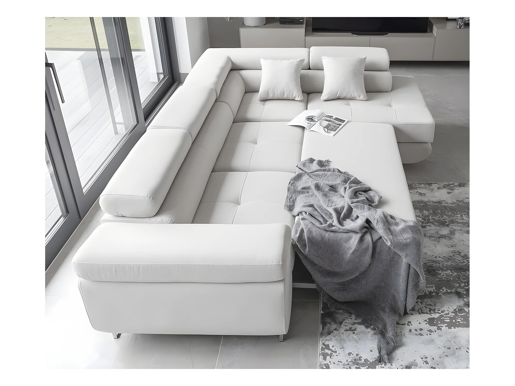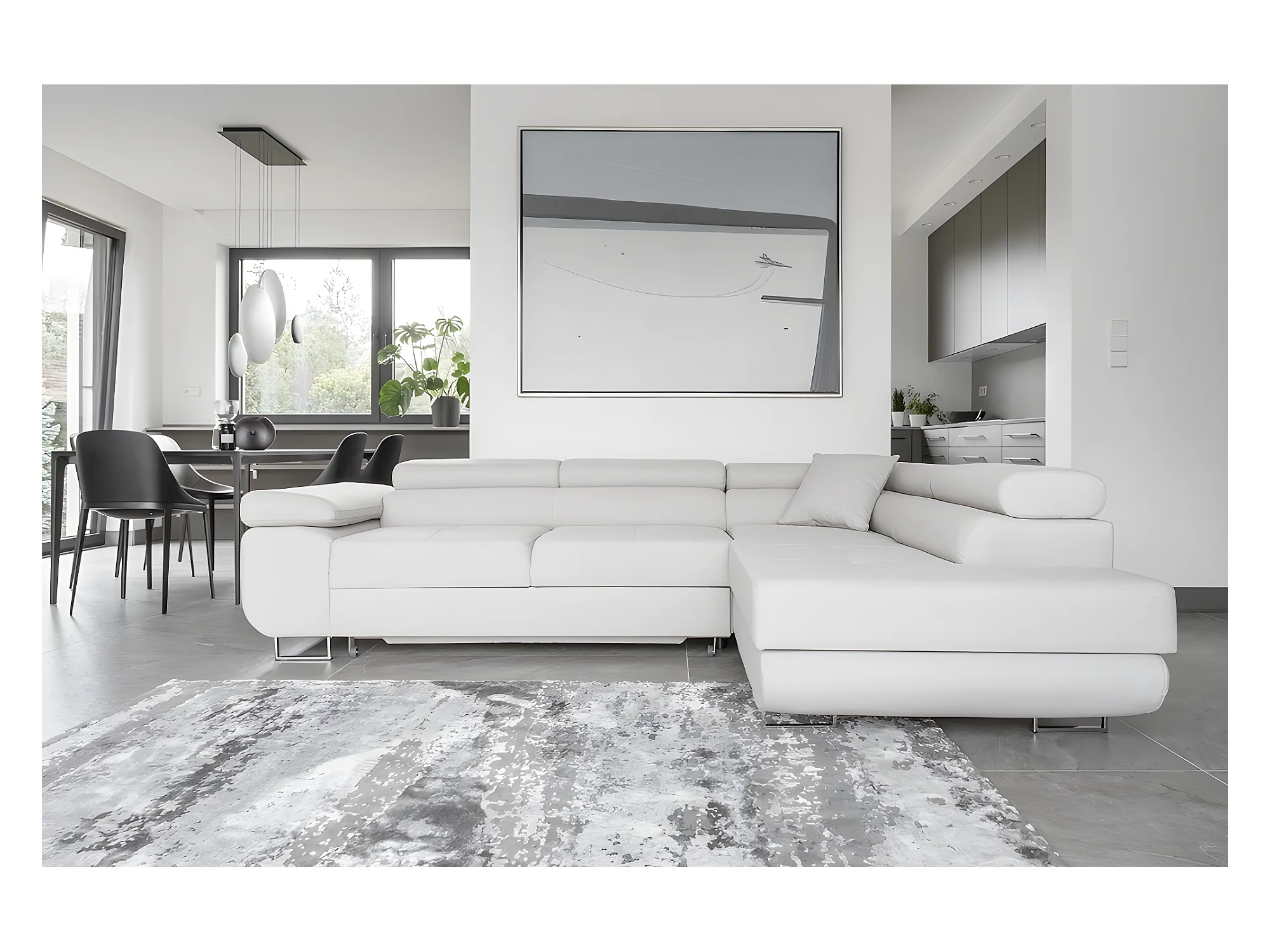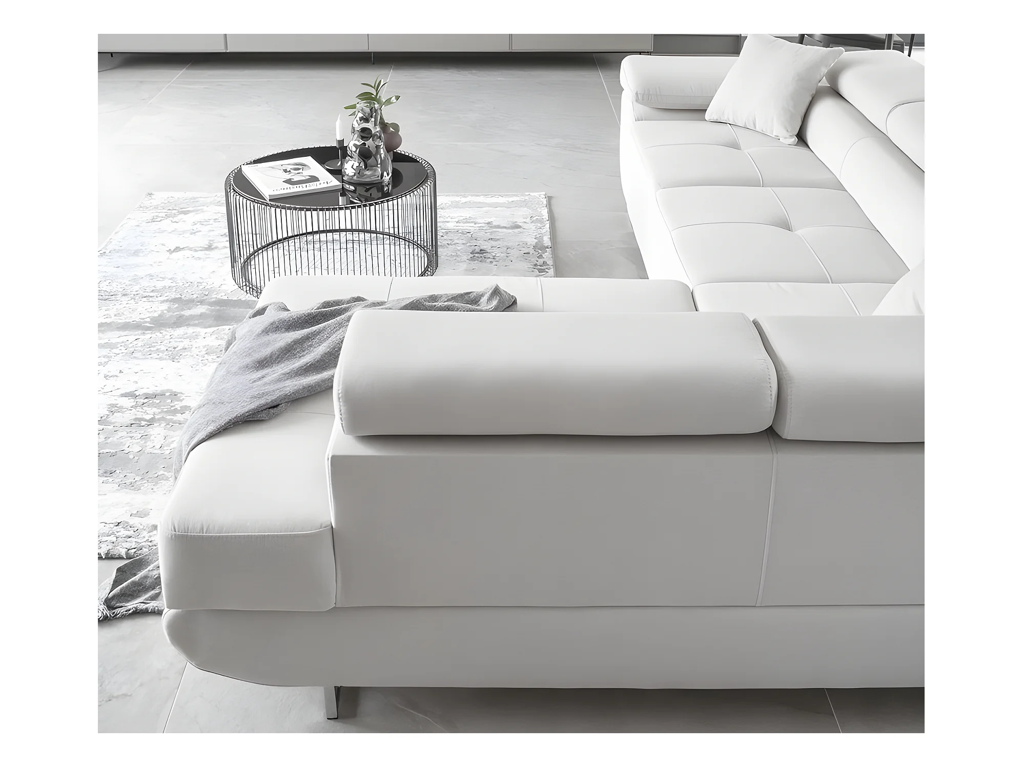 Canapé d'angle convertible en tissu luxe 5 places, ANNECY VELOURS Luxe, couleur blanc, angle droit (vu de face)