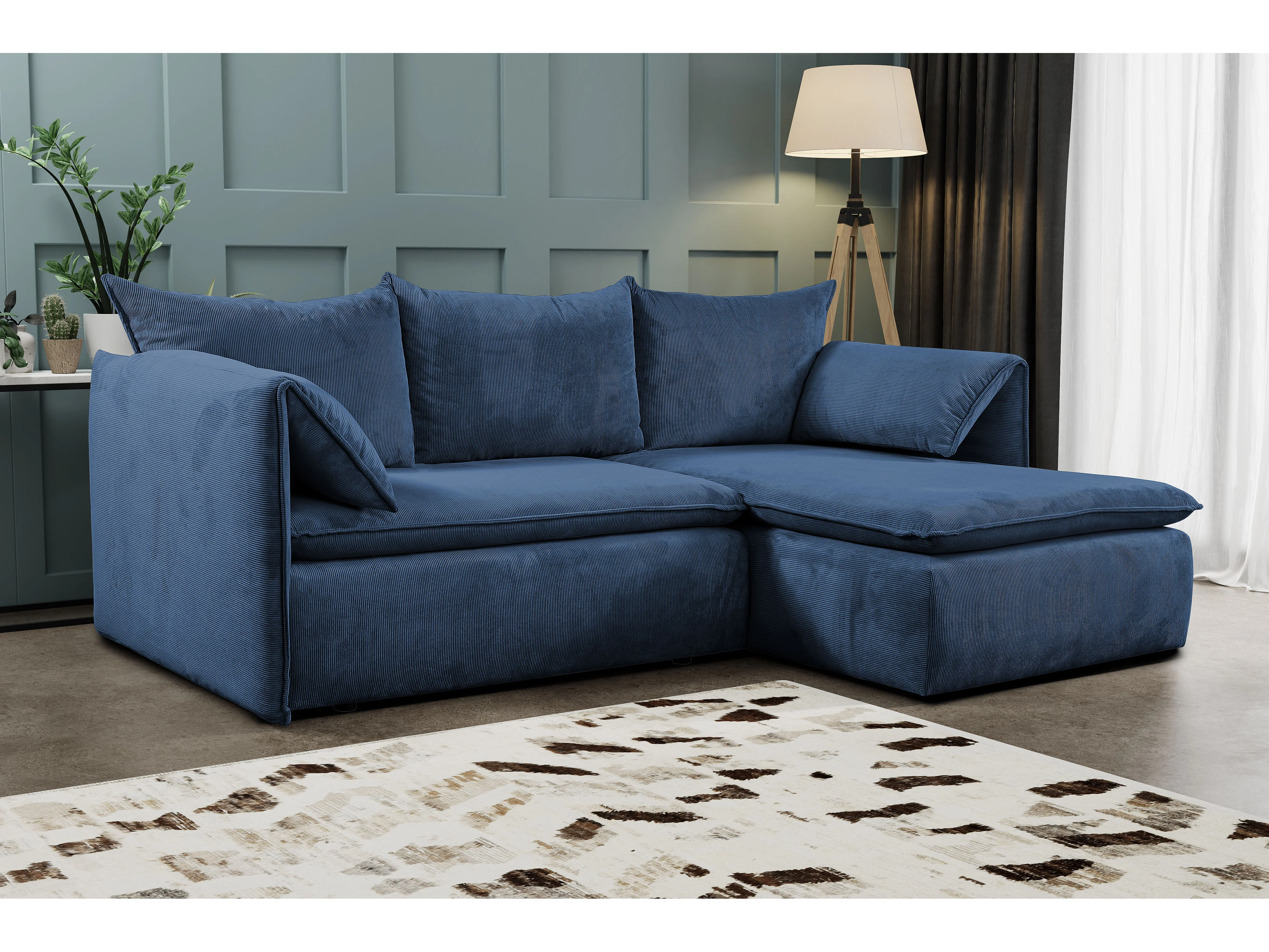 Canapé d'angle droit convertible en velours côtelé fines côtes bleu marine TEODORA