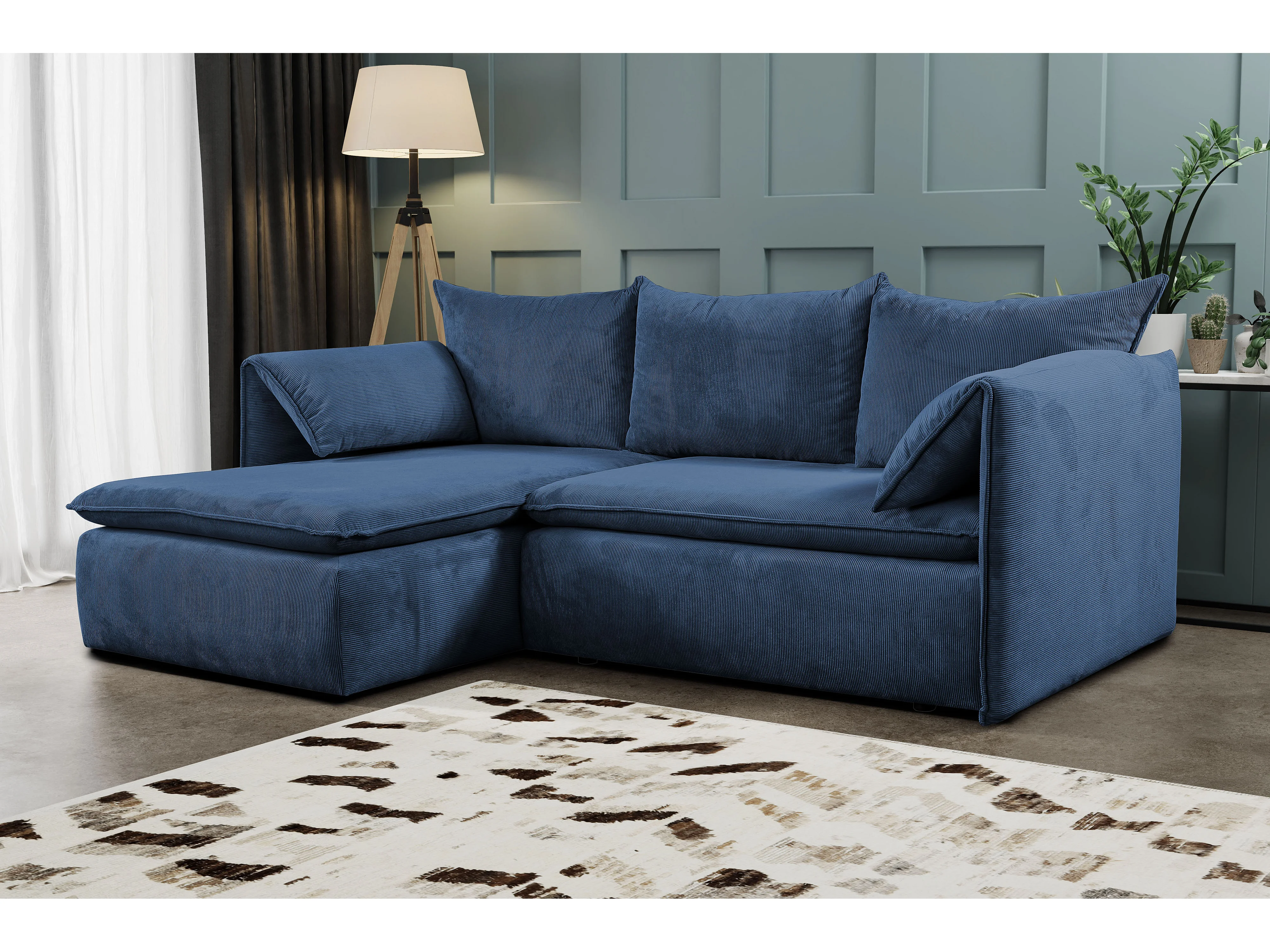 Canapé d'angle gauche convertible en velours côtelé fines côtes bleu marine TEODORA