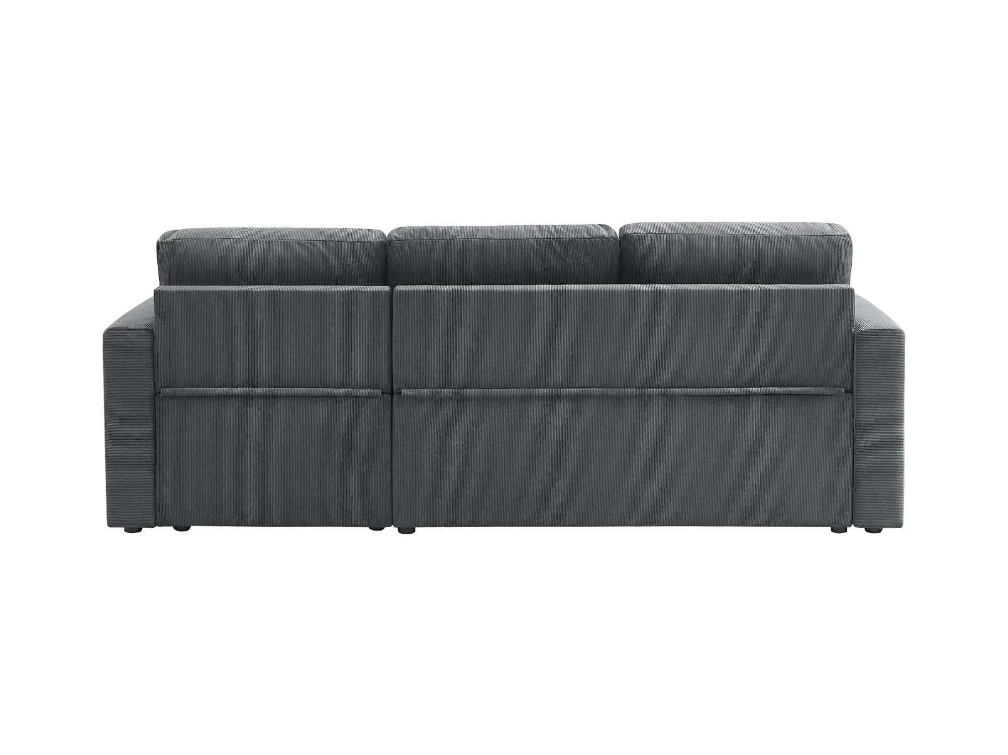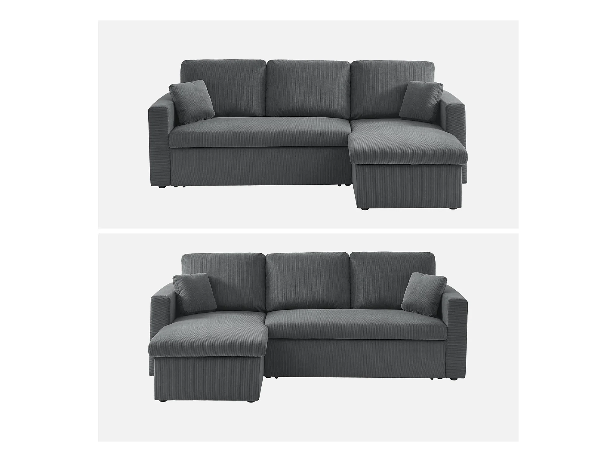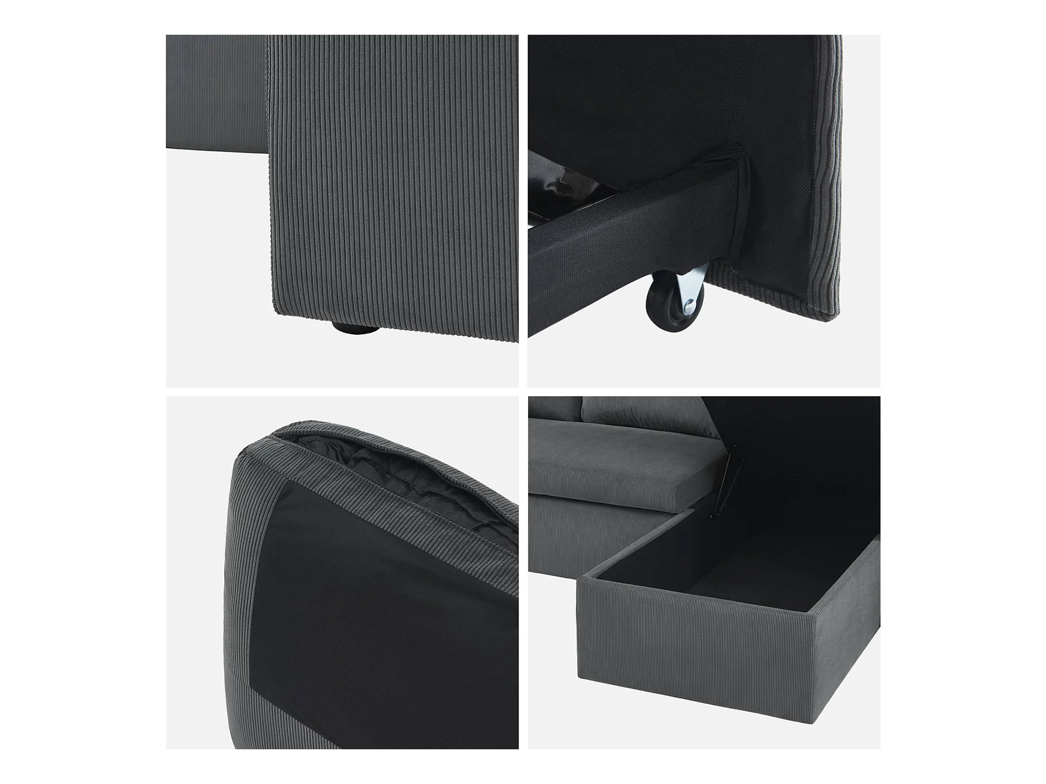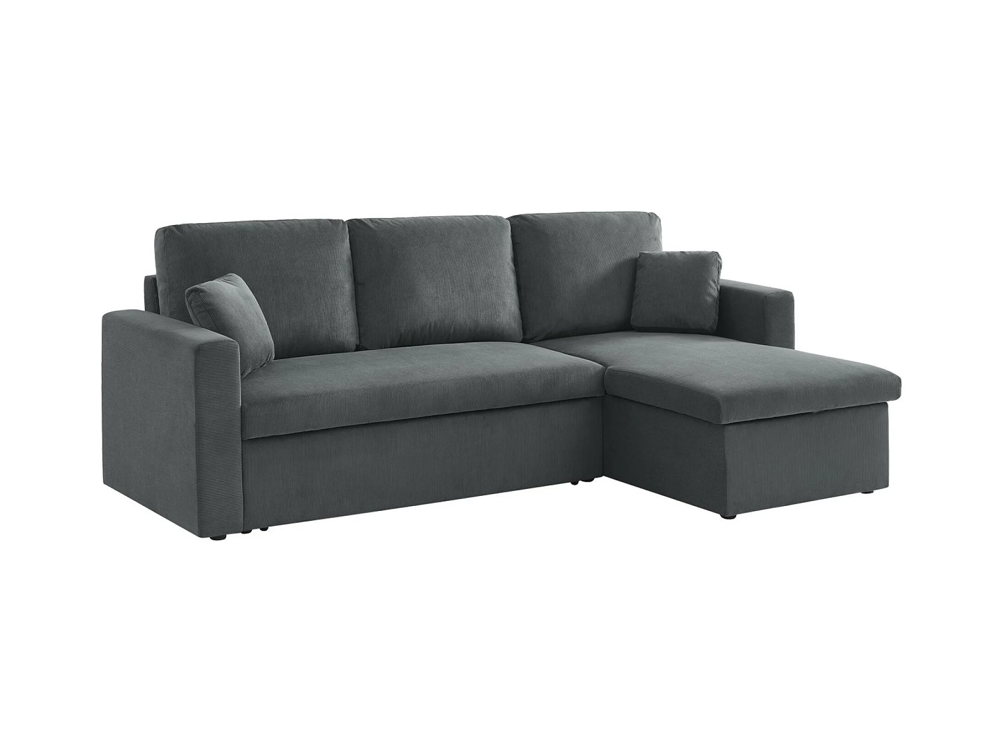 Canapé d'angle convertible en velours côtelé gris foncé - IDA - 3 places. fauteuil d'angle réversible coffre rangement lit modulable