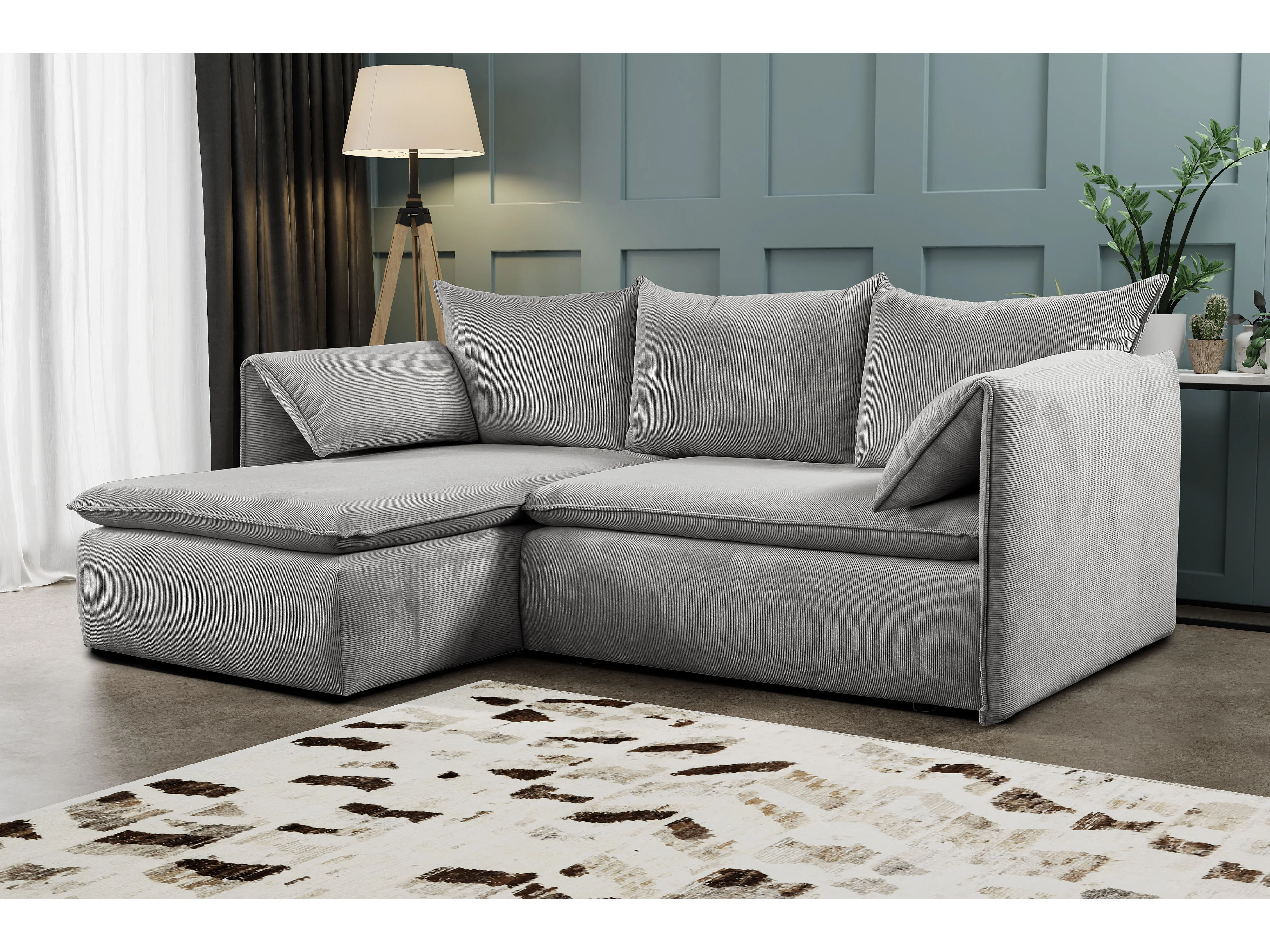 Canapé d'angle gauche convertible en velours côtelé fines côtes gris TEODORA
