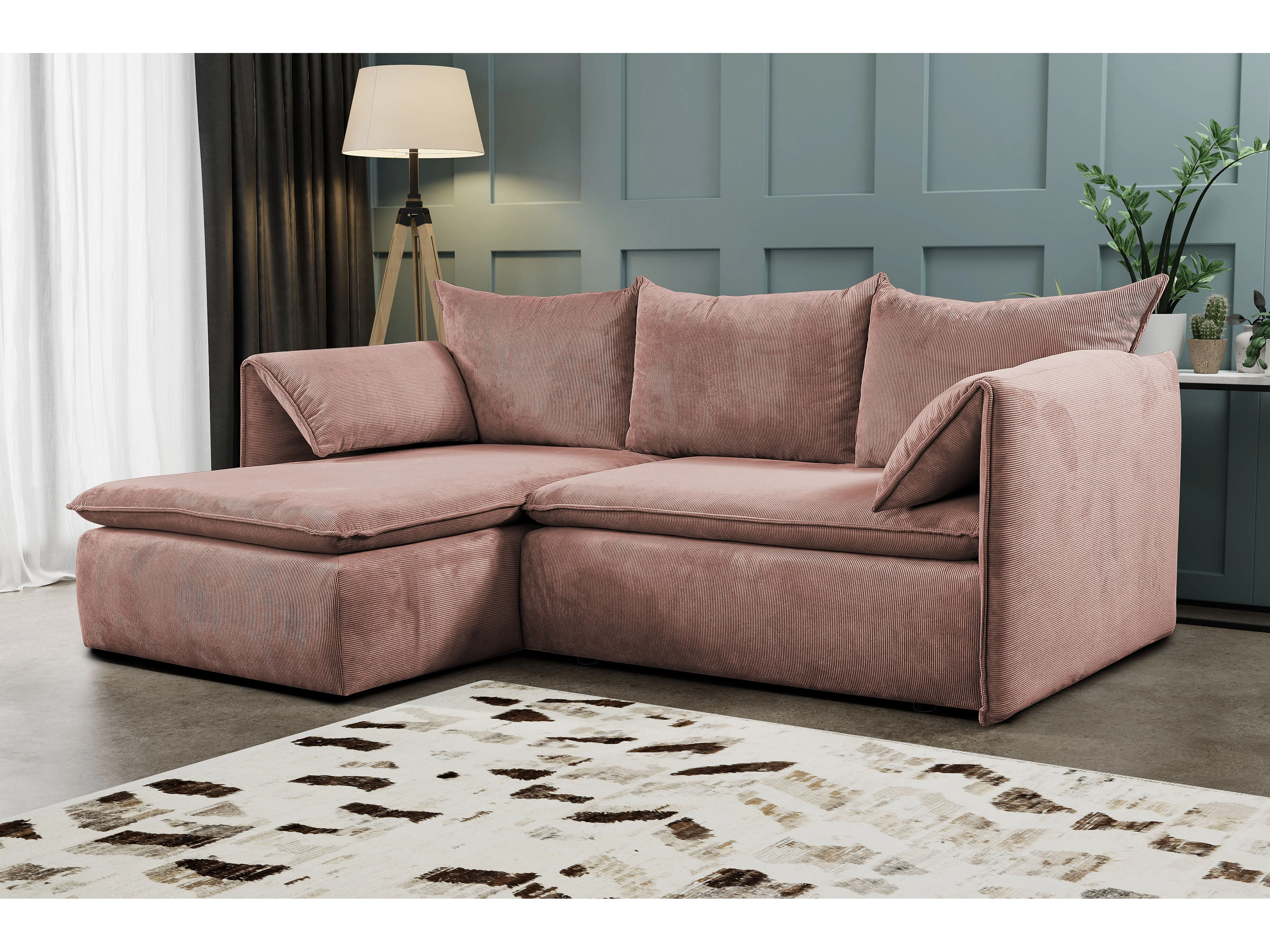 Canapé d'angle gauche convertible en velours côtelé fines côtes rose TEODORA