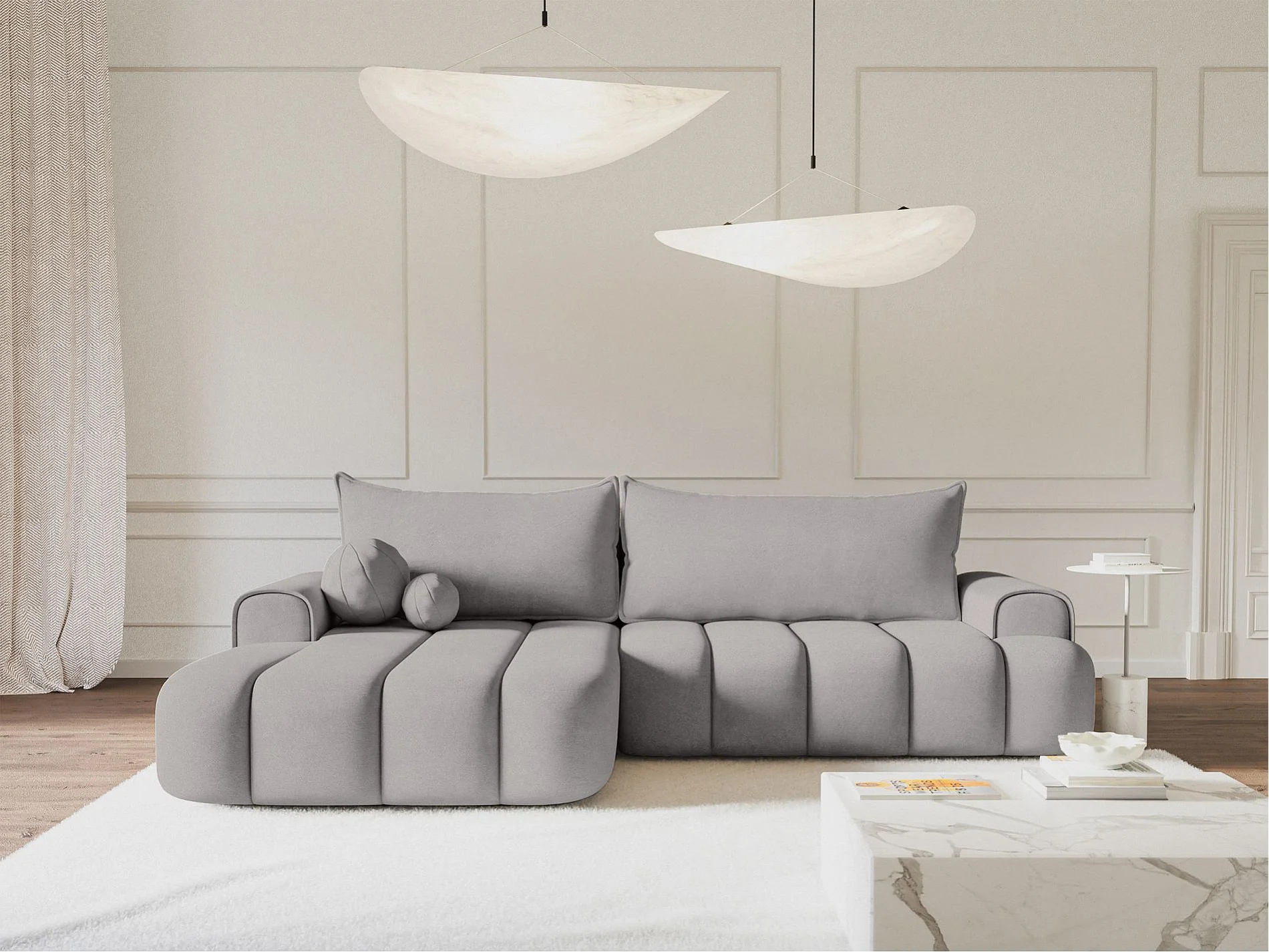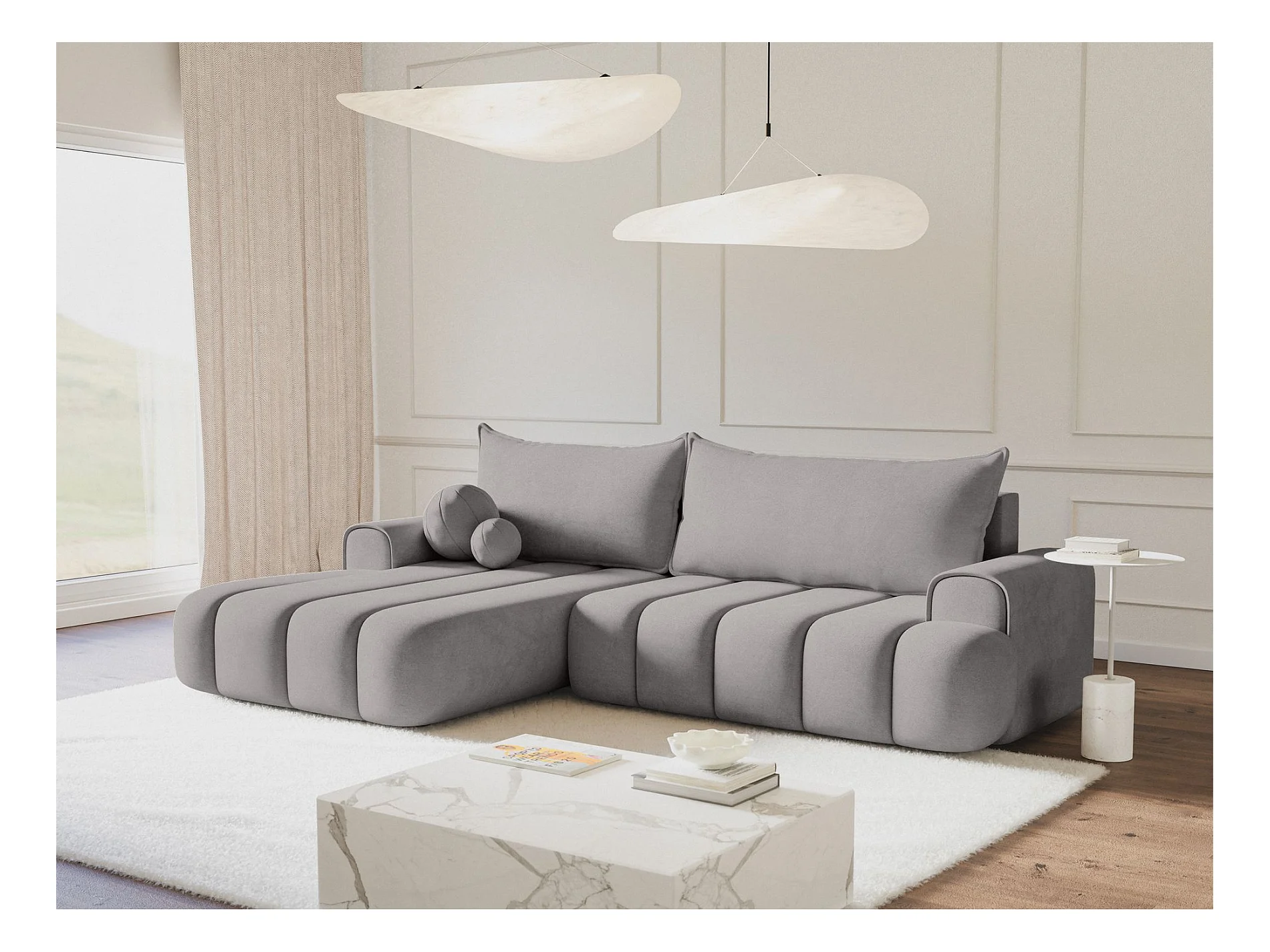 Canapé d'angle convertible - en velours gris avec revêtement -côté gauche - DANDELINO