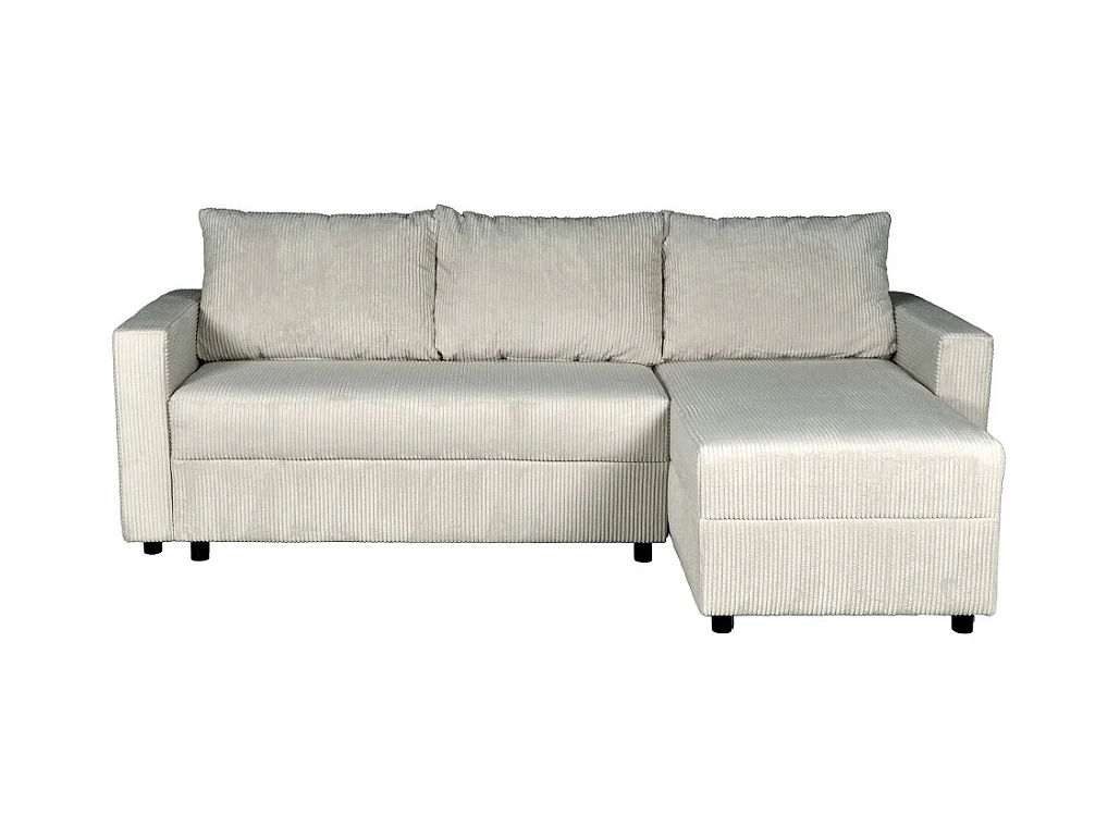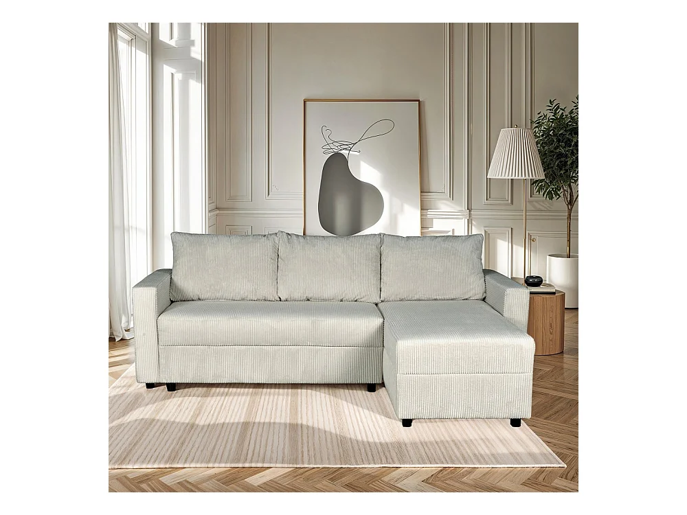 Canapé d'angle convertible et réversible avec coffre THEO en velours côtelé / Gris clair