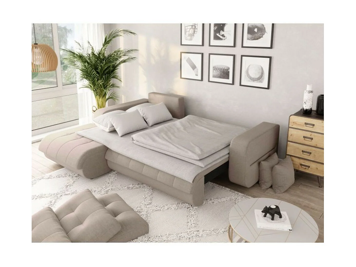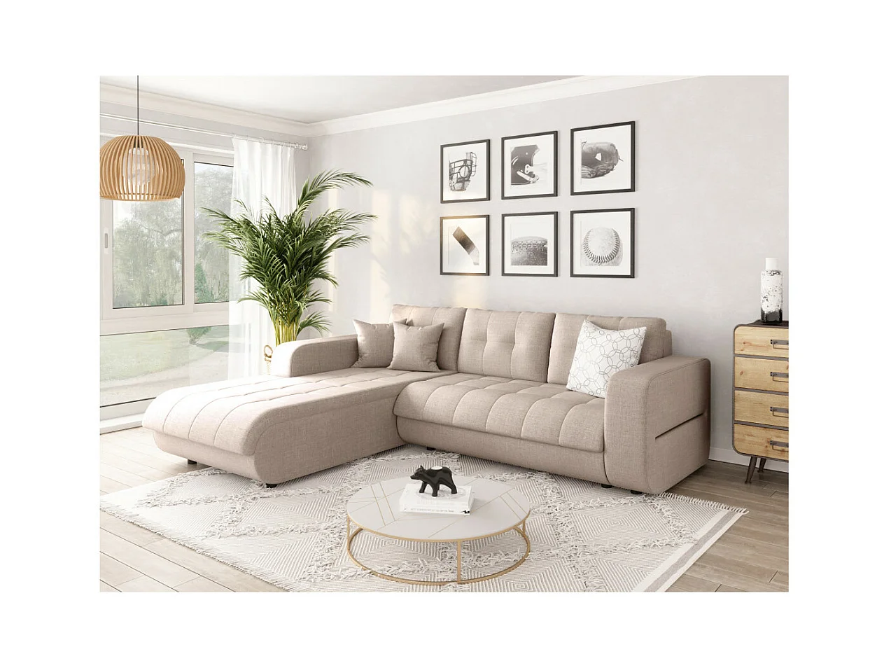 Canapé d'Angle Convertible Gauche 4 Places en Tissu