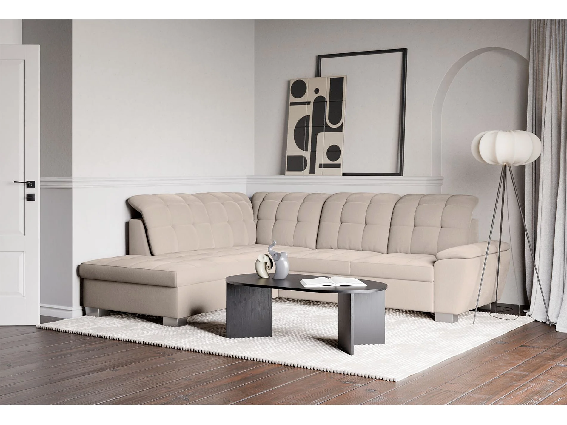 Canapé d'angle convertible L – beige– côté gauche – JAMAAL