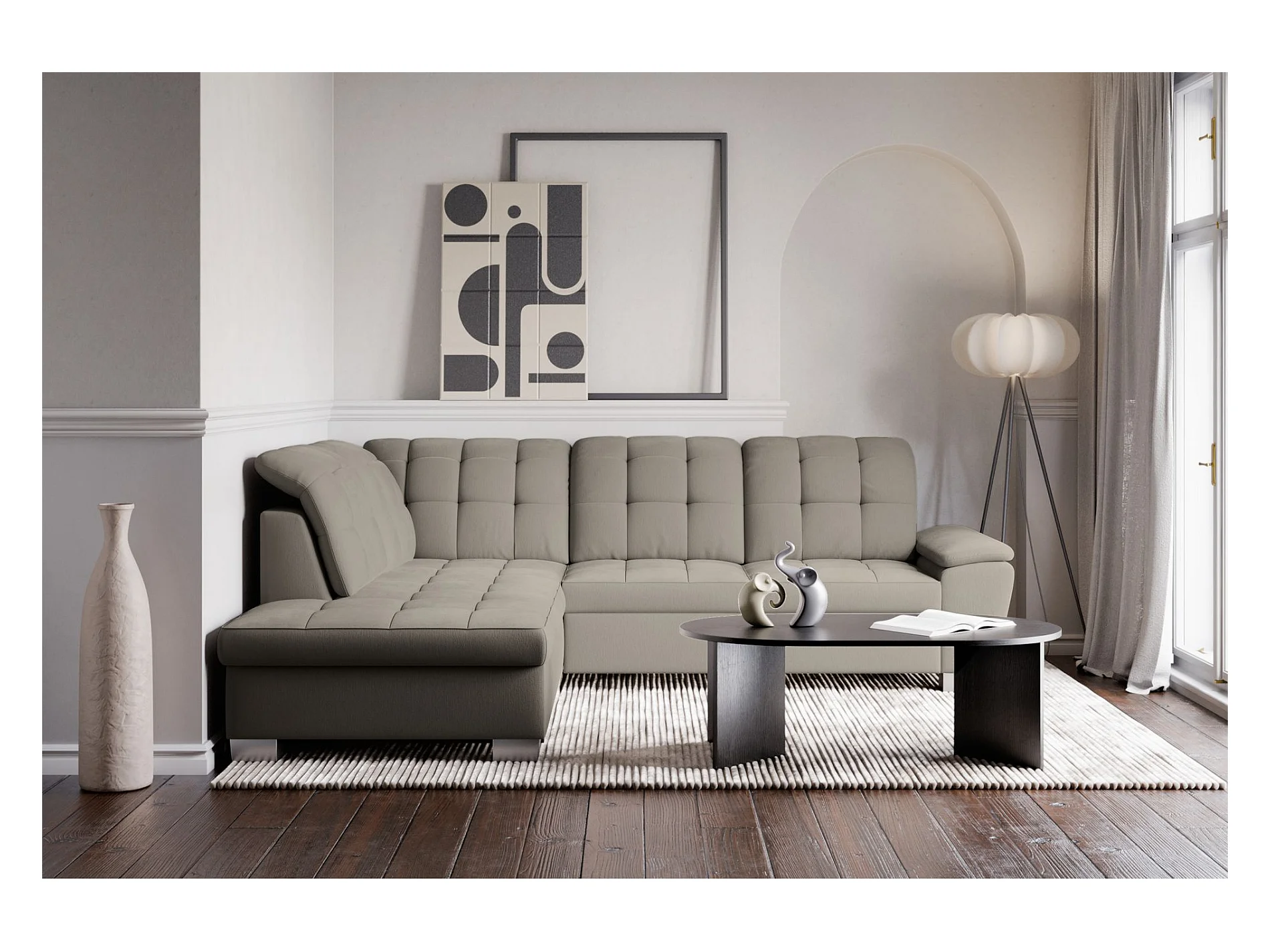Canapé d'angle convertible L – grège– côté gauche – JAMAAL