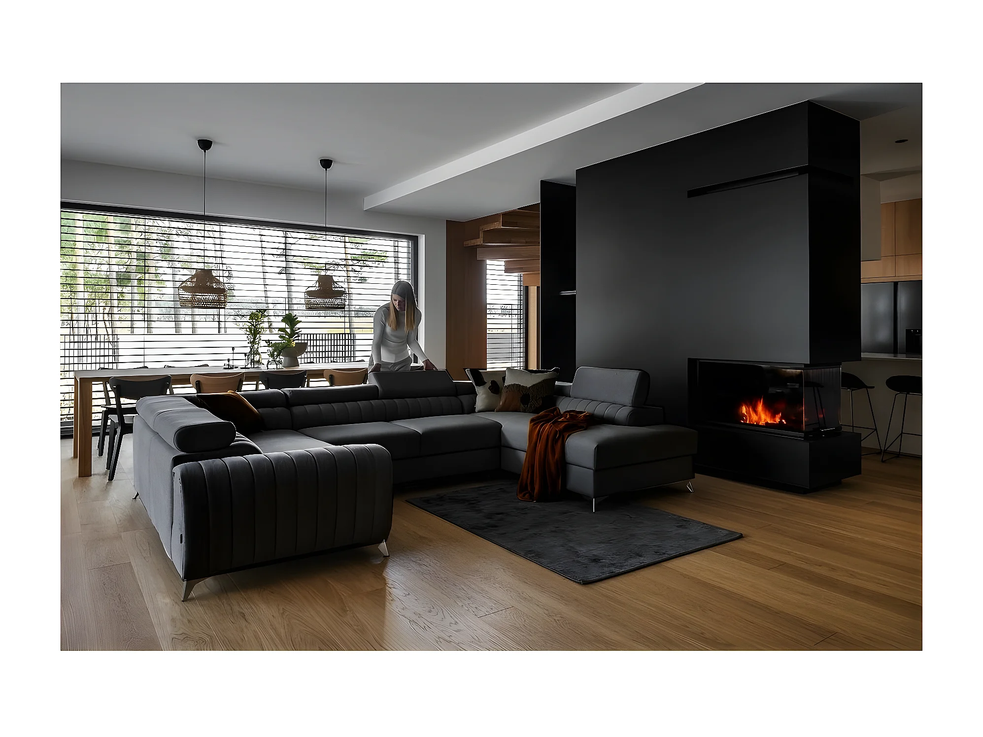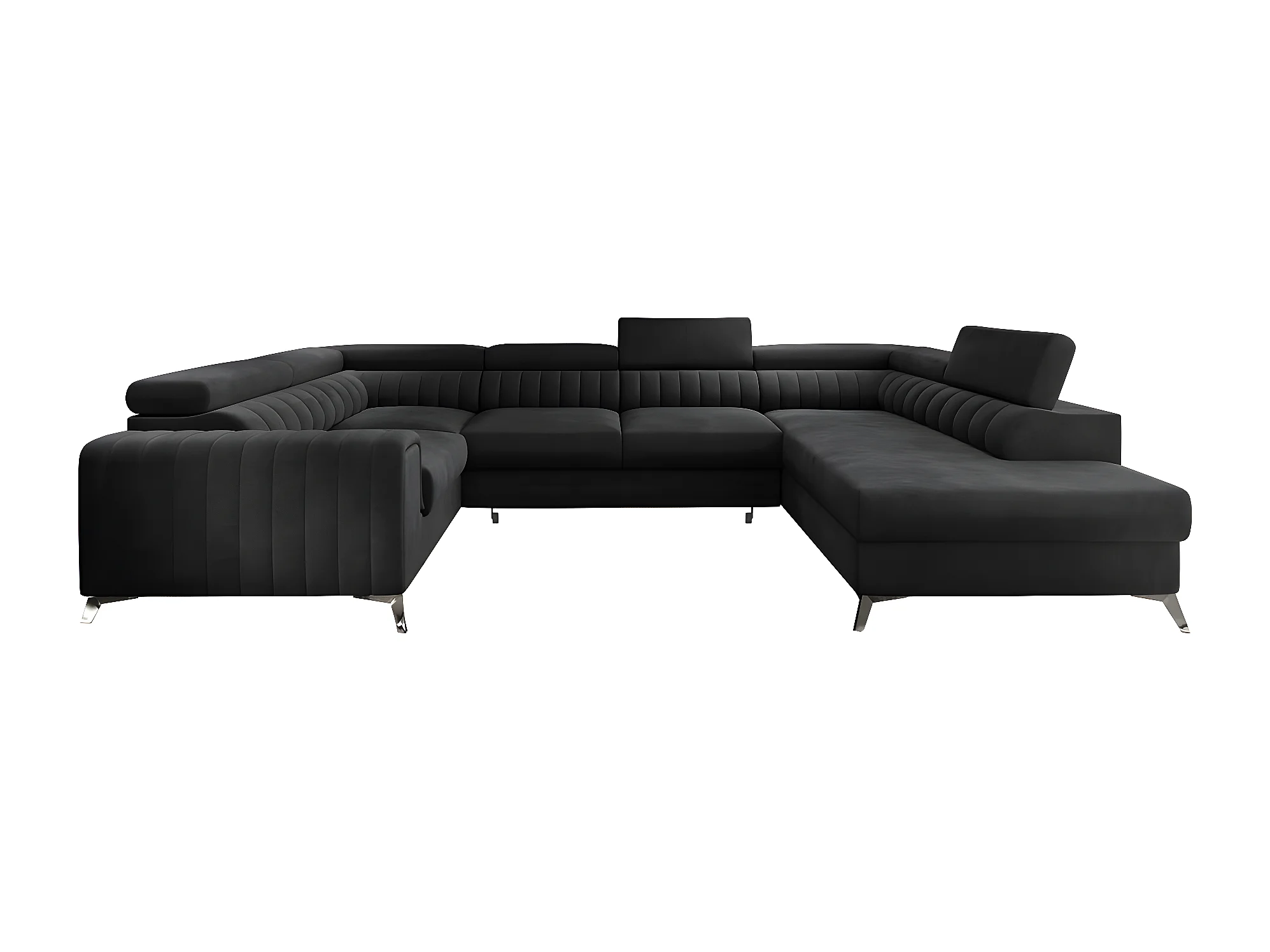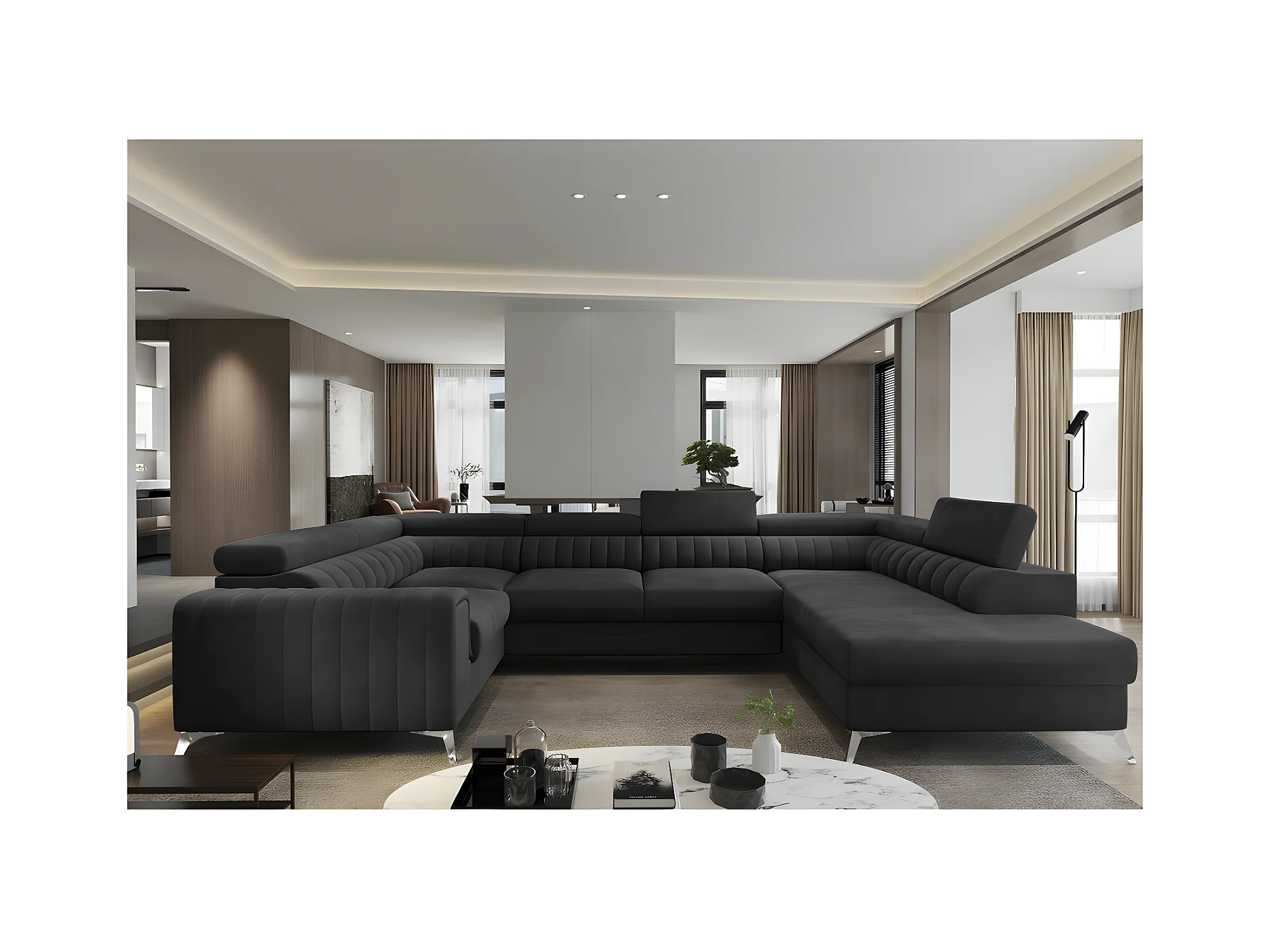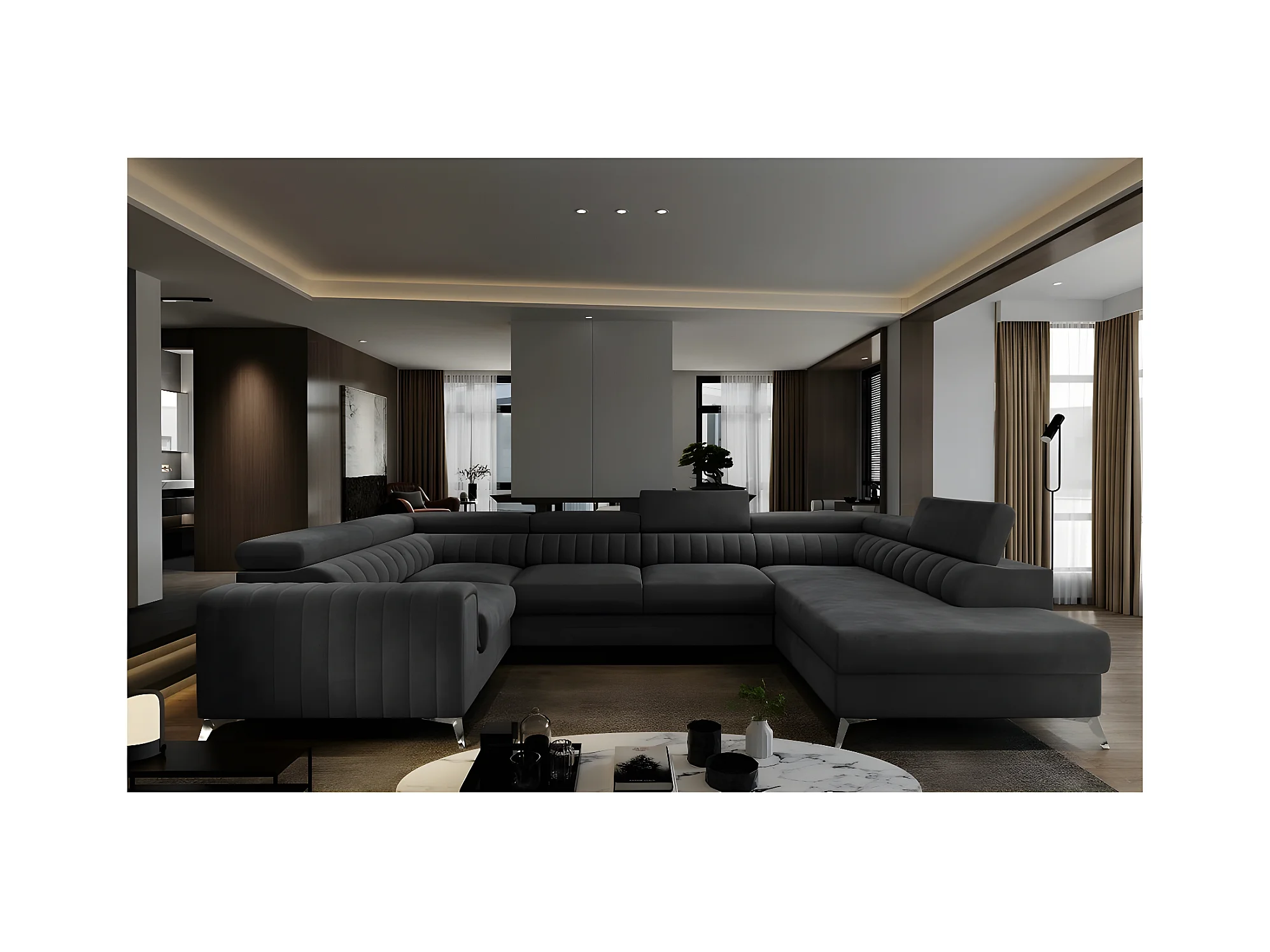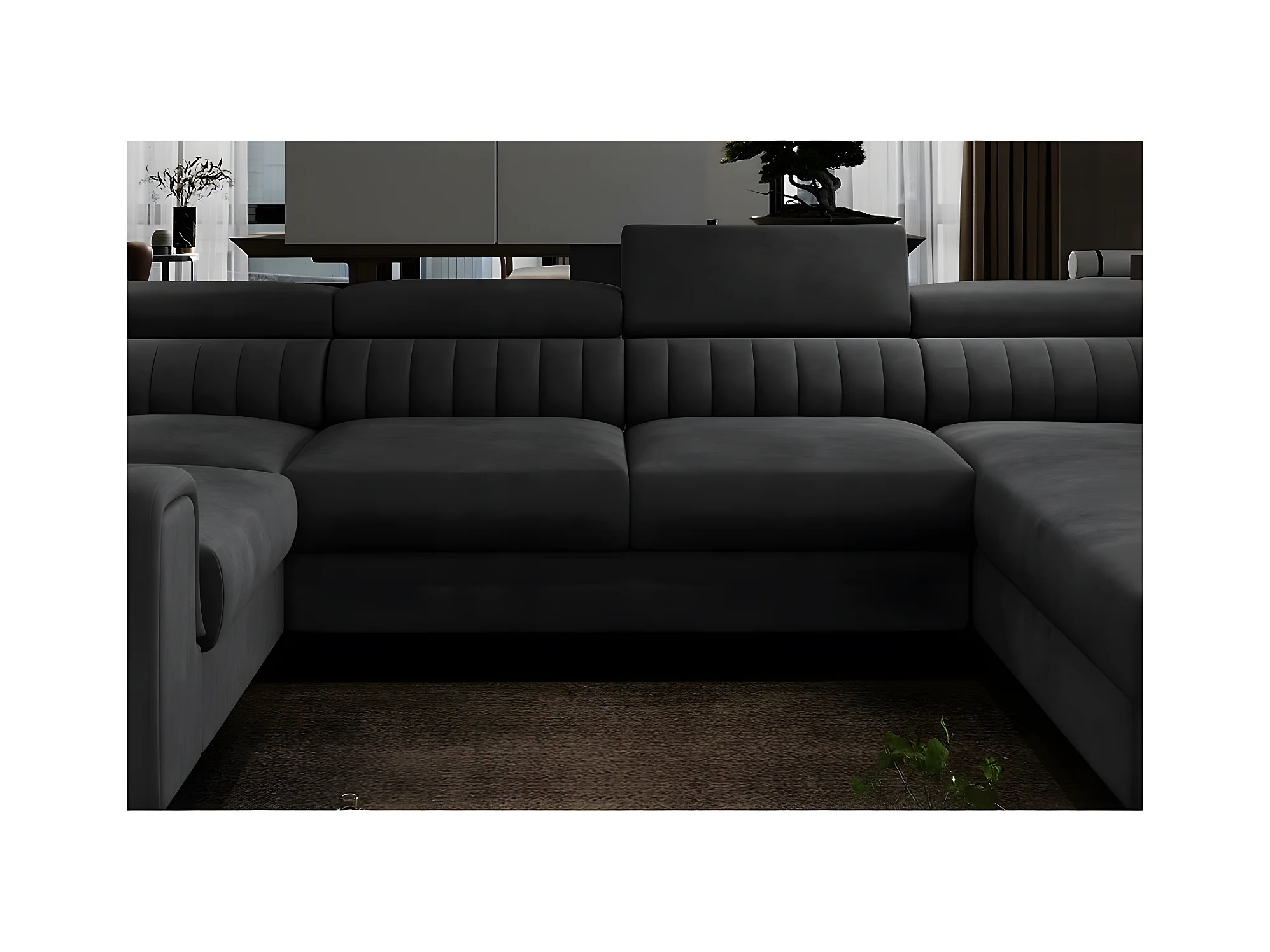 Canapé d'angle convertible, LOUCA VELOURS Luxe, 7/8 places, gris anthracite, accoudoir gauche (vu de face)