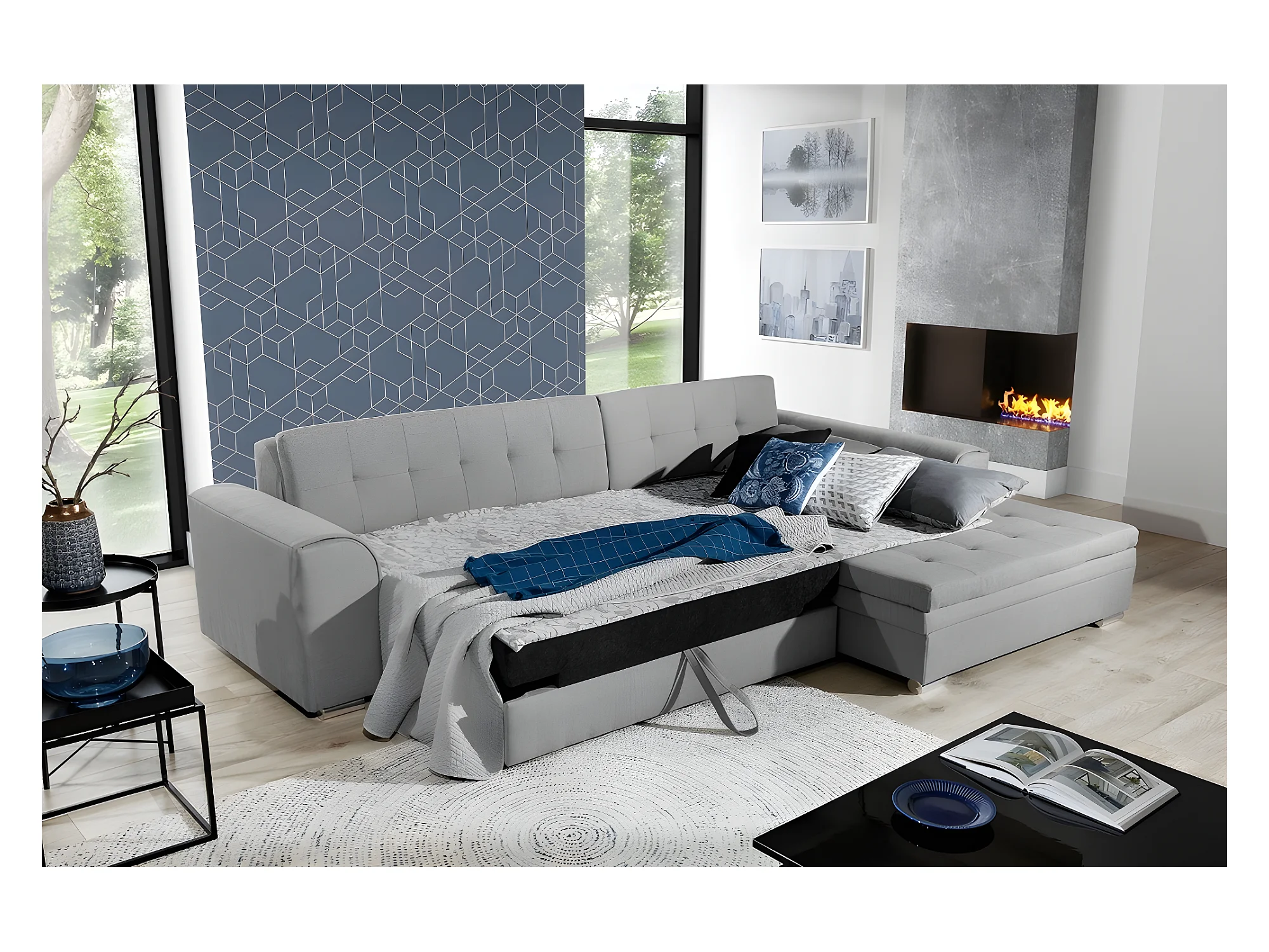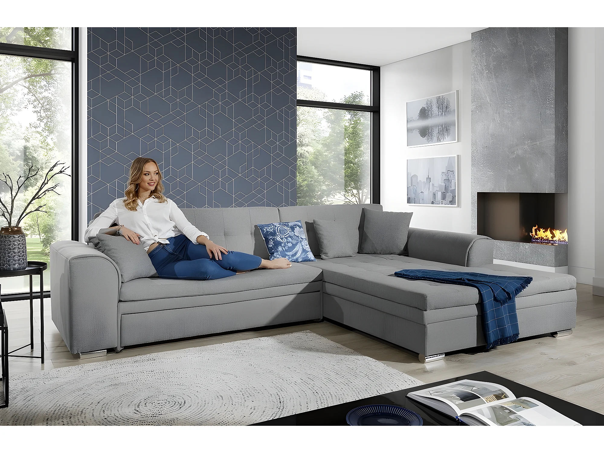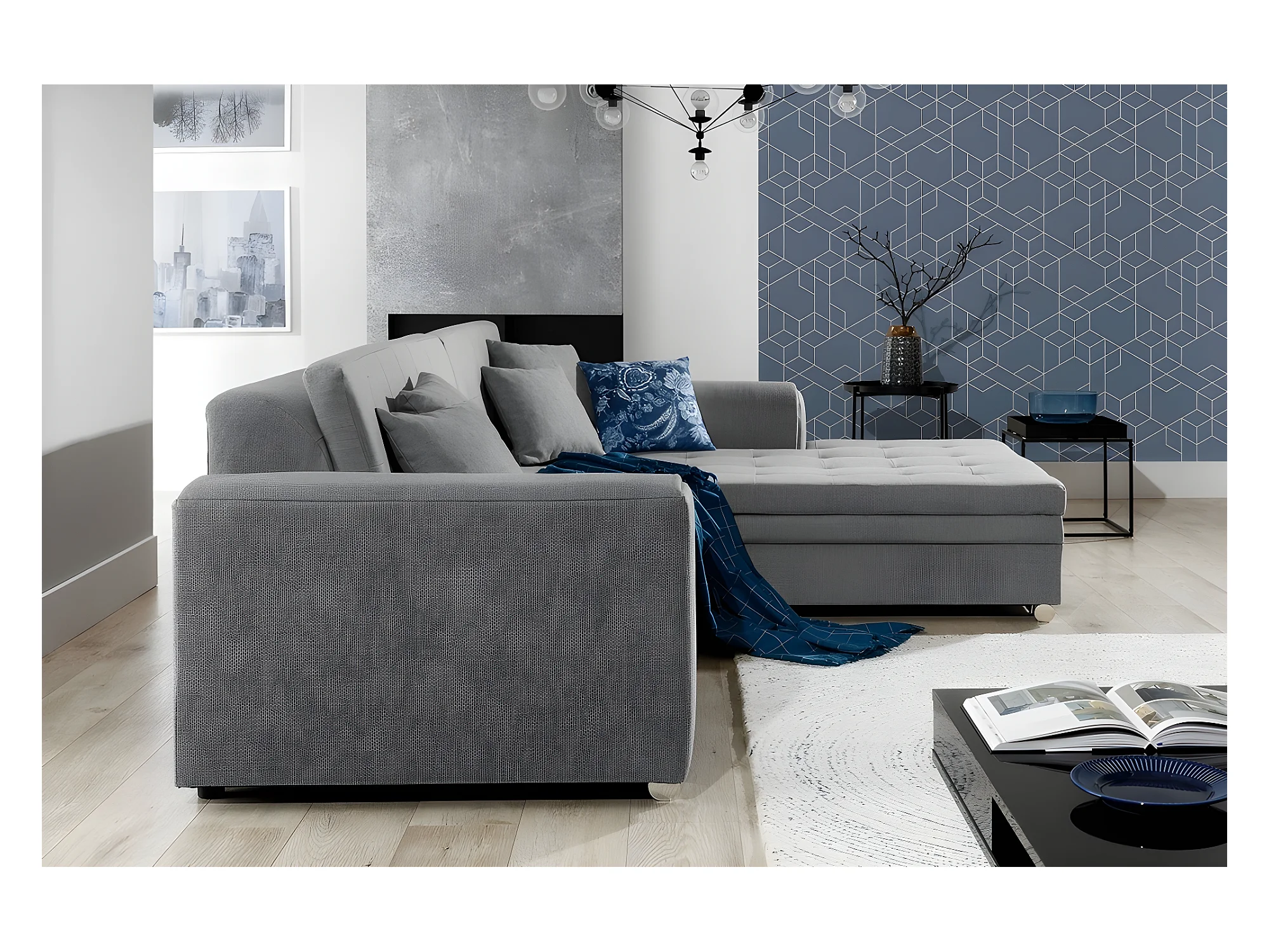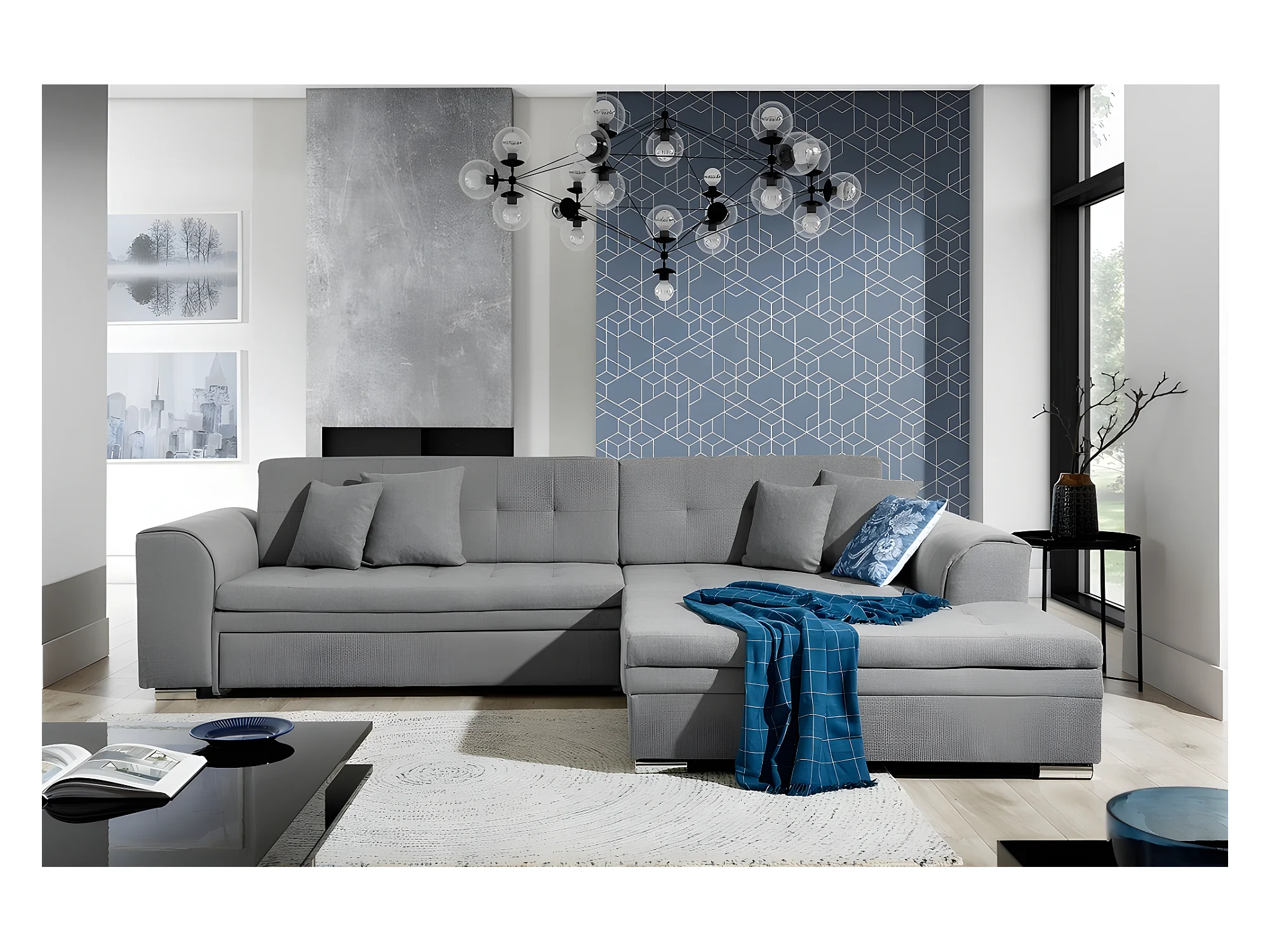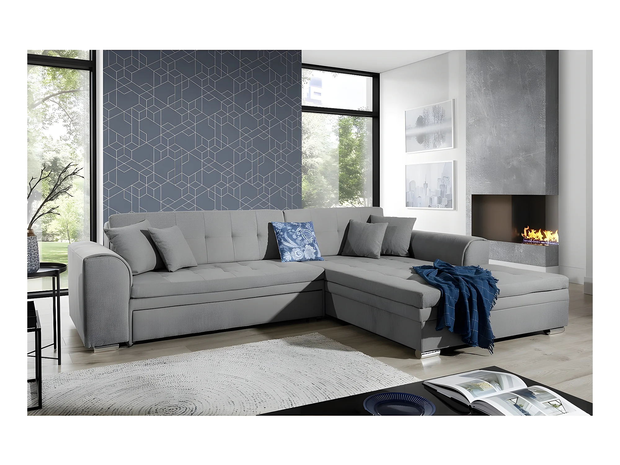 Canapé d'angle convertible - SOHO - en tissu de qualité, gris, 5/6 places, angle droit (vu de face)
