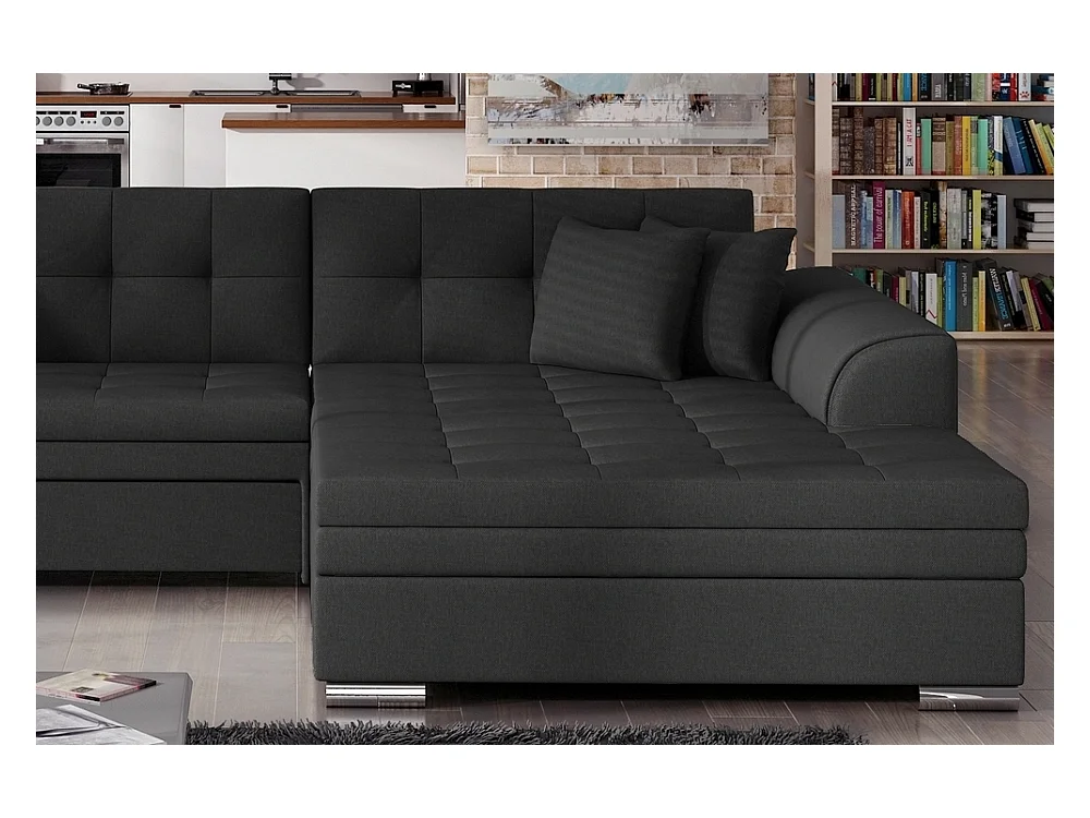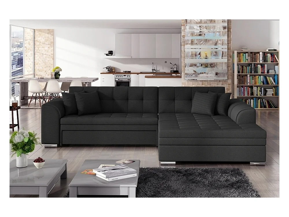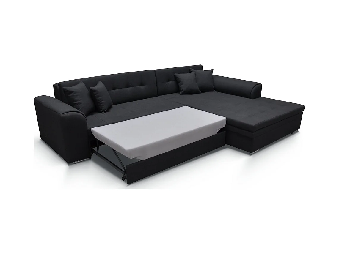 Canapé d'angle convertible, SOHO, en tissu de qualité, noir, 5/6 places, angle droit (vu de face)