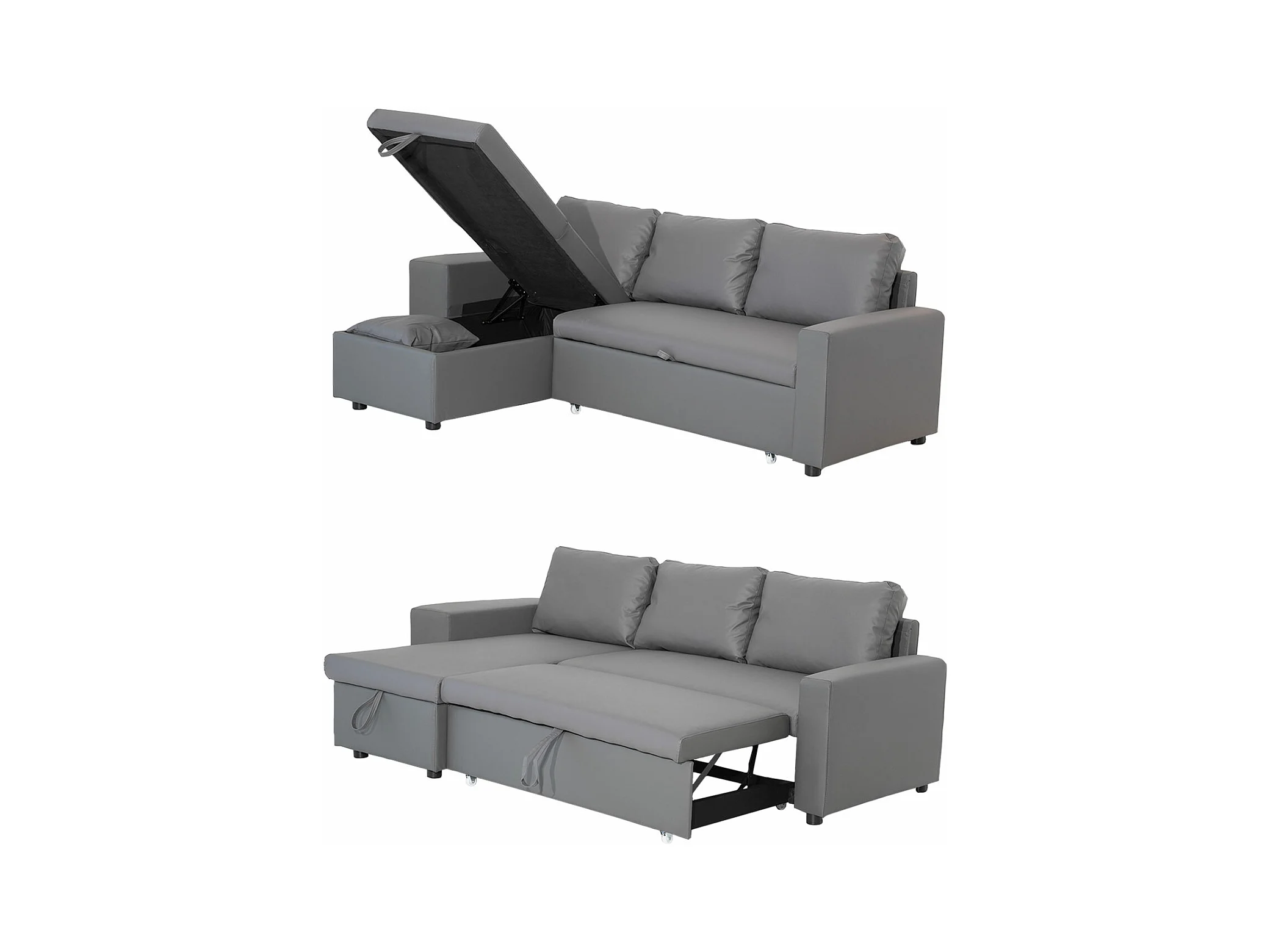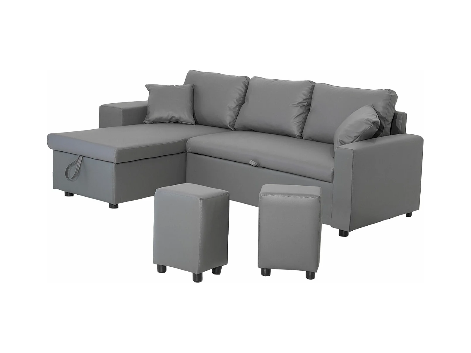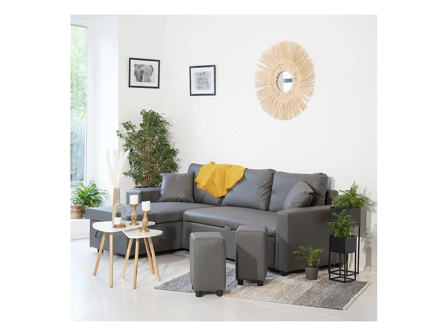 Canapé d'angle convertible TONY 3 places gris - HAPPY GARDEN
