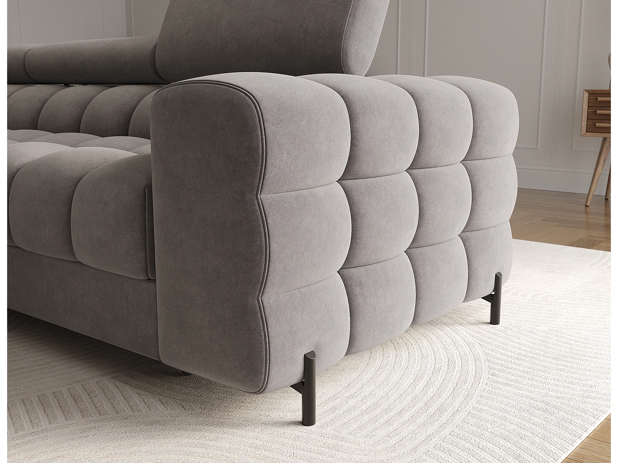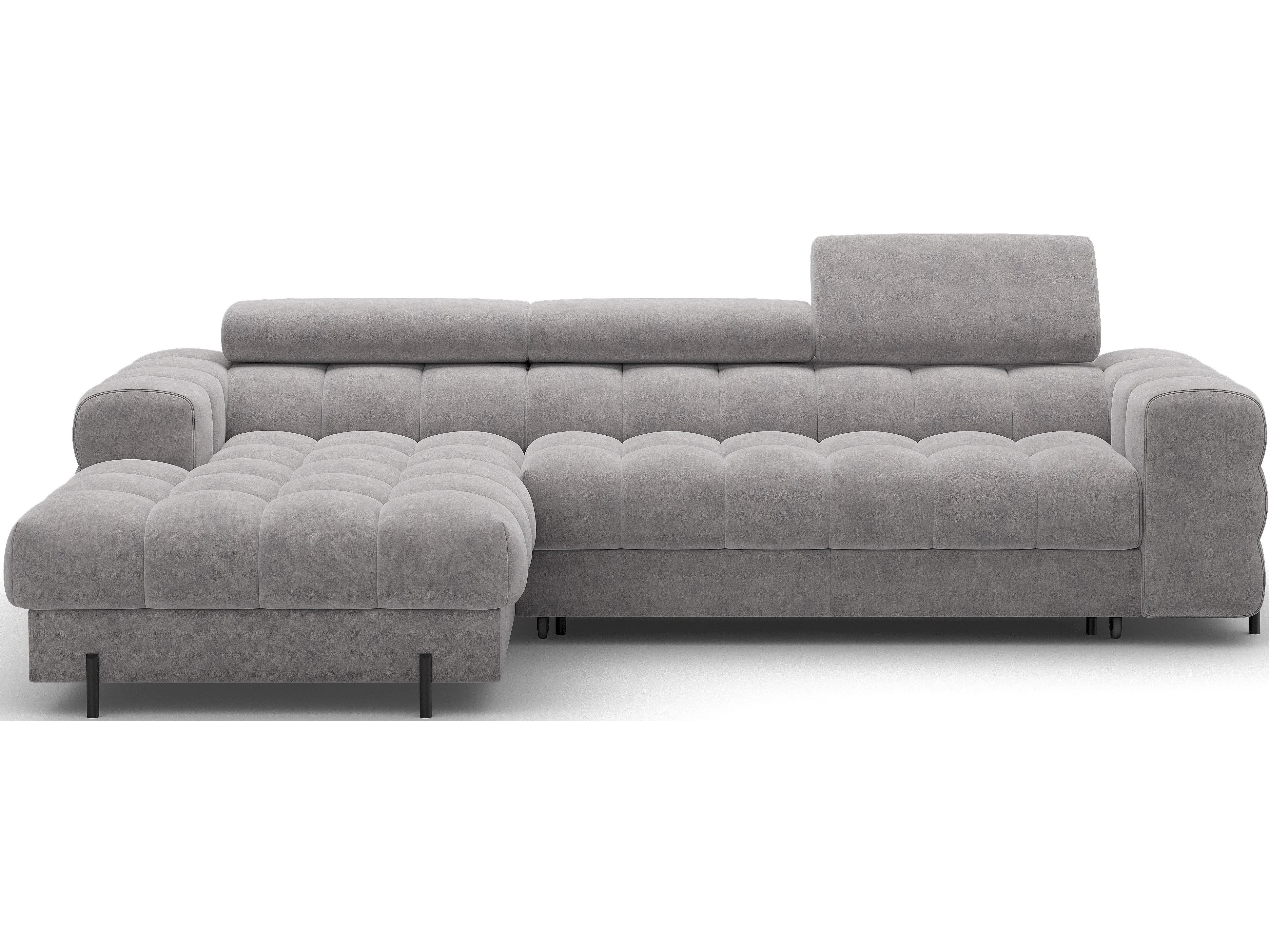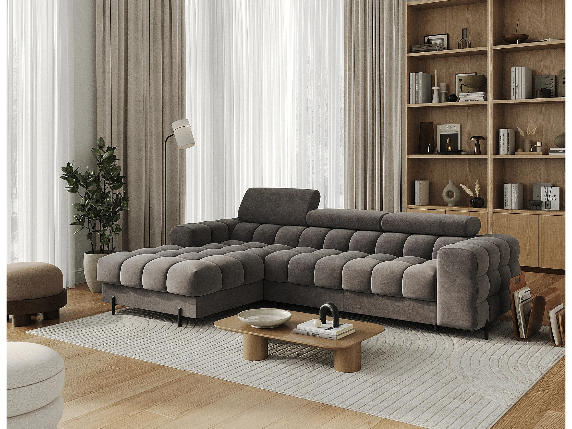 Canapé d’angle convertible velours appuis-tête réglables KATE – Coffre et pieds métal noir-Marron clair-angle gauche