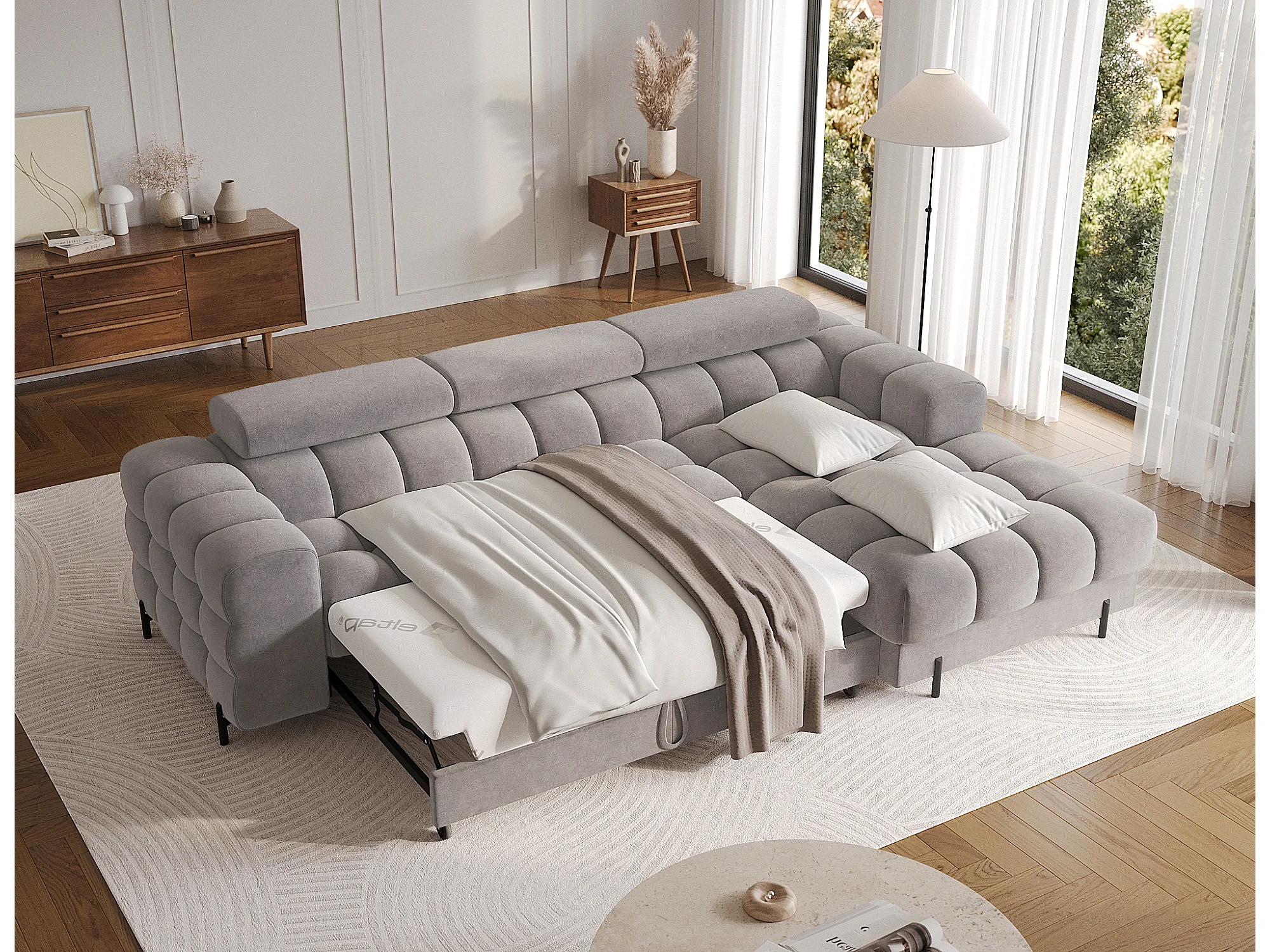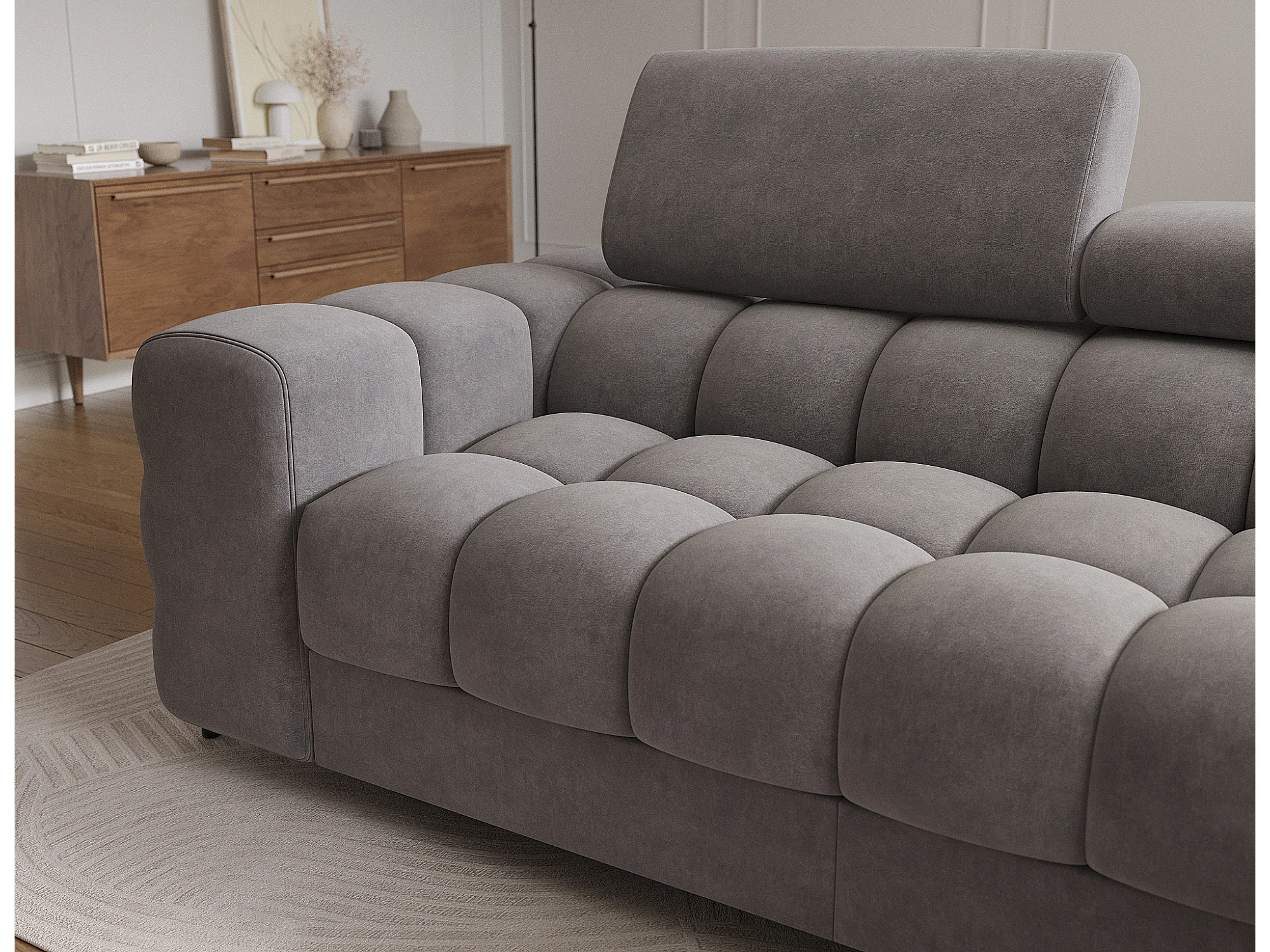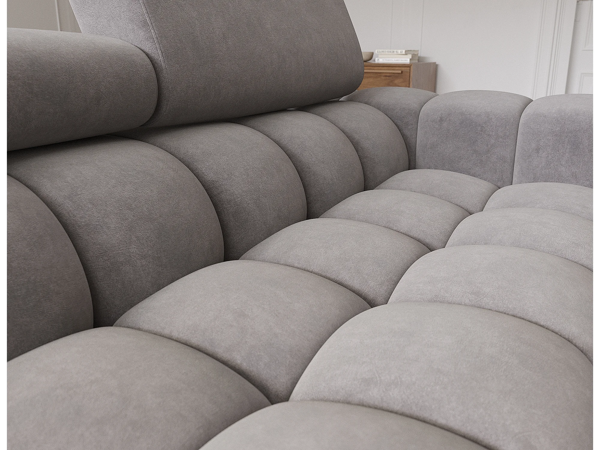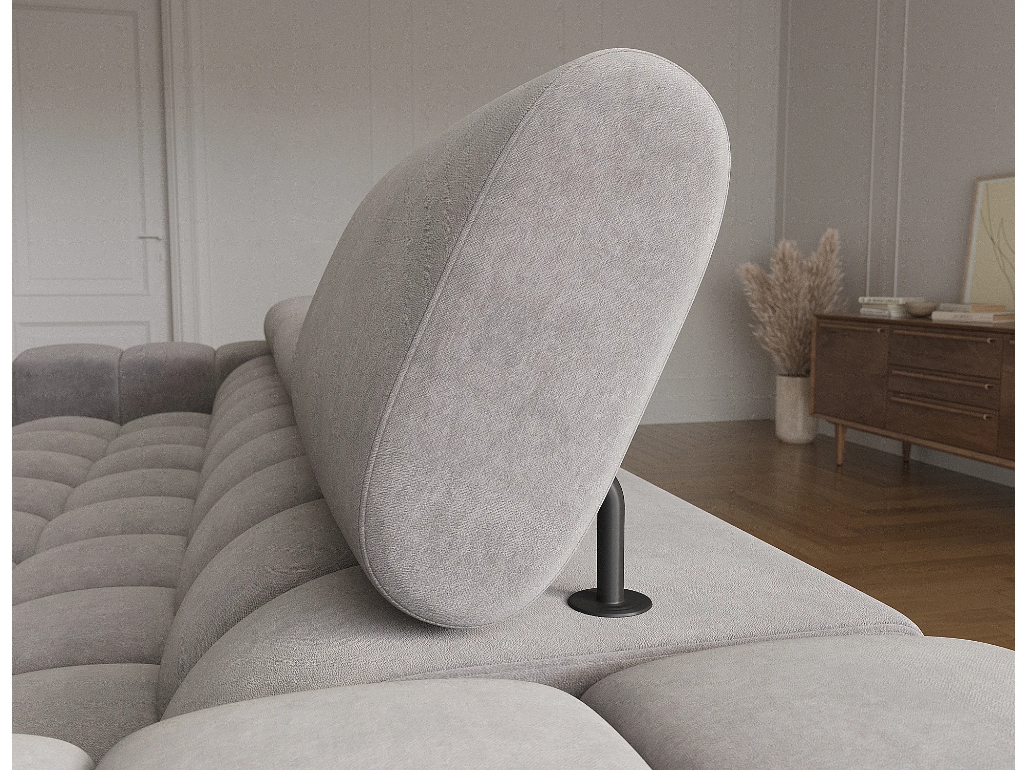 Canapé d’angle convertible velours appuis-tête réglables KATE – Coffre et pieds métal noir-Marron clair-angle gauche