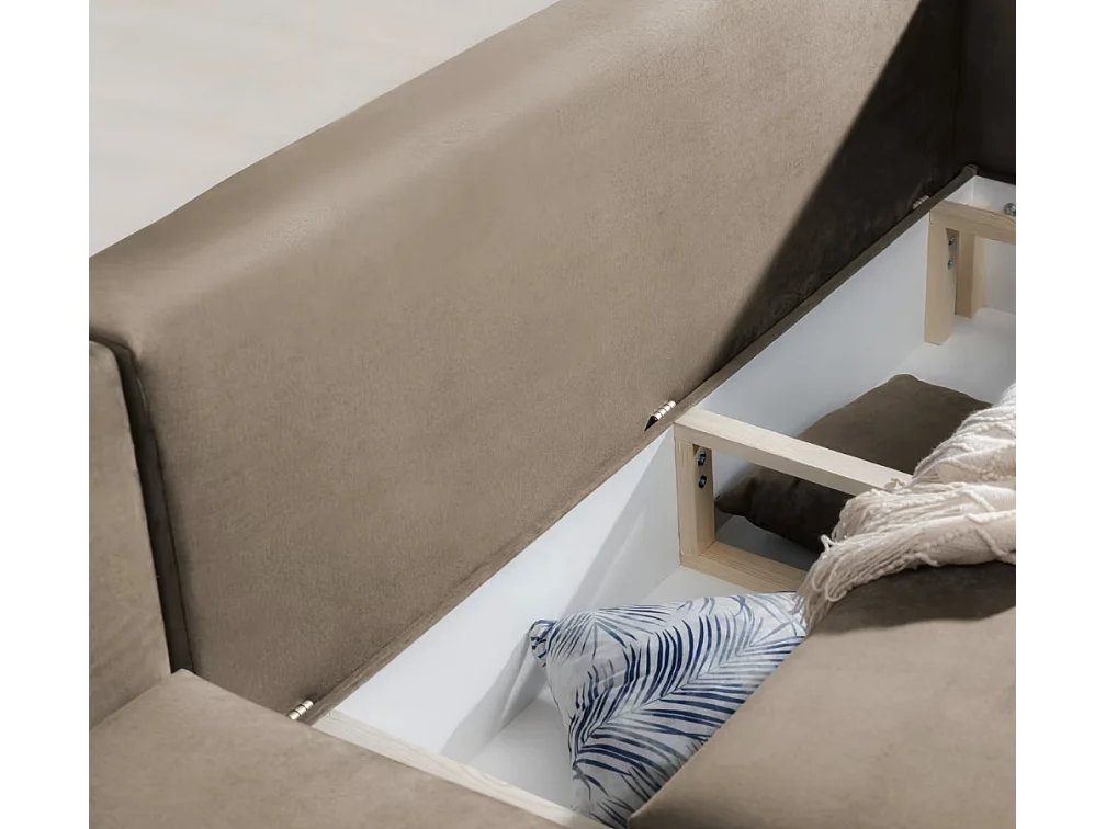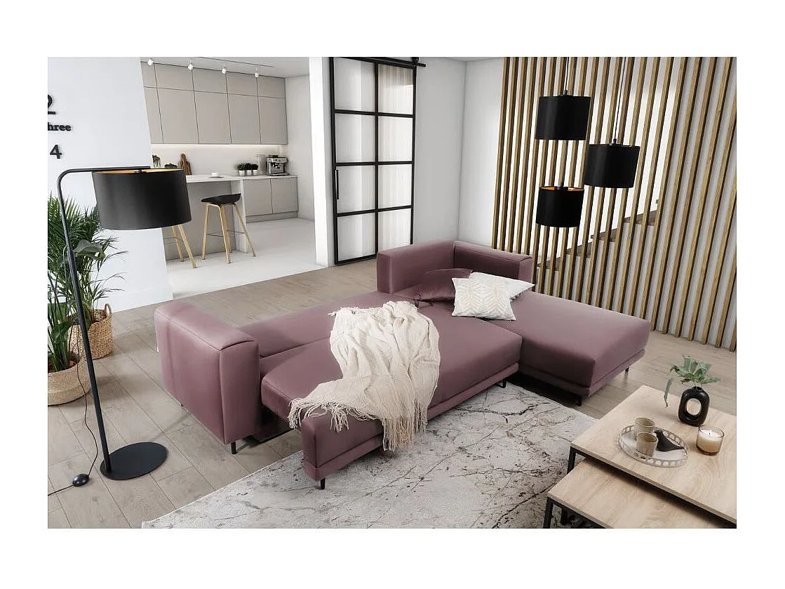 Canapé d'angle convertible velours DAVINA - Coffre et pieds métal noir-Vieux rose-angle droit
