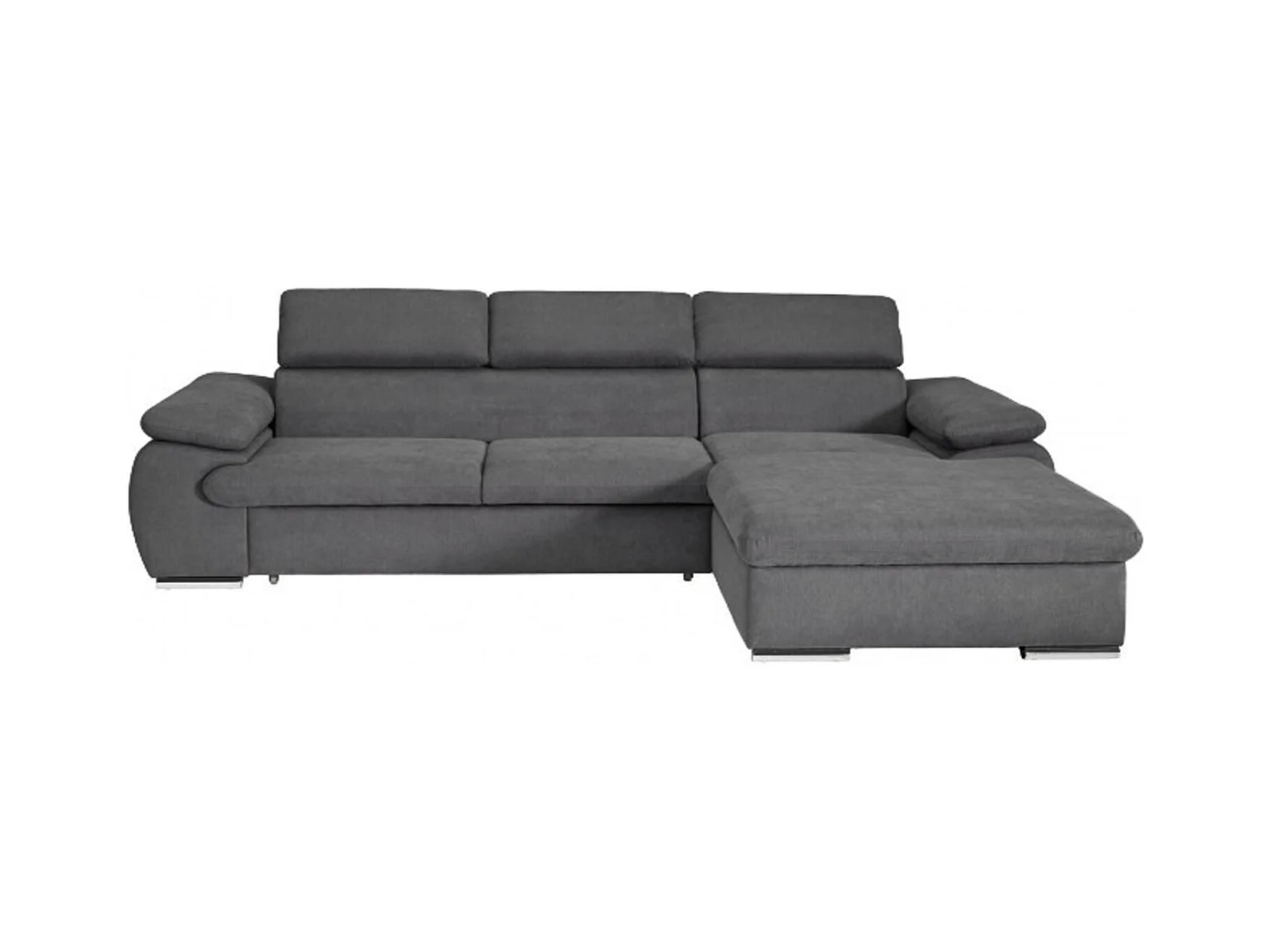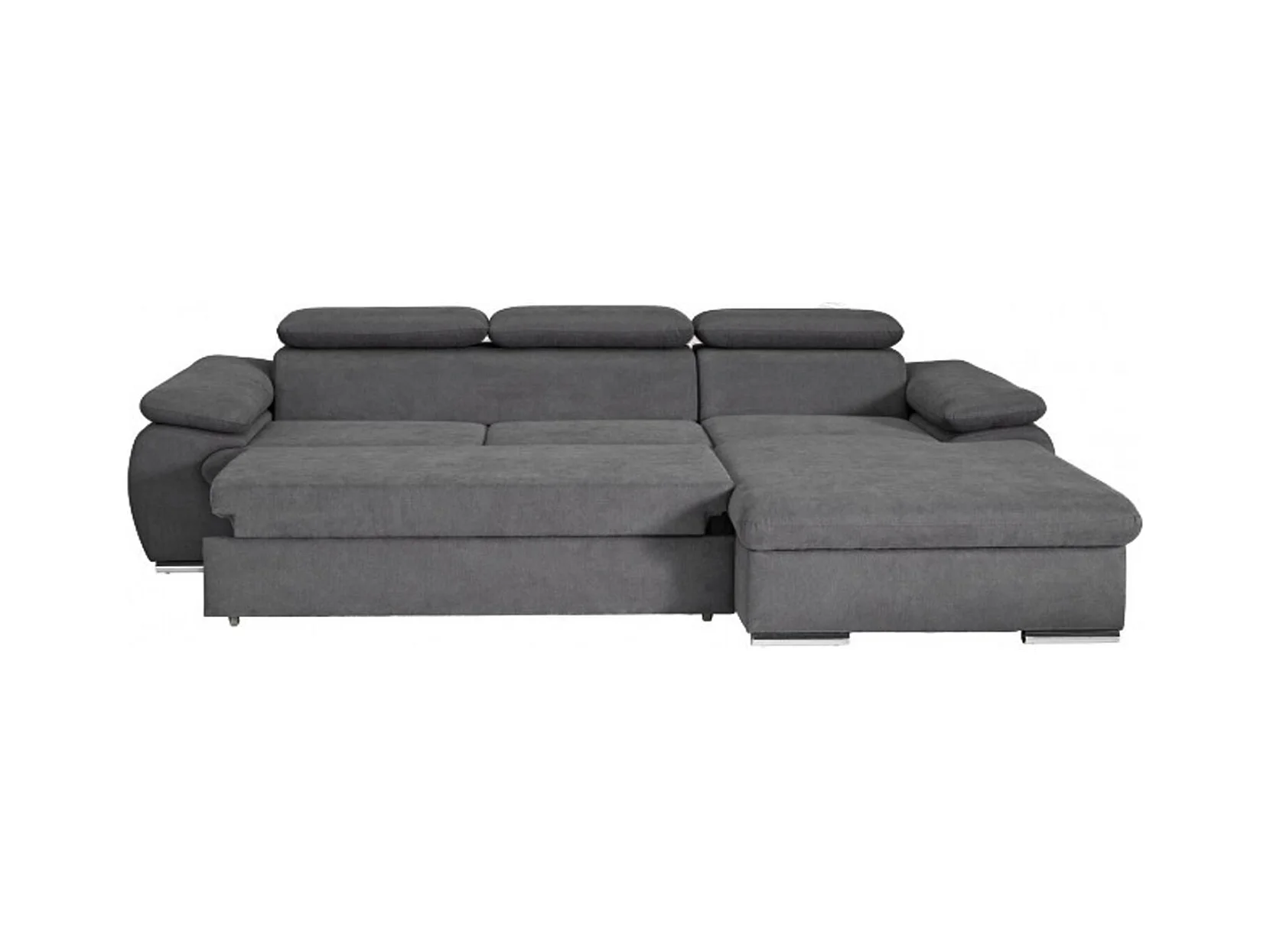 Canapé d'angle coté droit convertible velours côtelé beige avec têtières - KOST