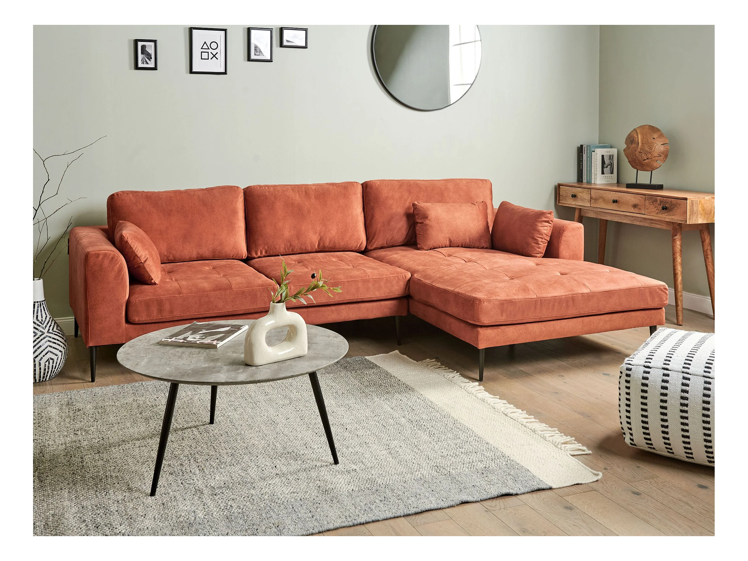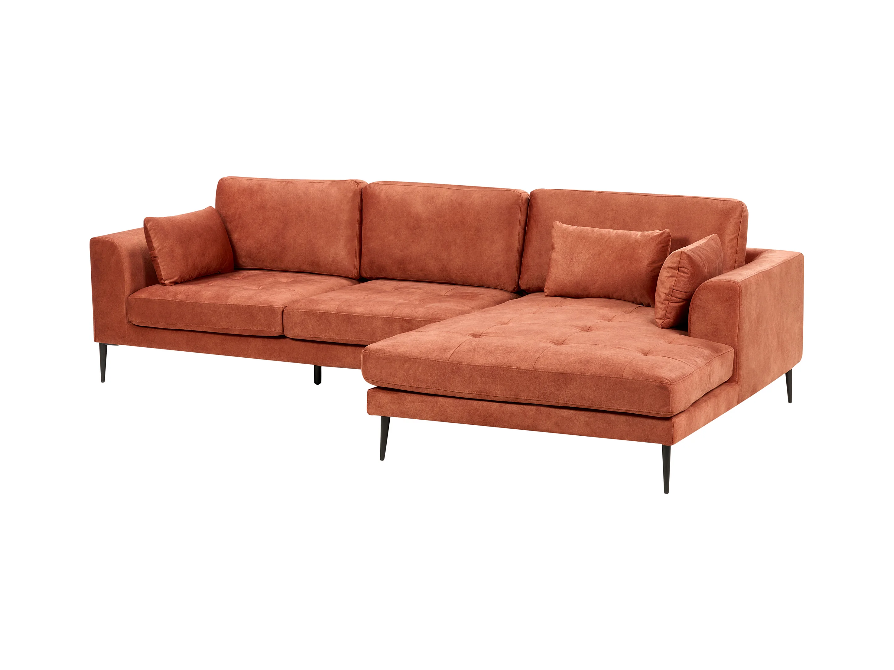 Canapé d'Angle Côté droite 3 Places Rembourré en Velours Orange Flam