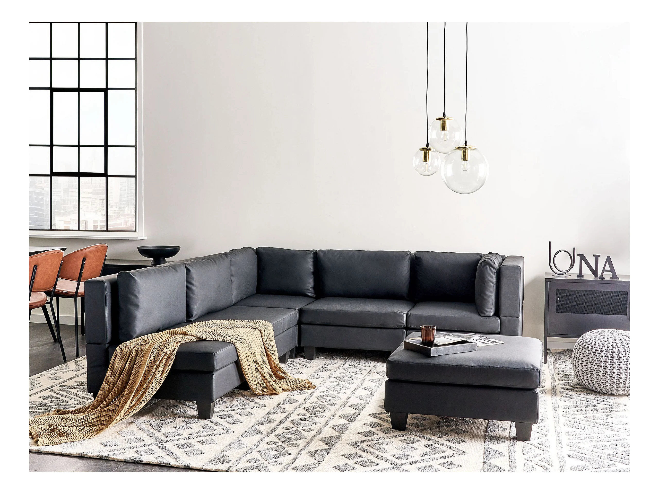 Canapé d'angle modulable 5 places UNSTAD Cuir PU Noir Côté droit