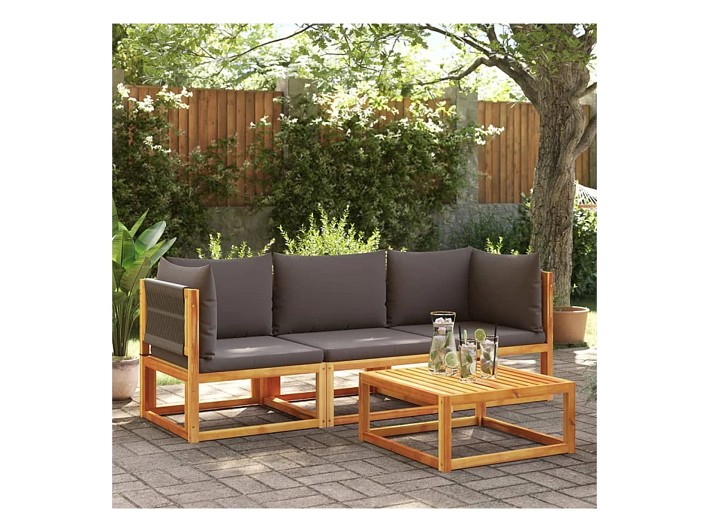 Canapé d'angle de jardin avec coussins bois massif d'acacia FR637178