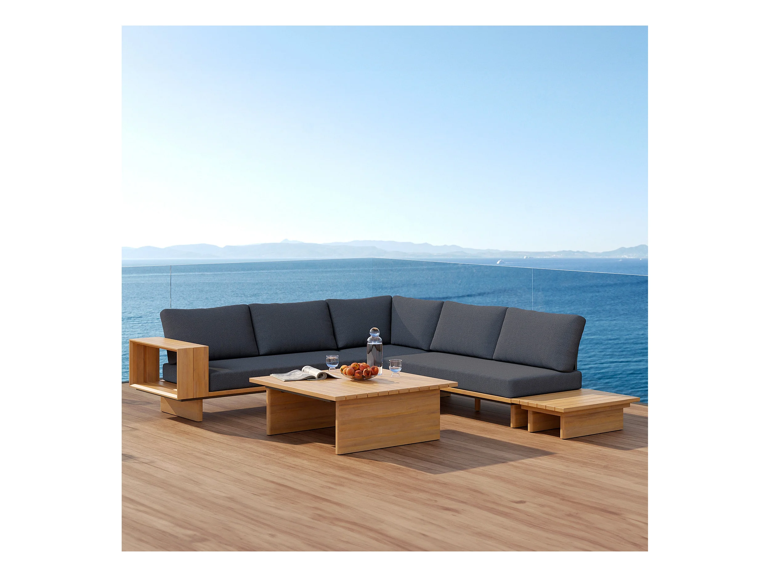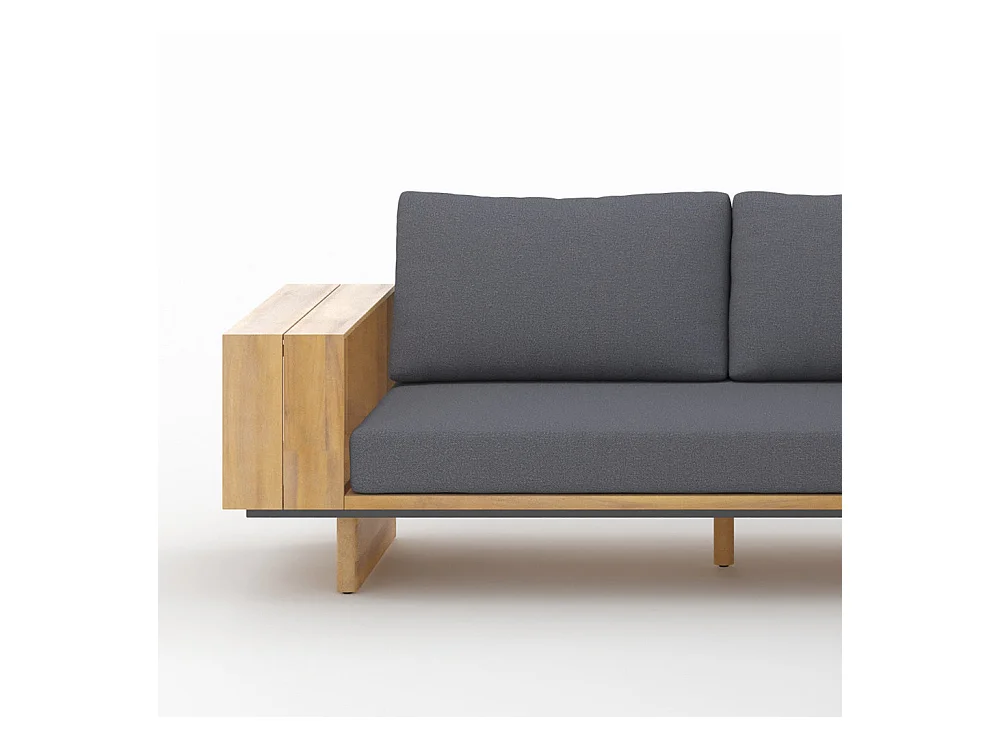 Canapé d'angle de jardin en bois et tissu gris 4 places - Seya