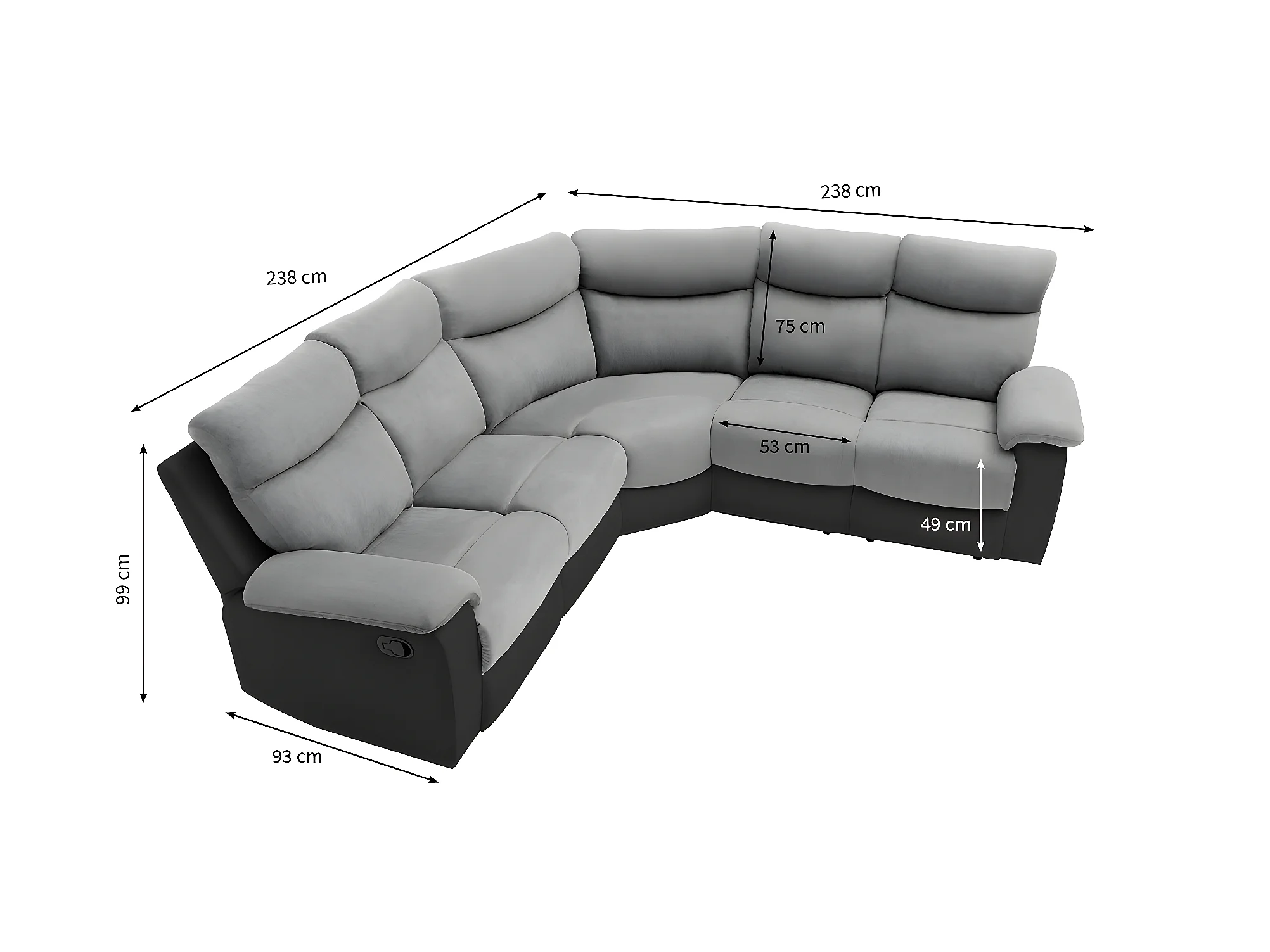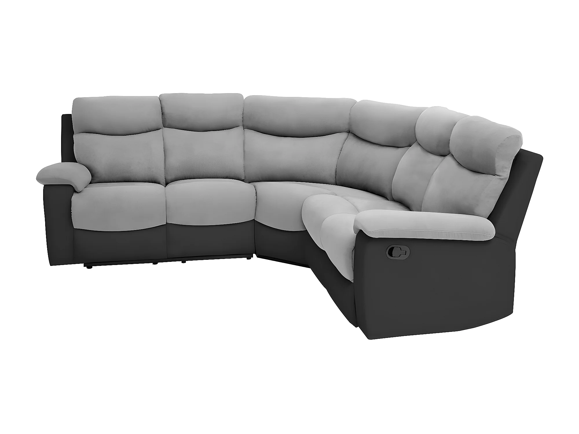 Canapé d'angle de Relaxation Oscar 5 places bi-matière - Gris/Noir - L238 x P238 x H99cm - Loungitude