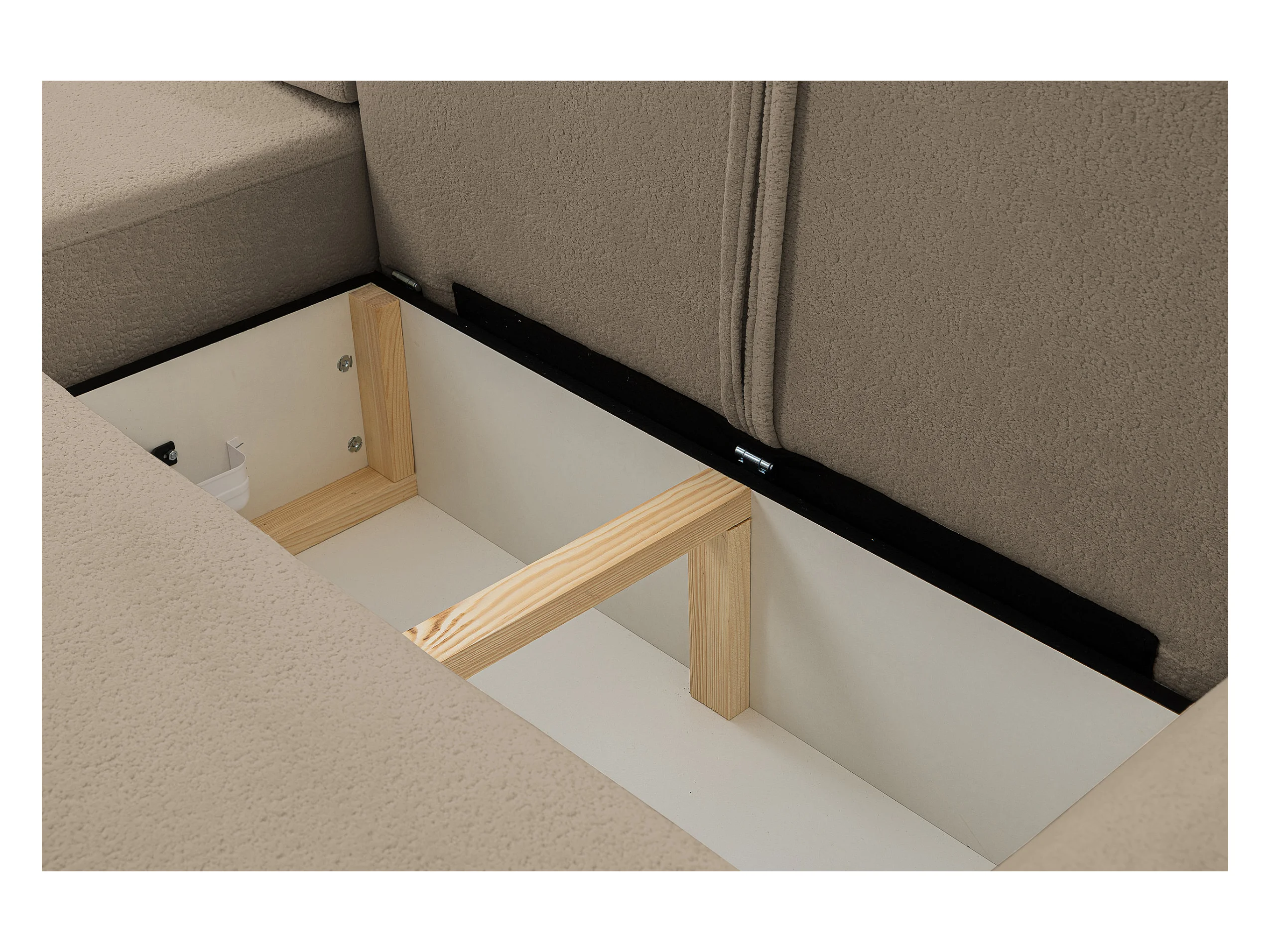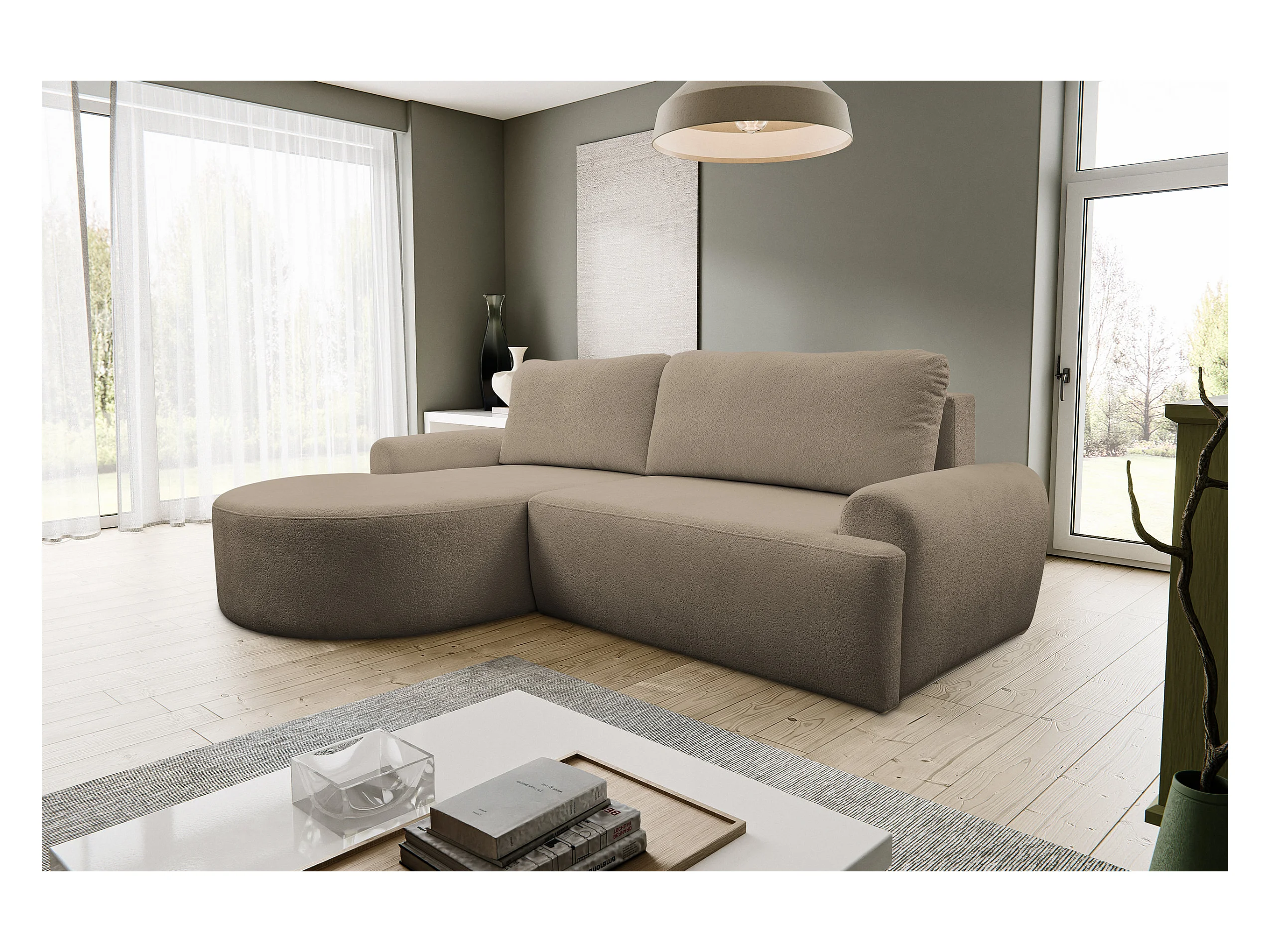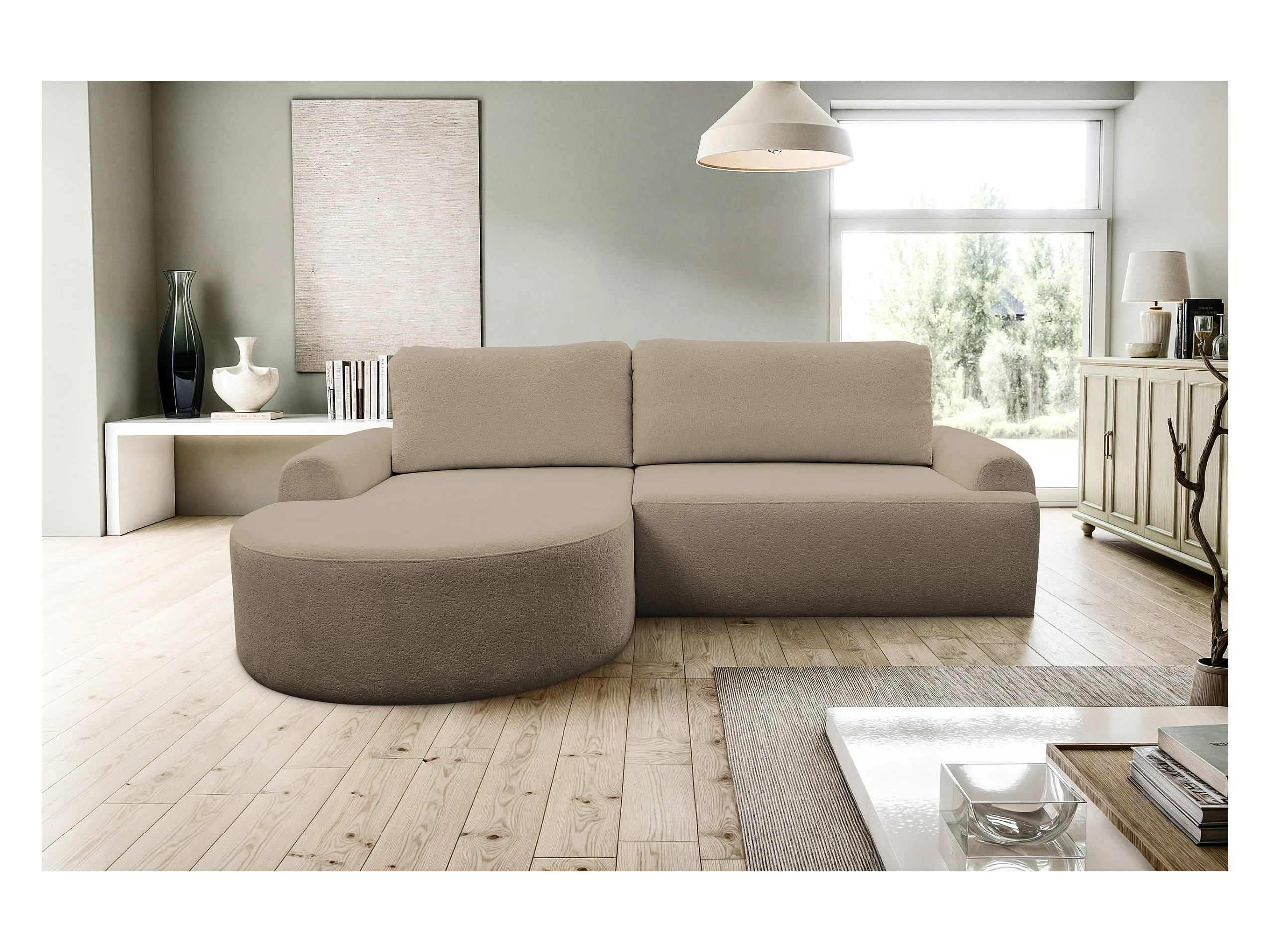 Canapé d'angle Dream avec fonction couchage et coffre de rangement, couleur : marron, tissu bouclé, ottomane à gauche