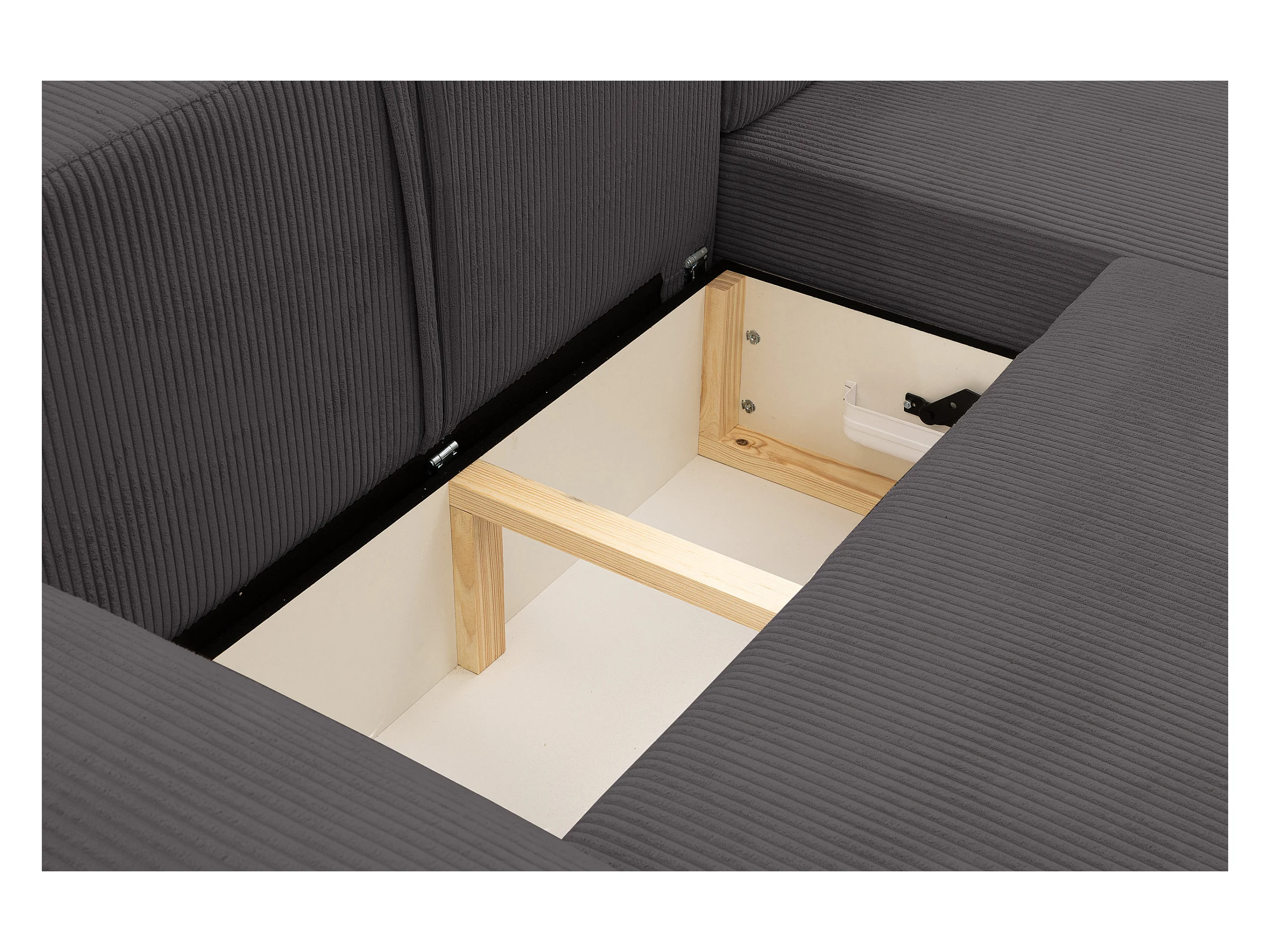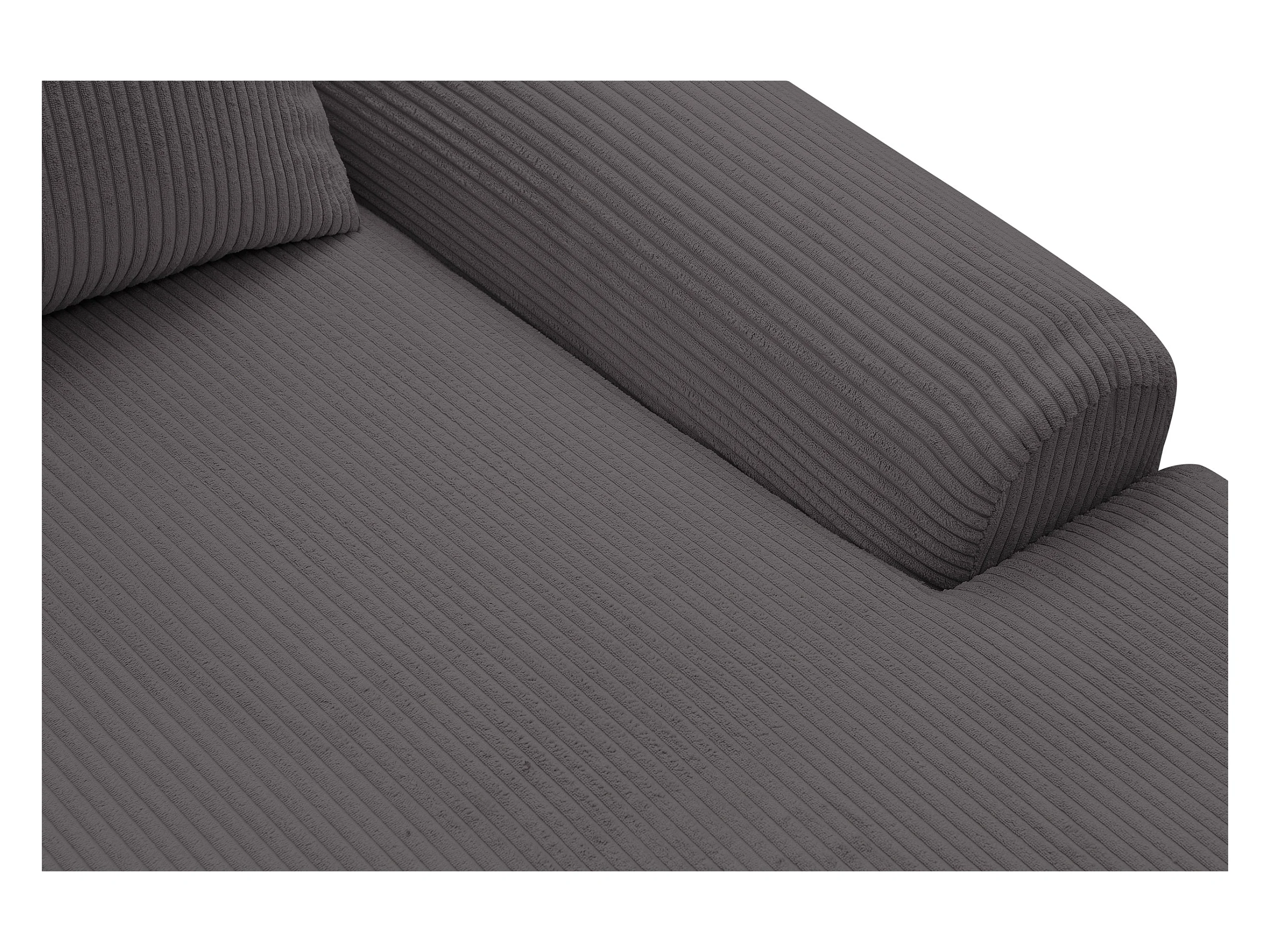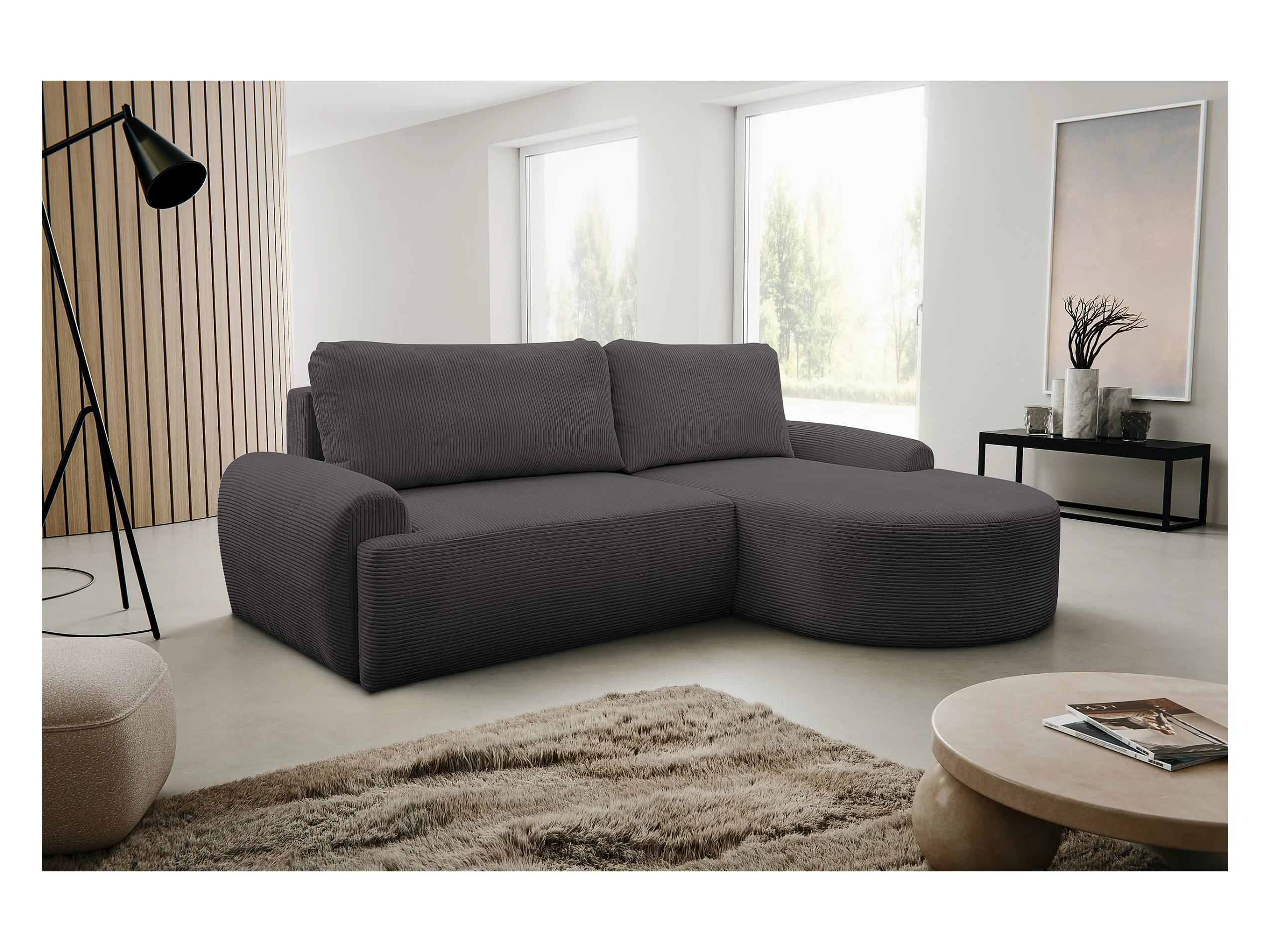 Canapé d'angle Dream Cord avec fonction couchage et coffre de rangement, couleur : gris, tissu velours côtelé, pouf à droite