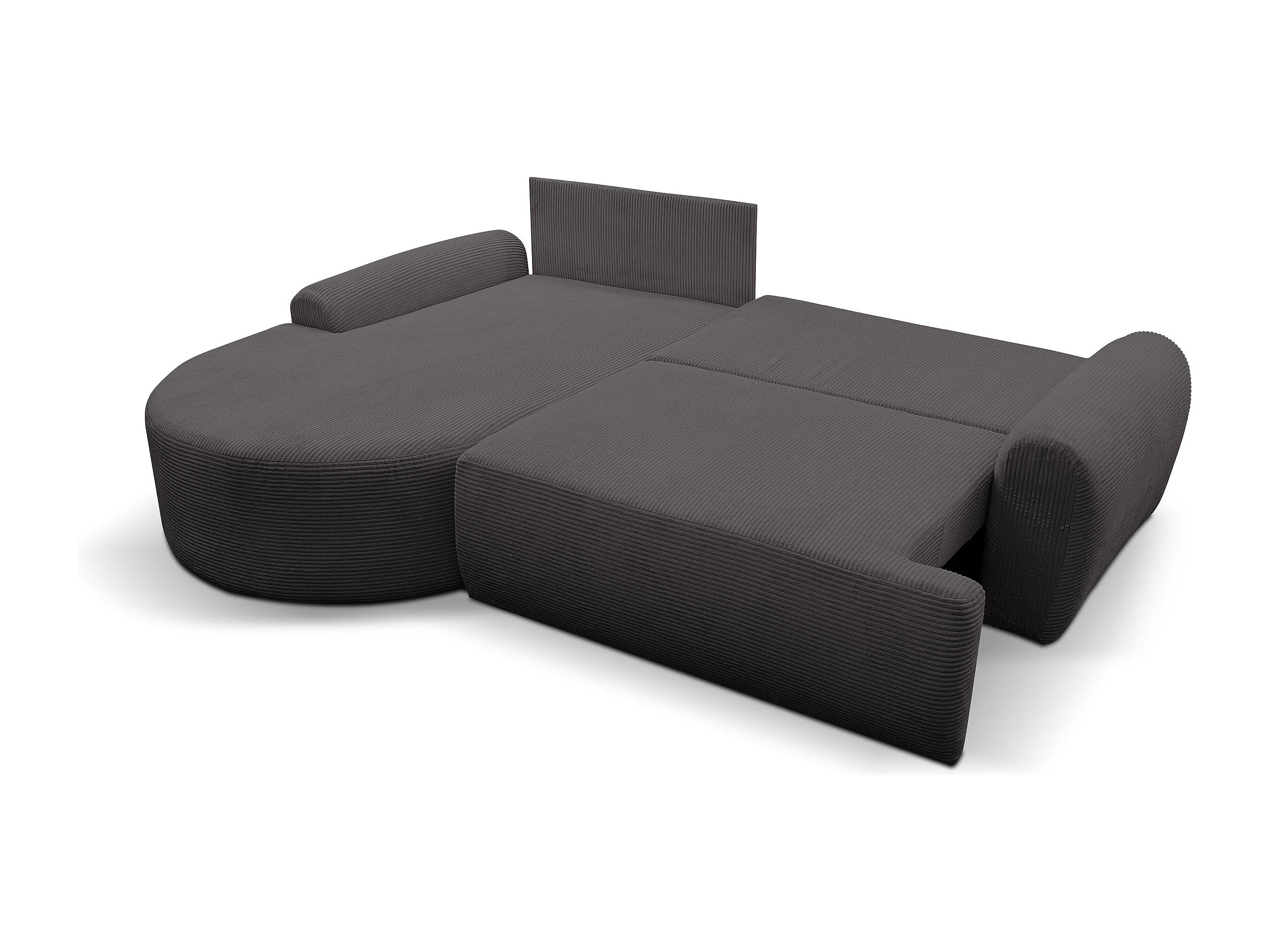 Canapé d'angle Dream Cord avec fonction couchage et coffre de rangement, couleur : gris, tissu velours côtelé, pouf à gauche