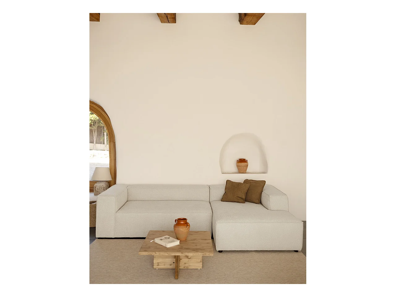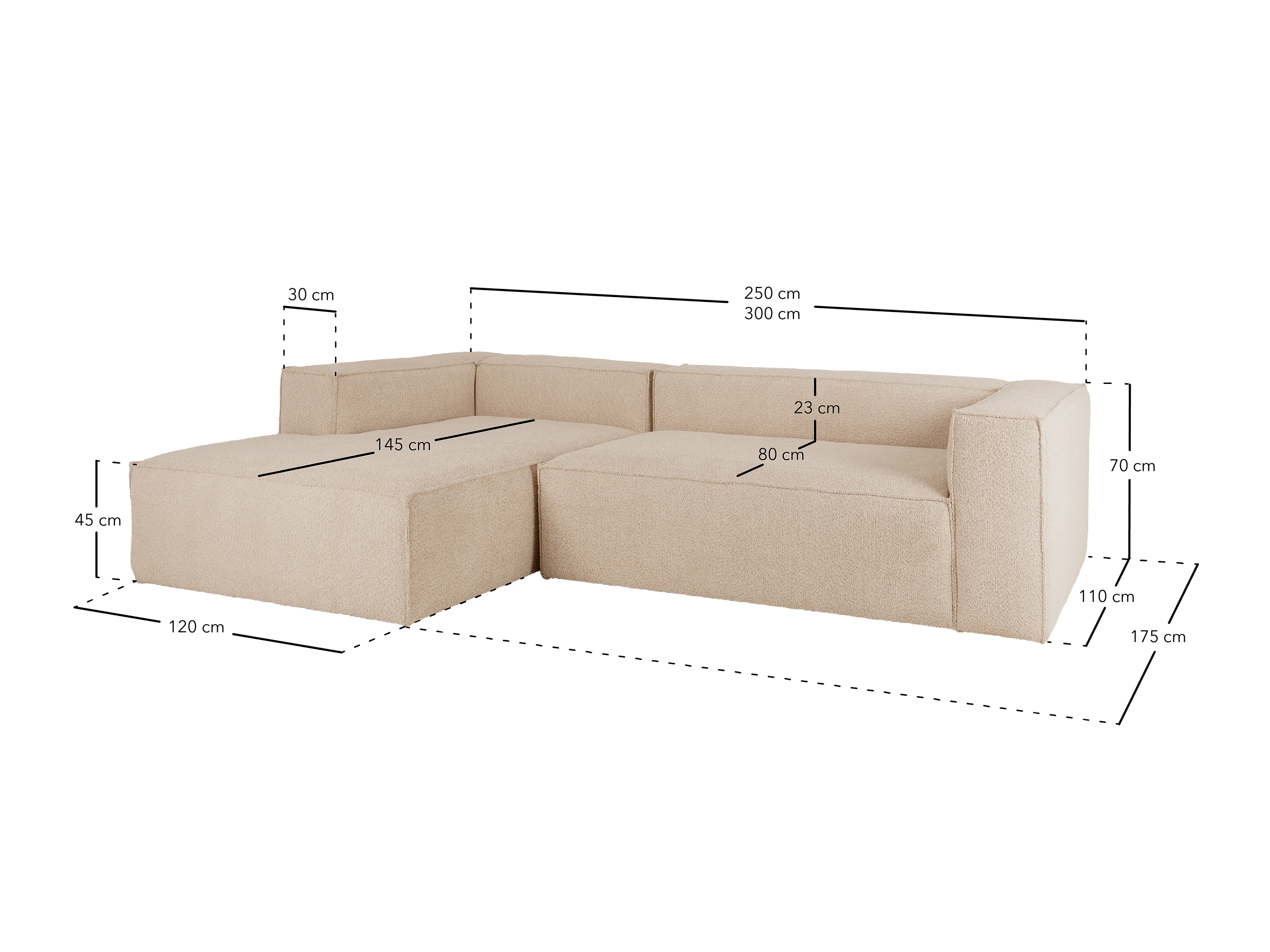 Canapé d'angle droit 3/4 places en bouclé couleur gris clair 250x175cm