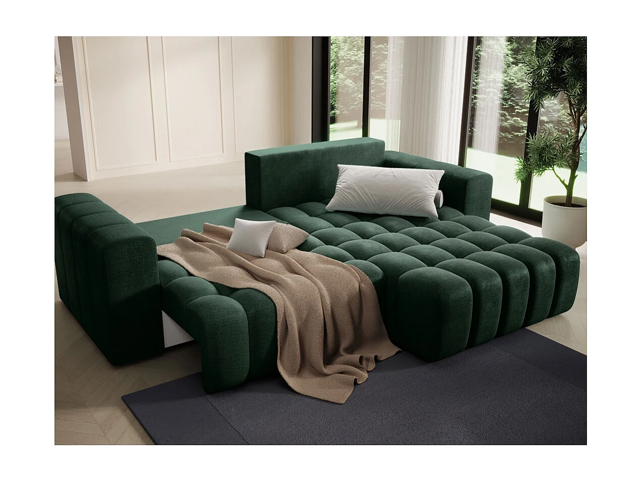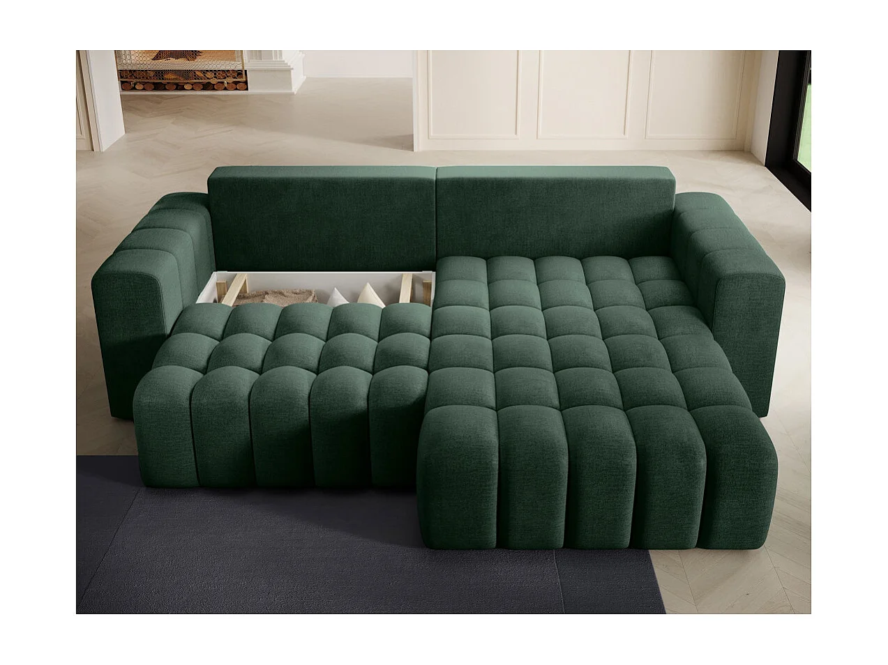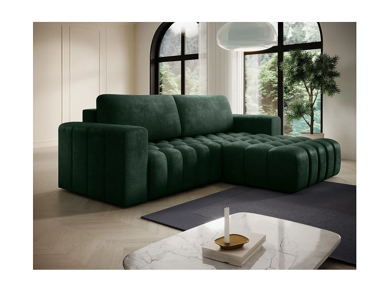 Canapé d'angle droit 3 places ASSIA convertible en tissu - Vert foncé