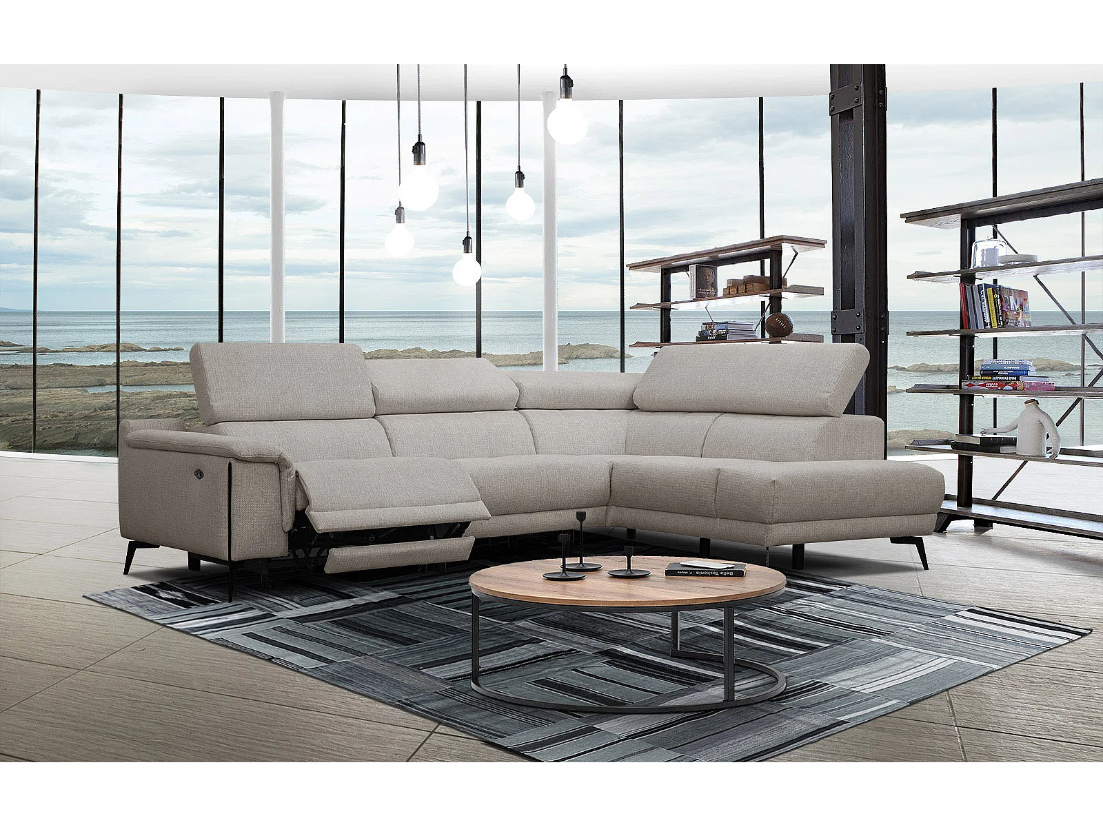 Canapé d'angle droit 4 places avec un relax électrique gris chaud - Matera