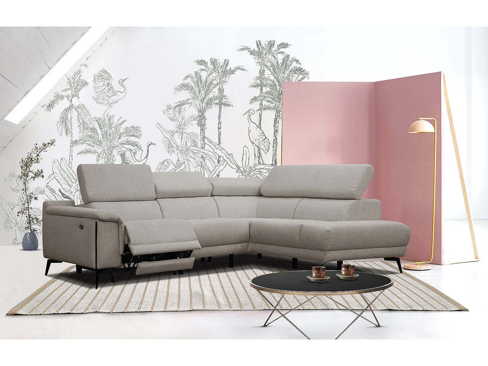 Canapé d'angle droit 4 places avec un relax électrique gris chaud - Matera