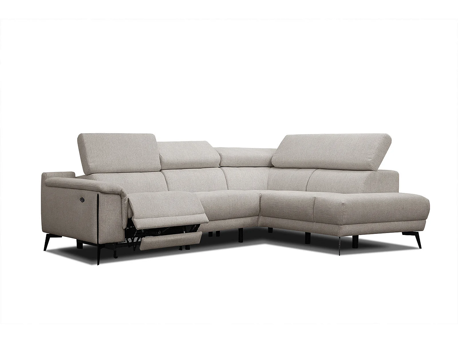 Canapé d'angle droit 4 places avec un relax électrique tissu beige - Matera