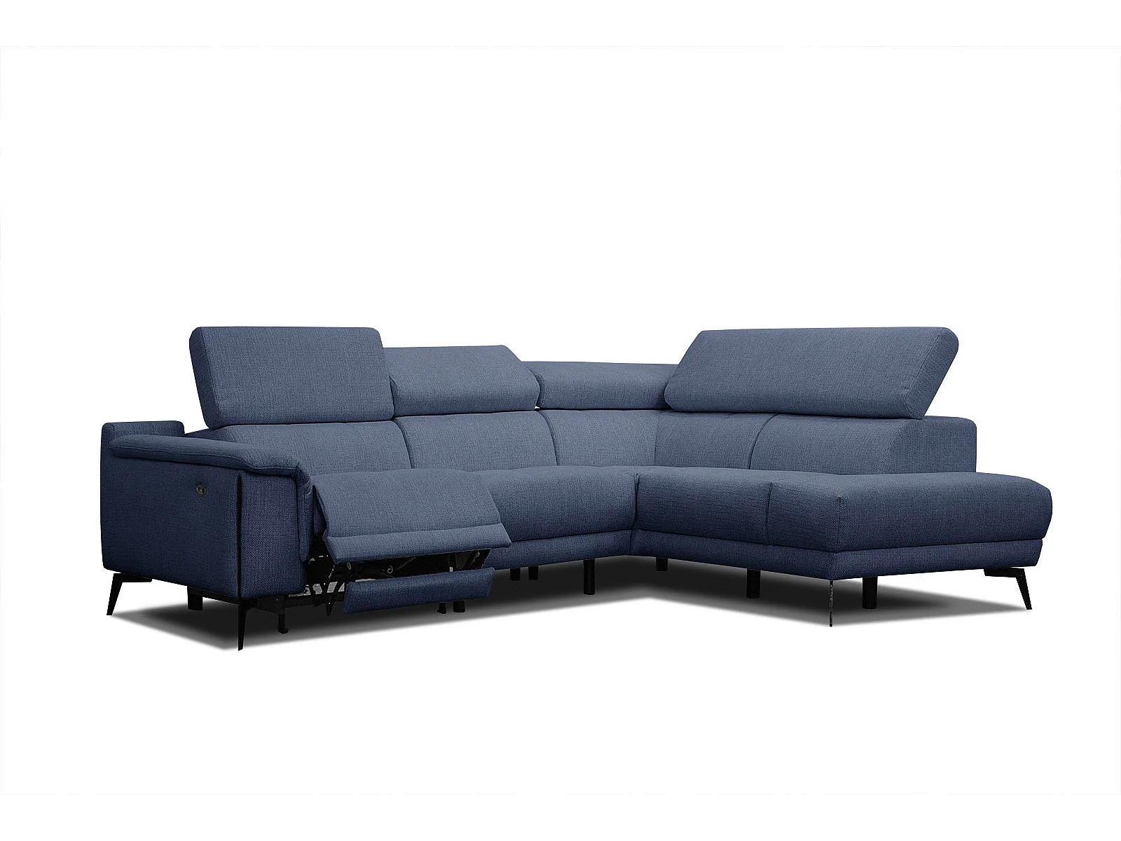 Canapé d'angle droit 4 places avec un relax électrique tissu bleu foncé - Matera
