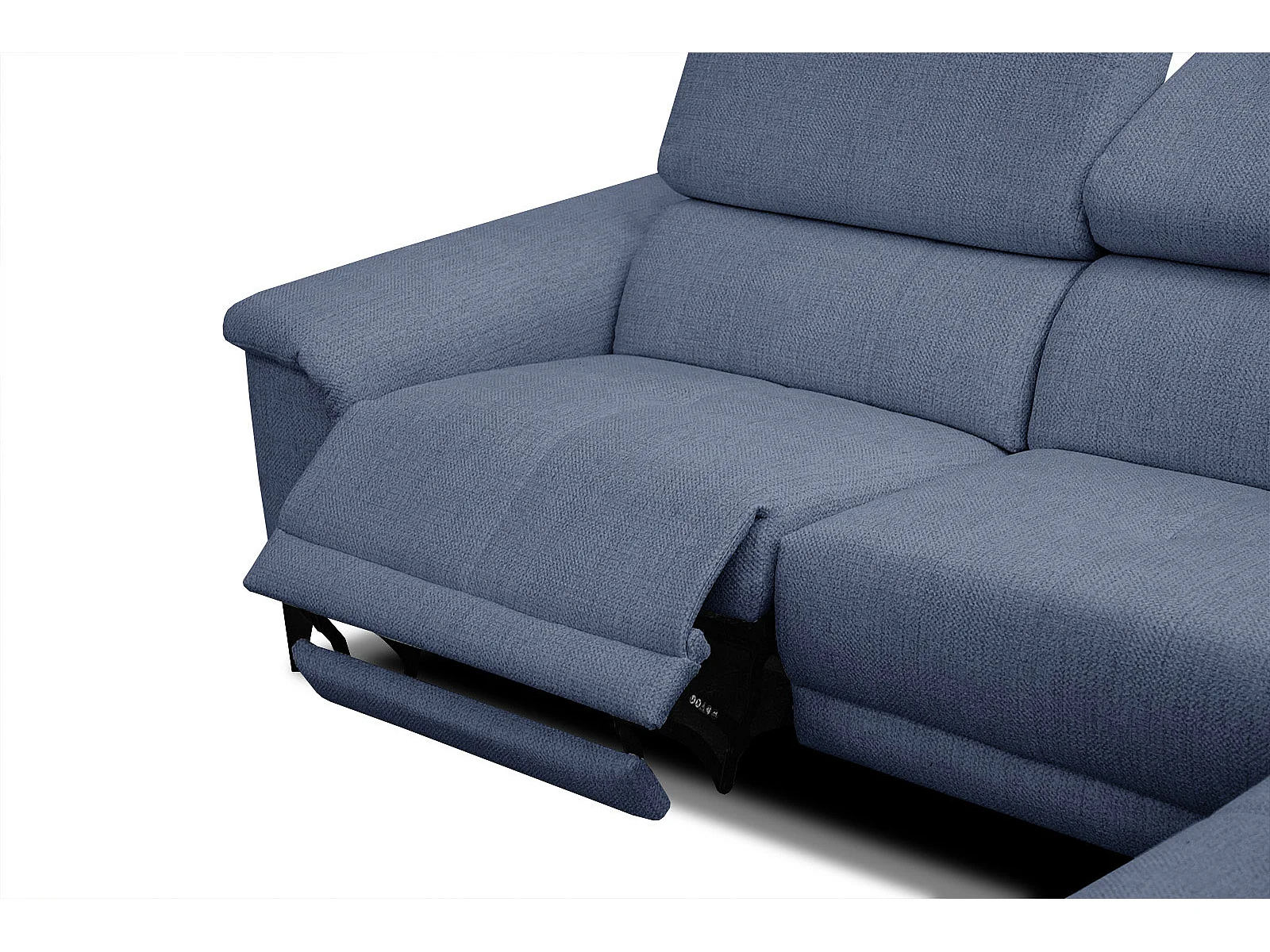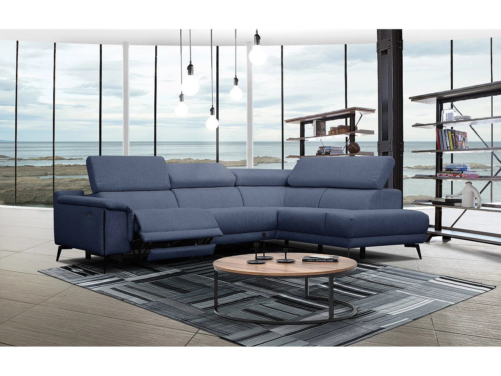 Canapé d'angle droit 4 places avec un relax électrique tissu bleu foncé - Matera