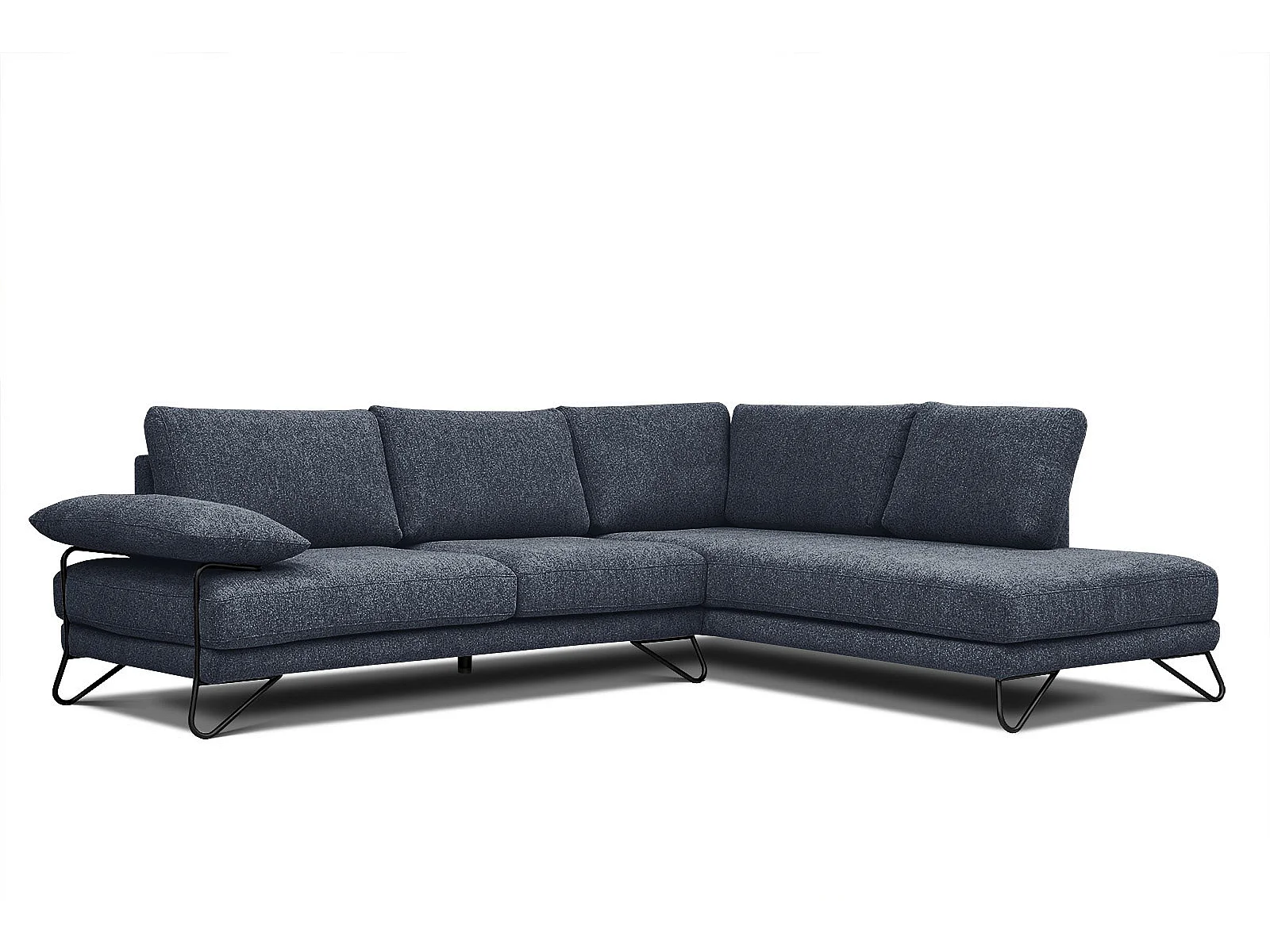 Canapé d'angle droit 5 places tissu bleu - Lori