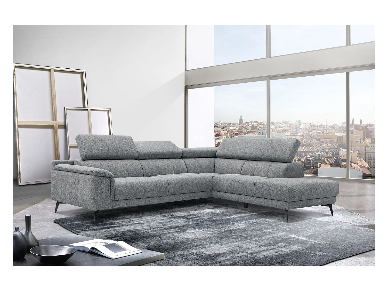 Canapé d'angle droit 5 places tissu gris moyen - Fiero