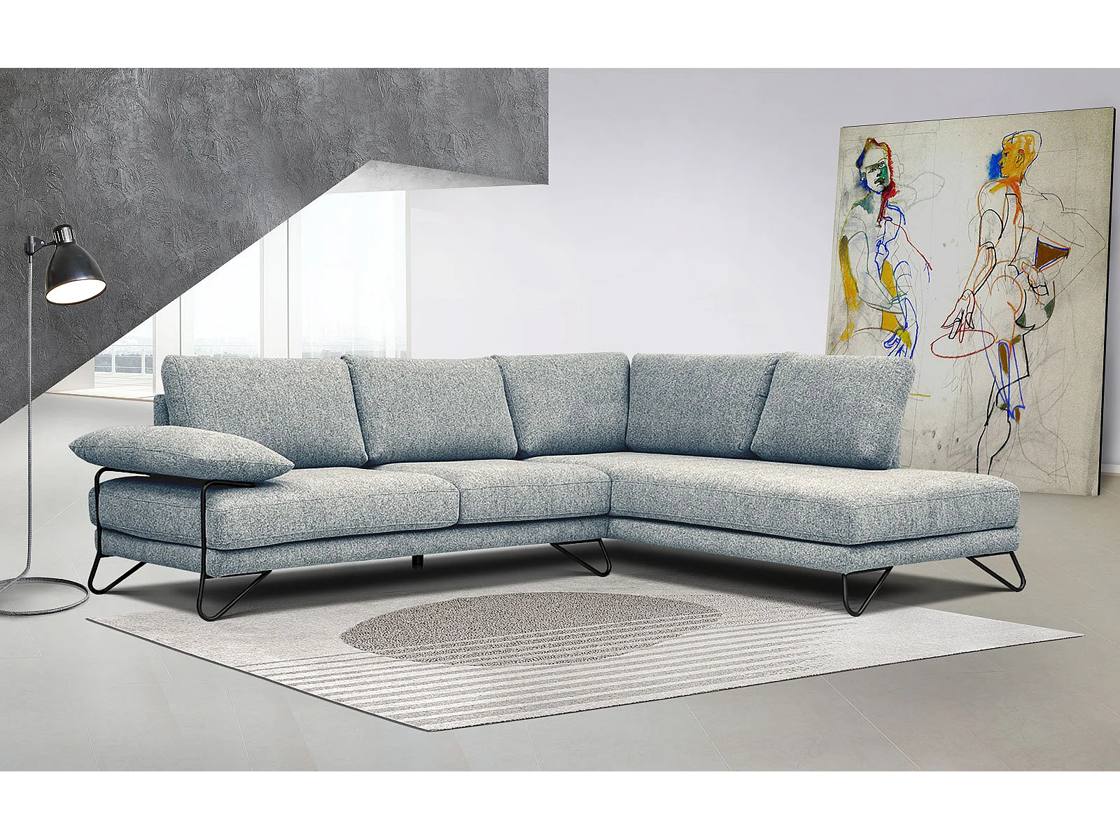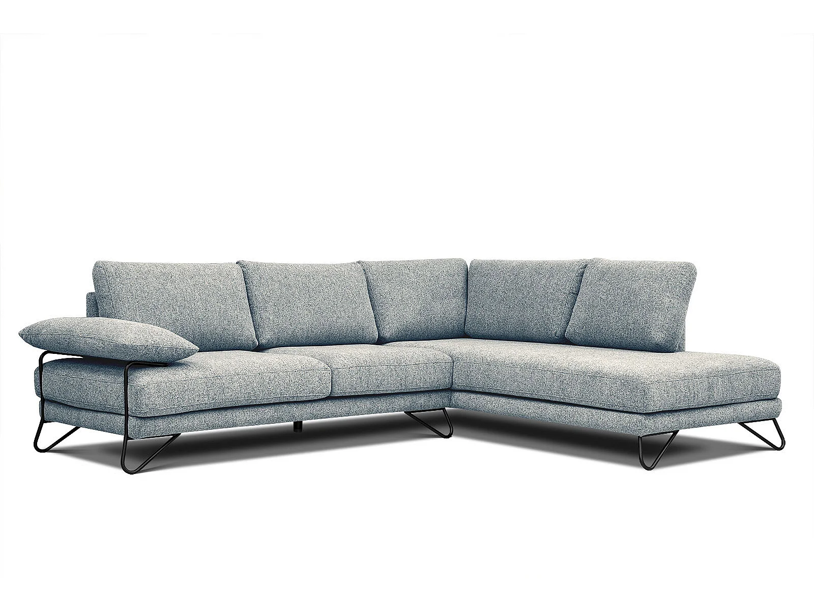Canapé d'angle droit 5 places tissu vert de mer - Lori