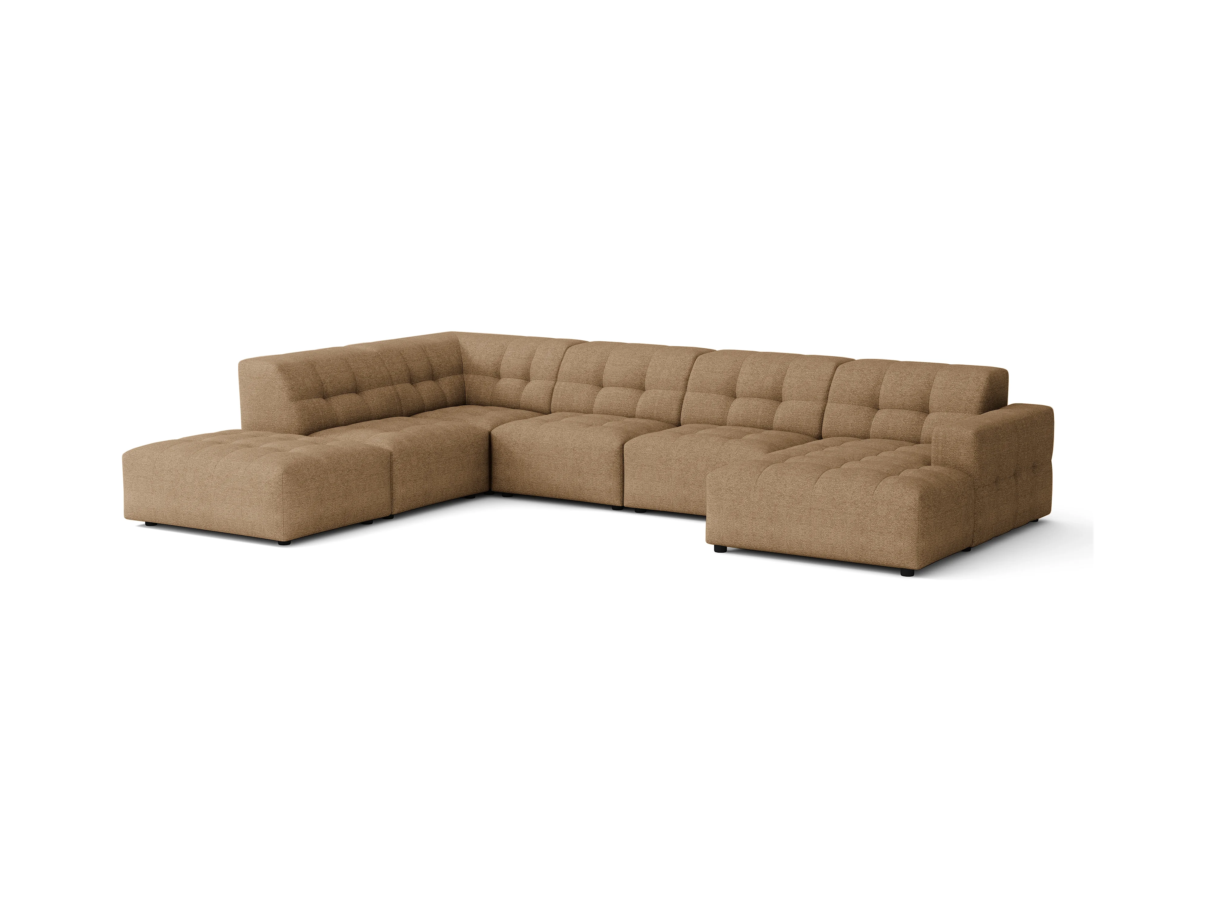Canapé d’angle droit avec pouf Bergamo C– tissu Raven 34 marron clair, 364×262×70 cm