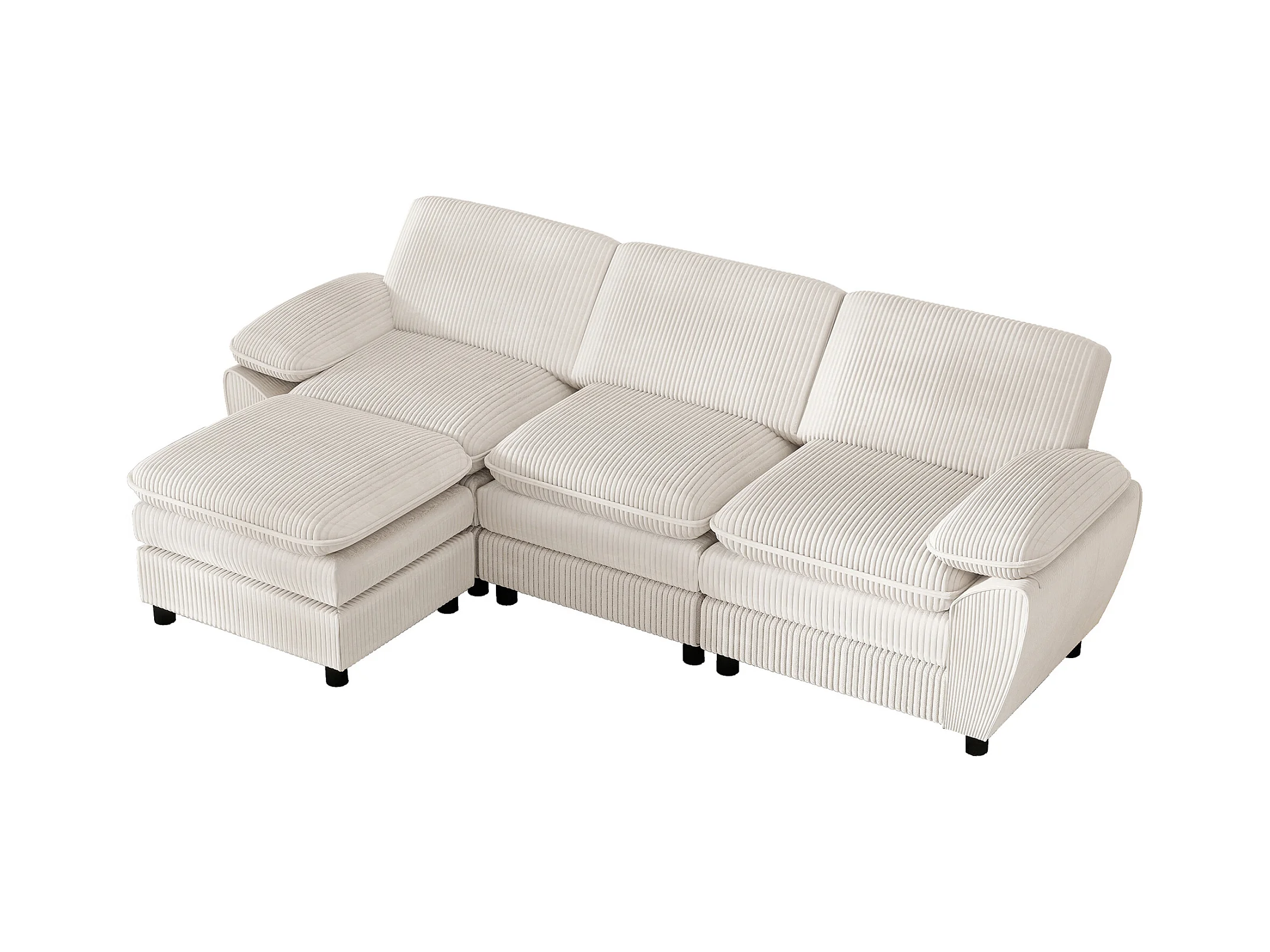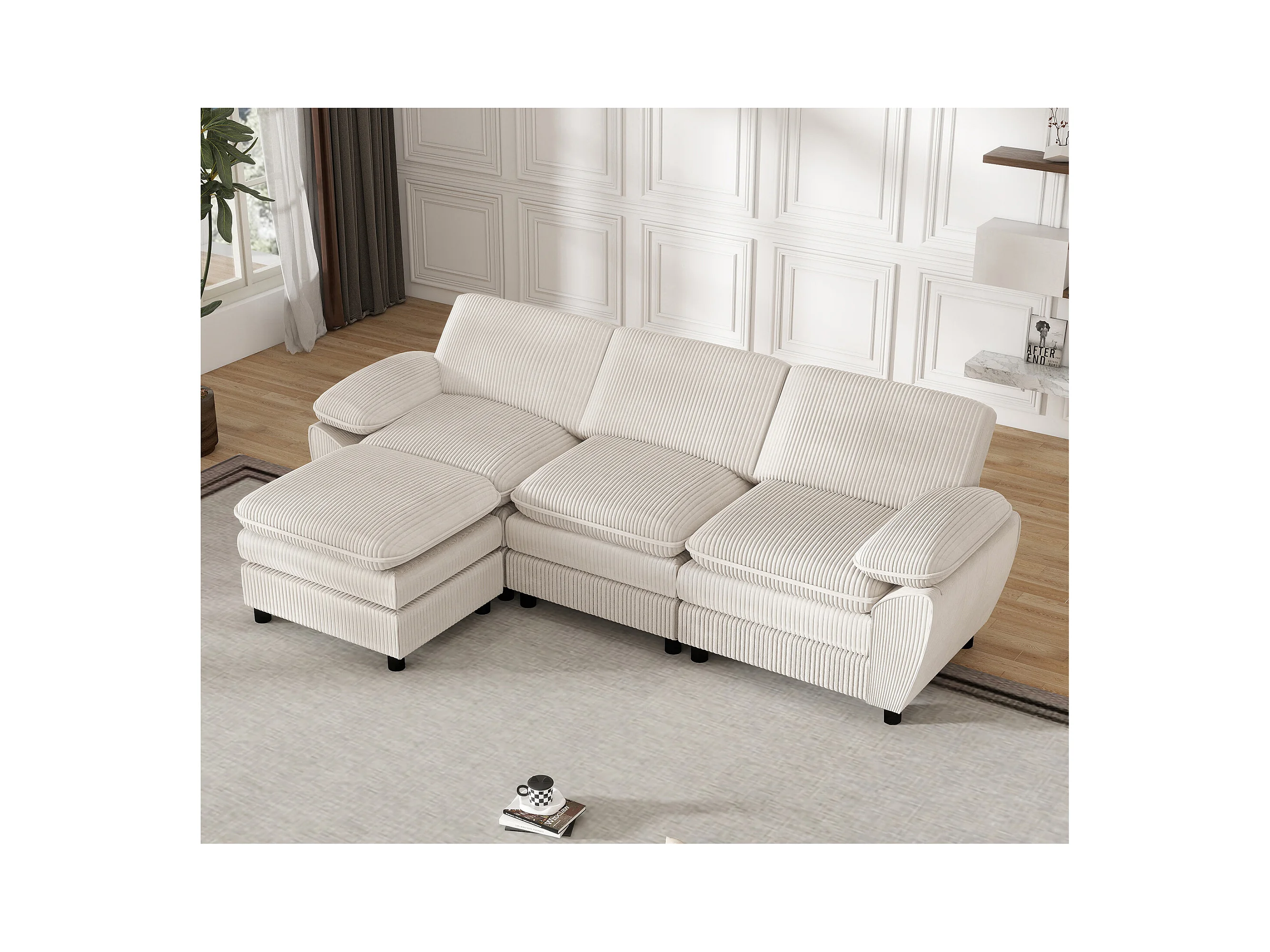 Canapé d'angle droit - Canapé avec coussins de dossier et repose-pieds amovible - beige
