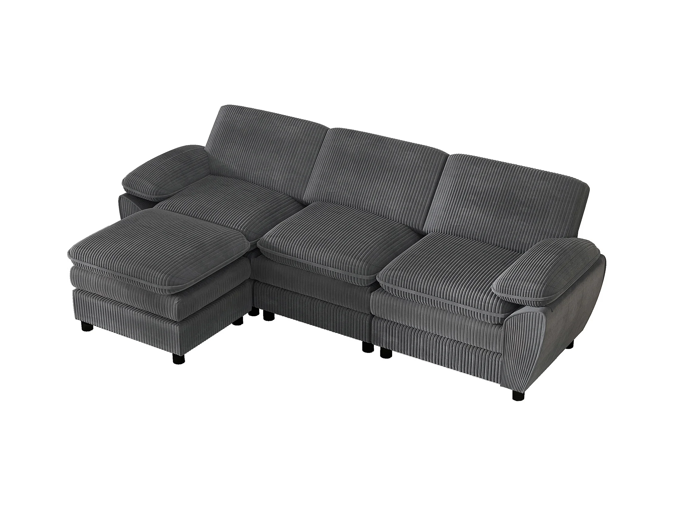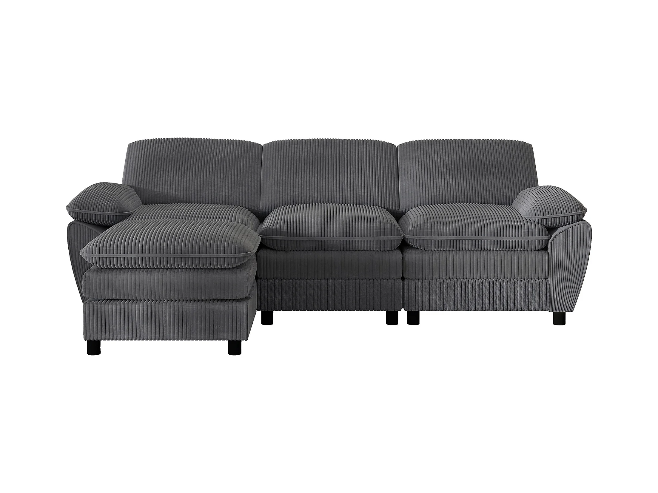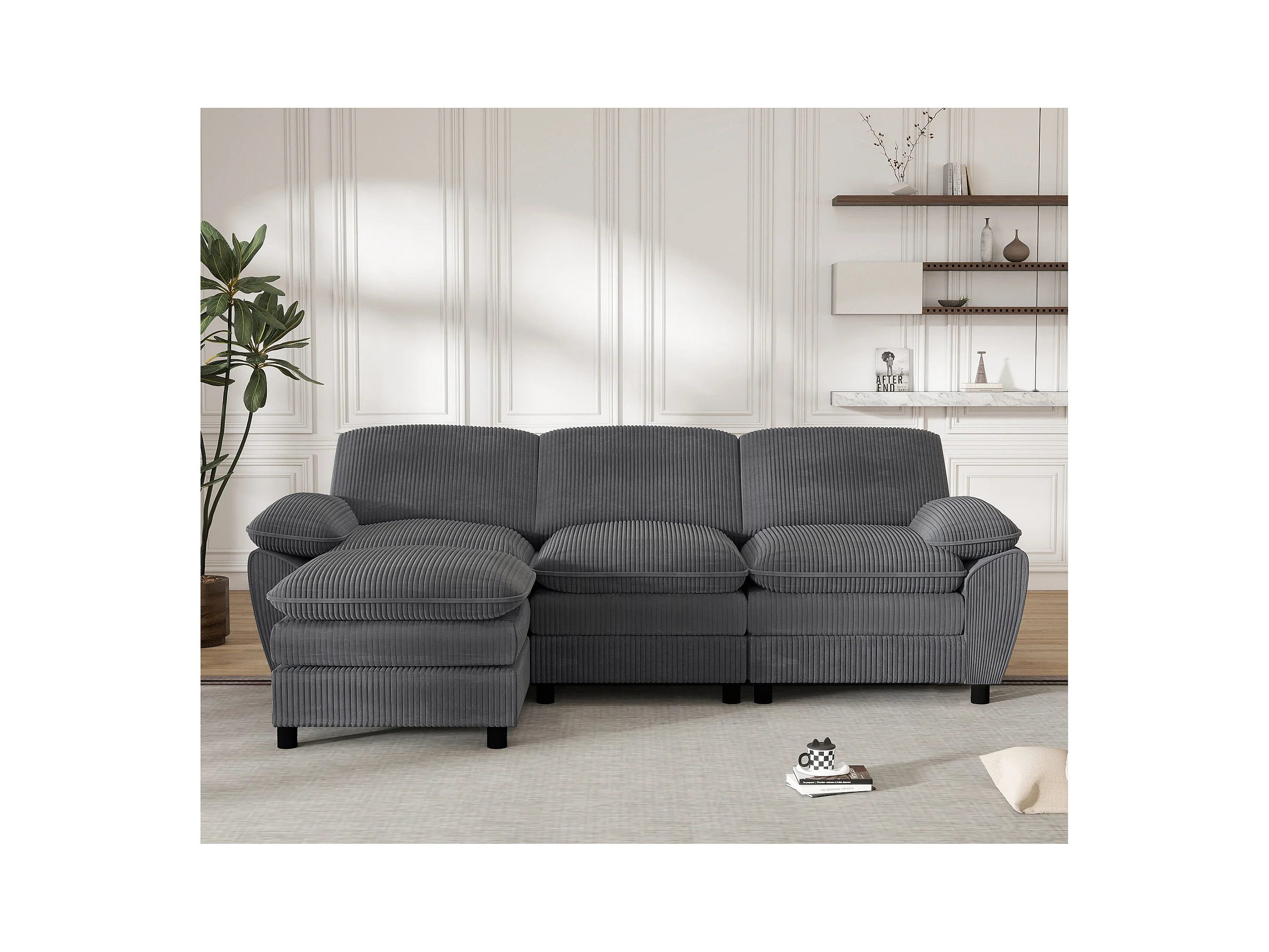 Canapé d'angle droit - Canapé avec coussins de dossier et repose-pieds amovible - gris