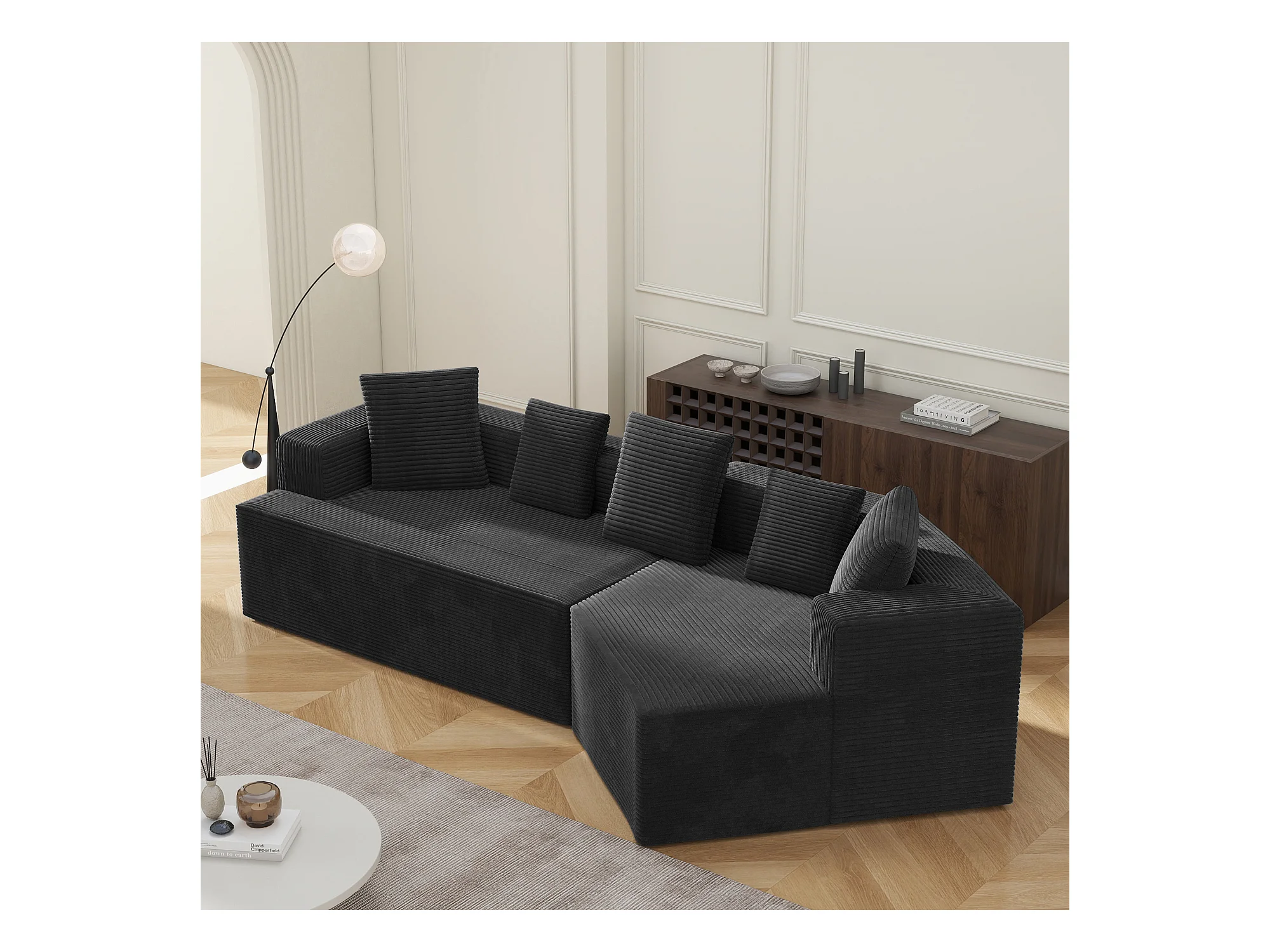Canapé d'angle droit - Canapé avec coussins et accoudoirs - noir - pour salon et chambre