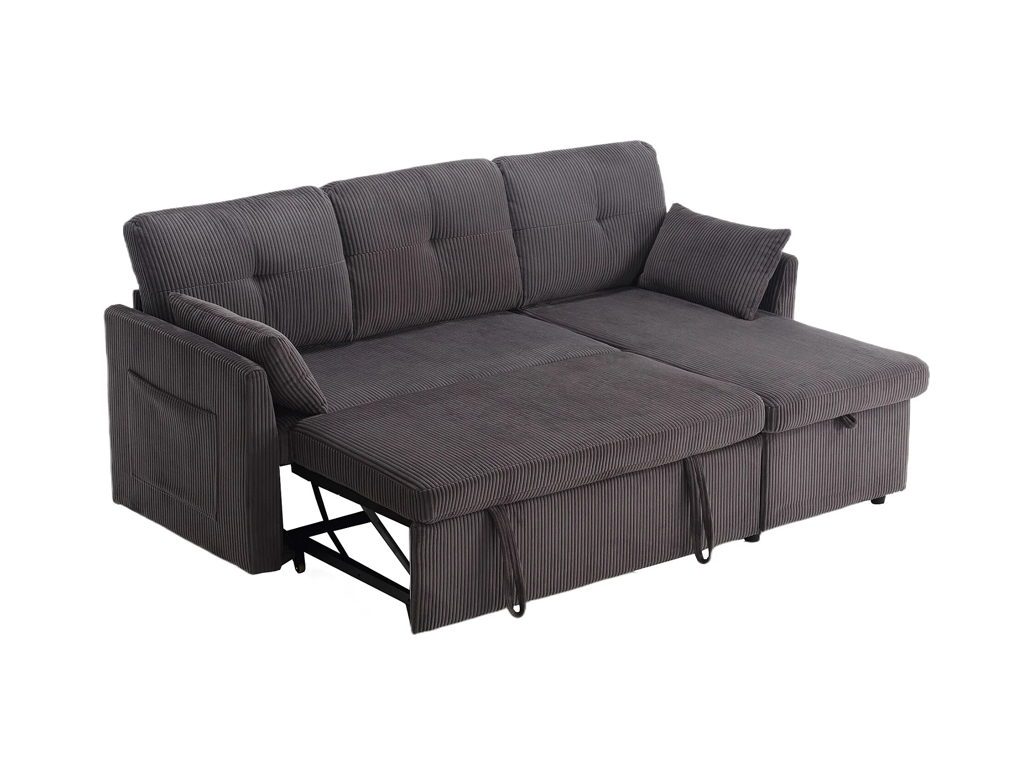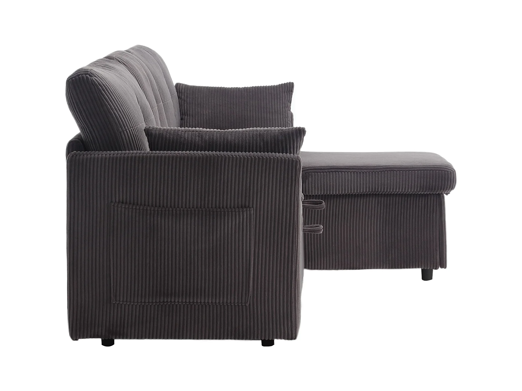 Canapé d'angle droit - Canapé avec coussins et assise coffre - poches latérales de rangement - gris foncé