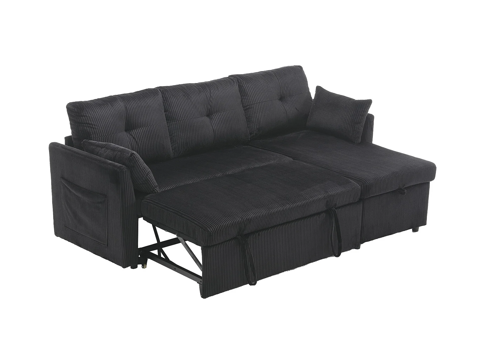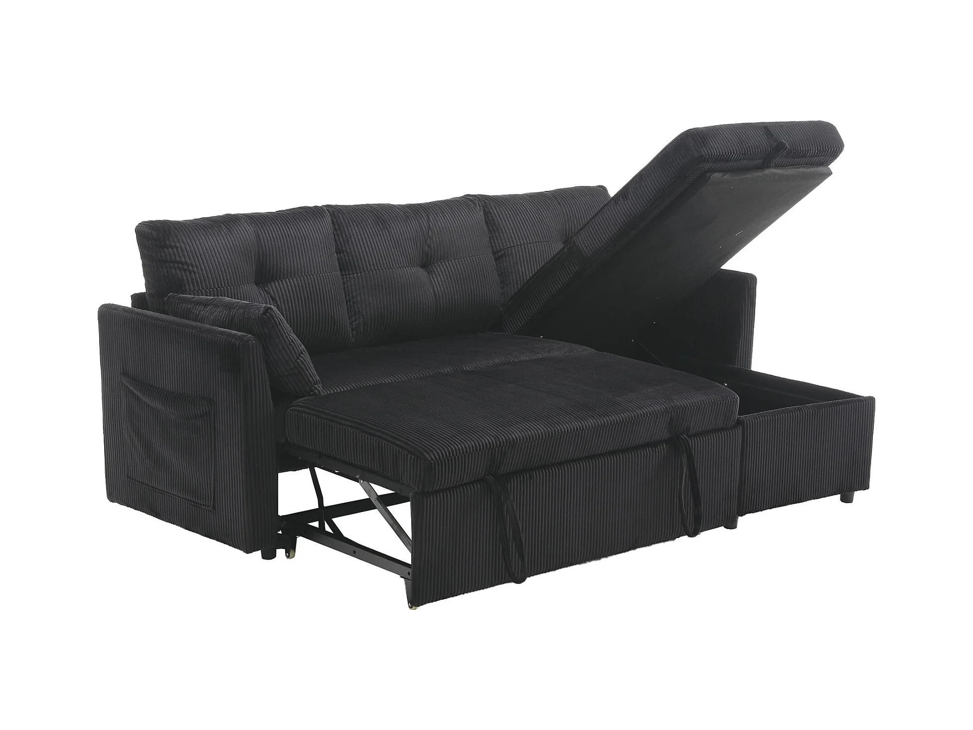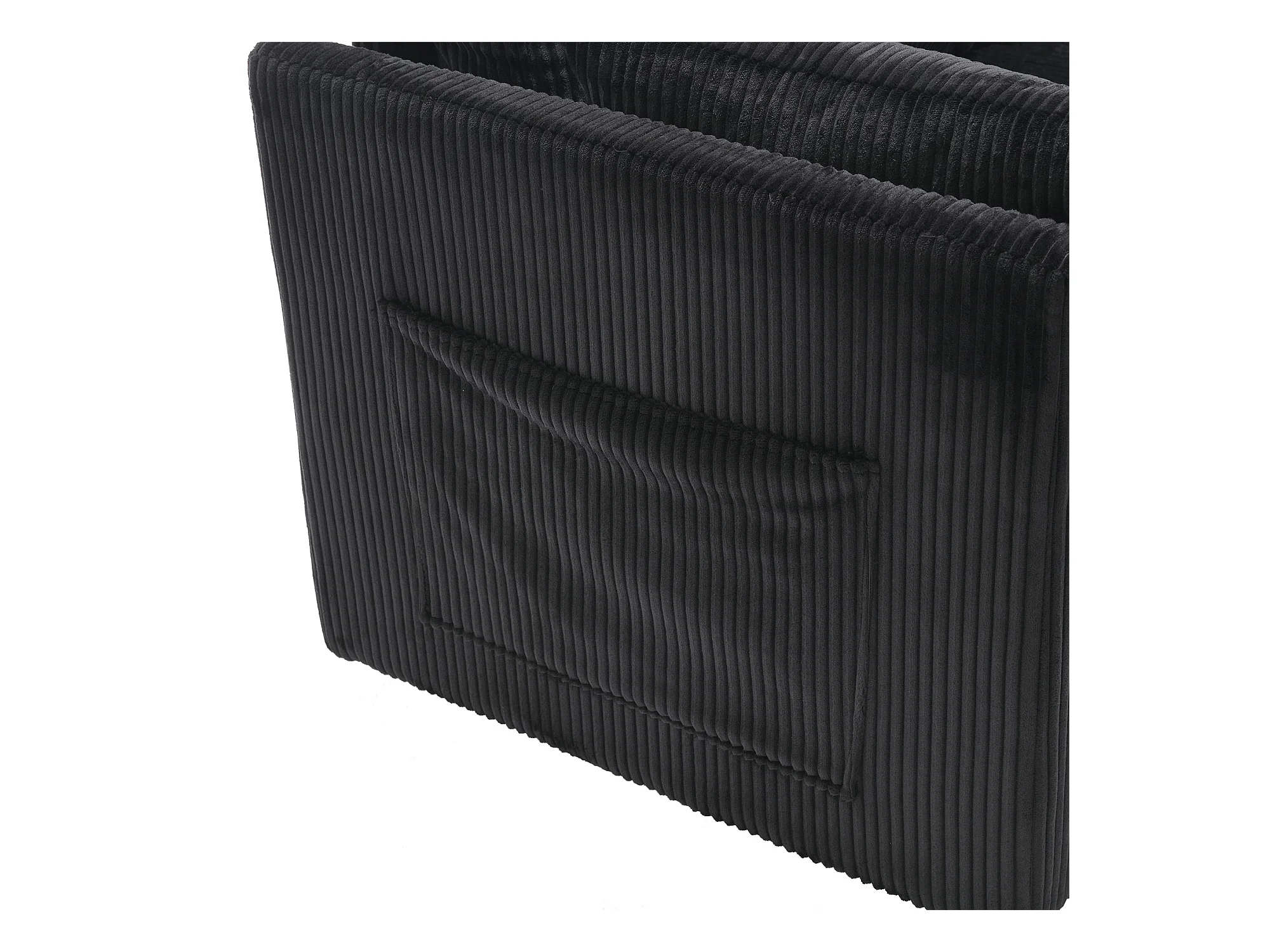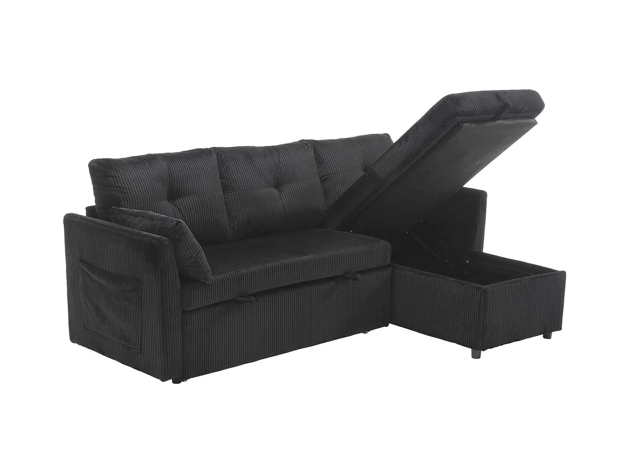 Canapé d'angle droit - Canapé avec coussins et assise coffre - poches latérales de rangement - noir