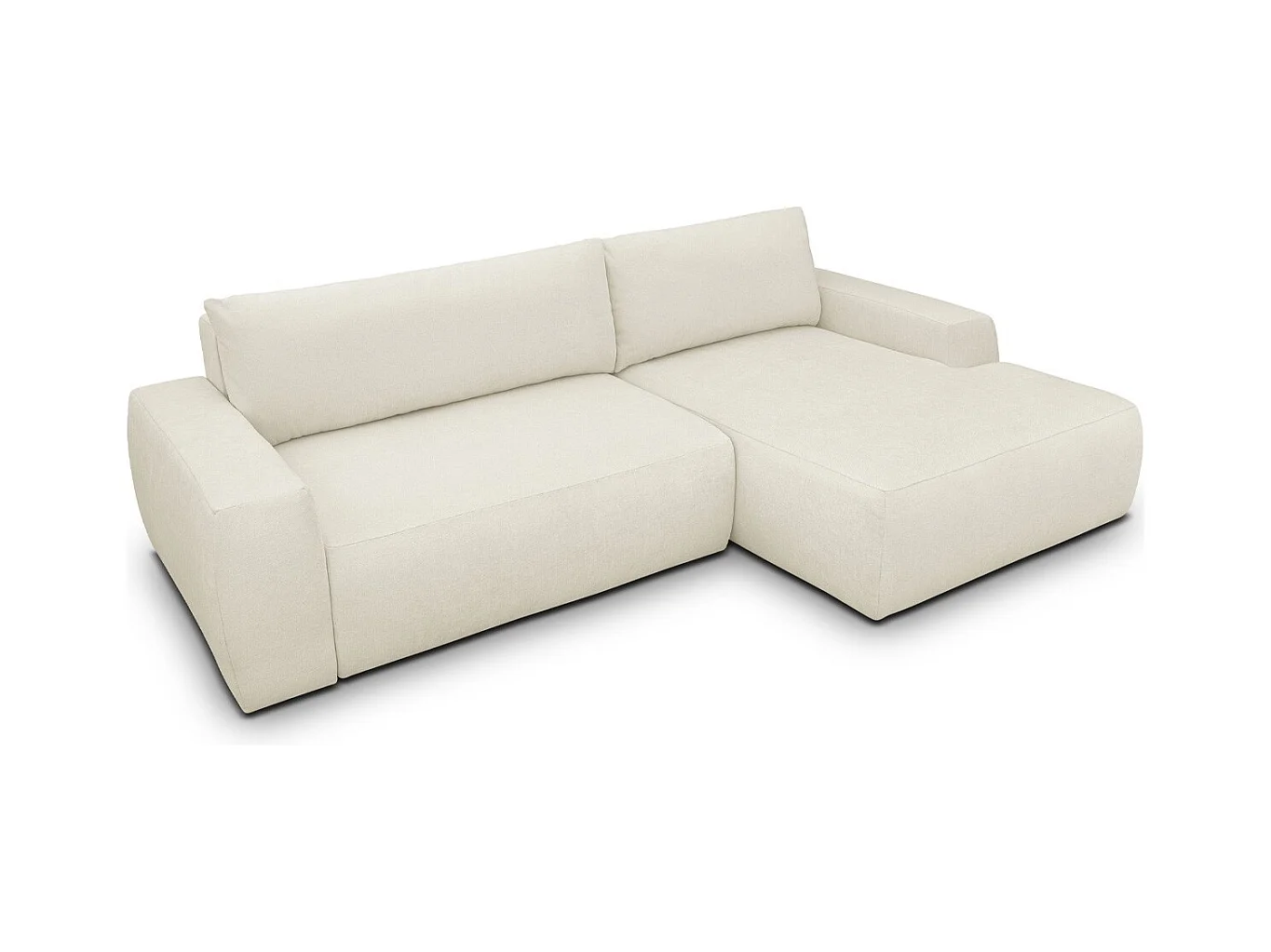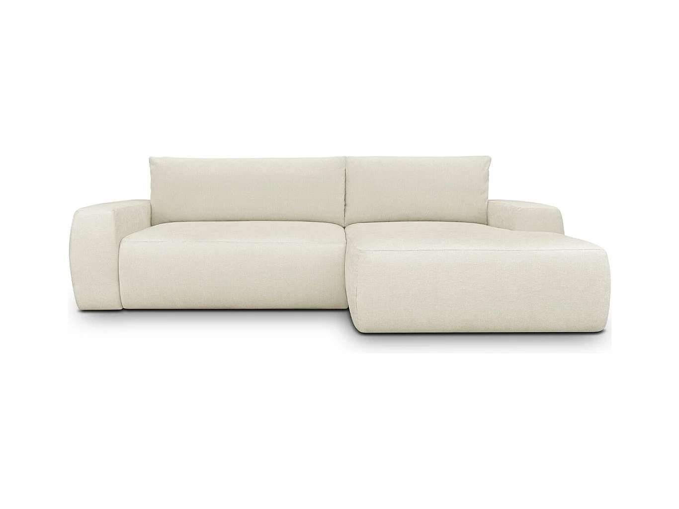 Canapé d'angle droit convertible 3 places en tissu chenille beige - Sonny