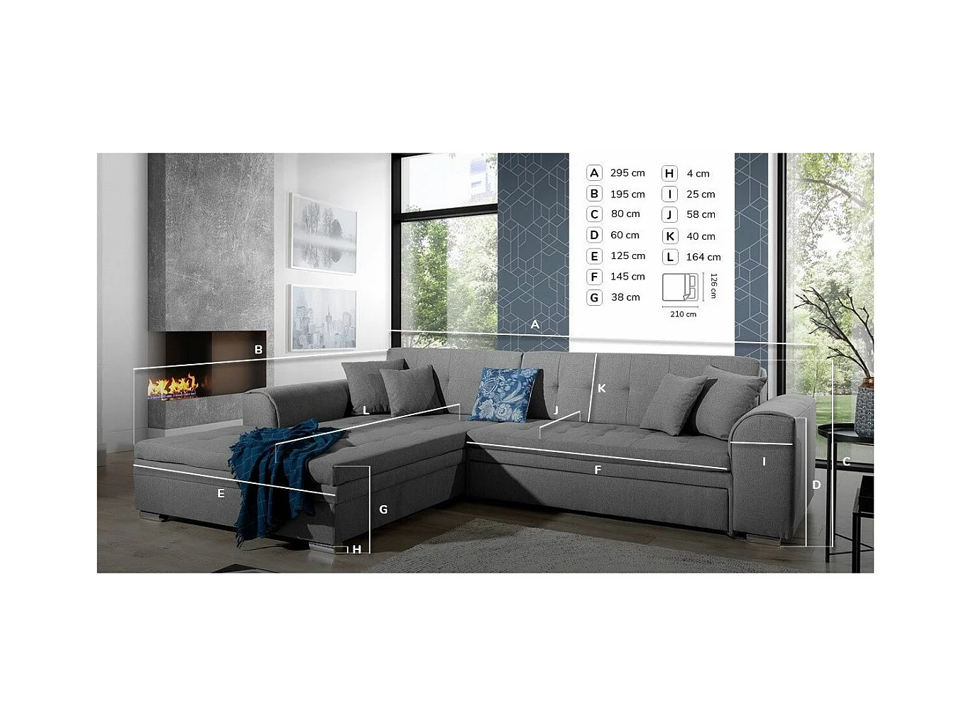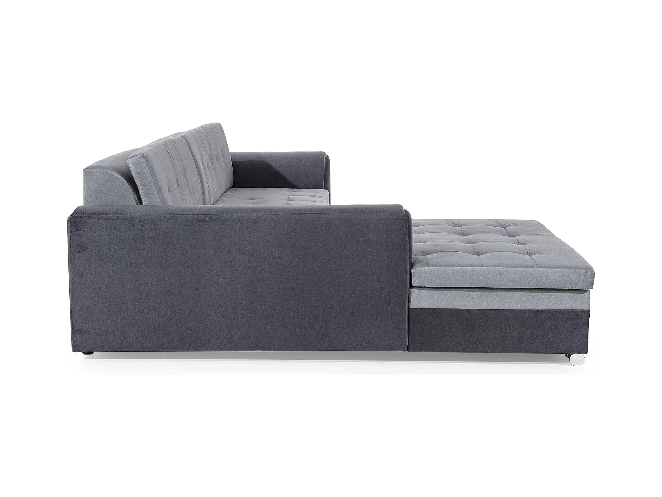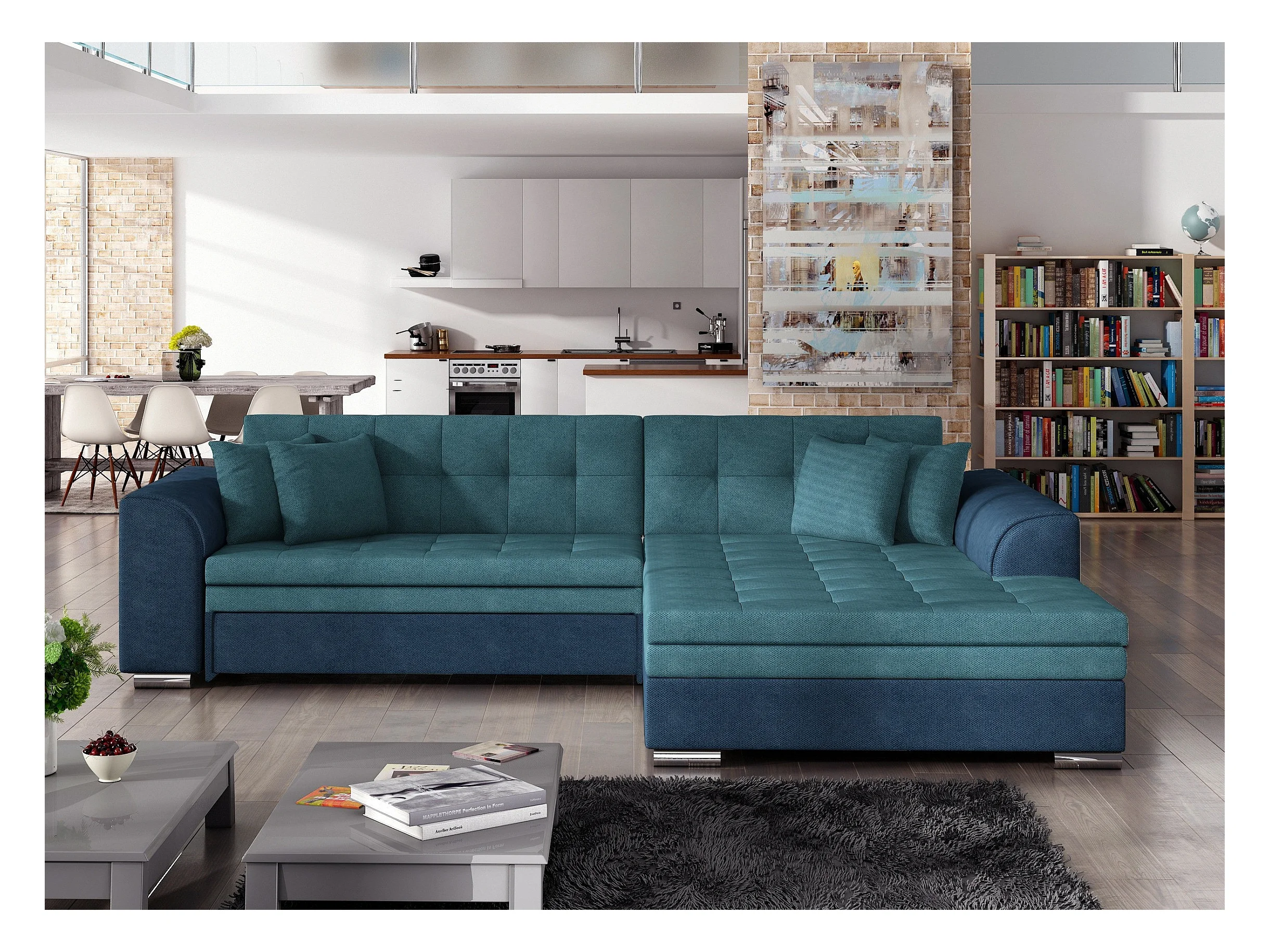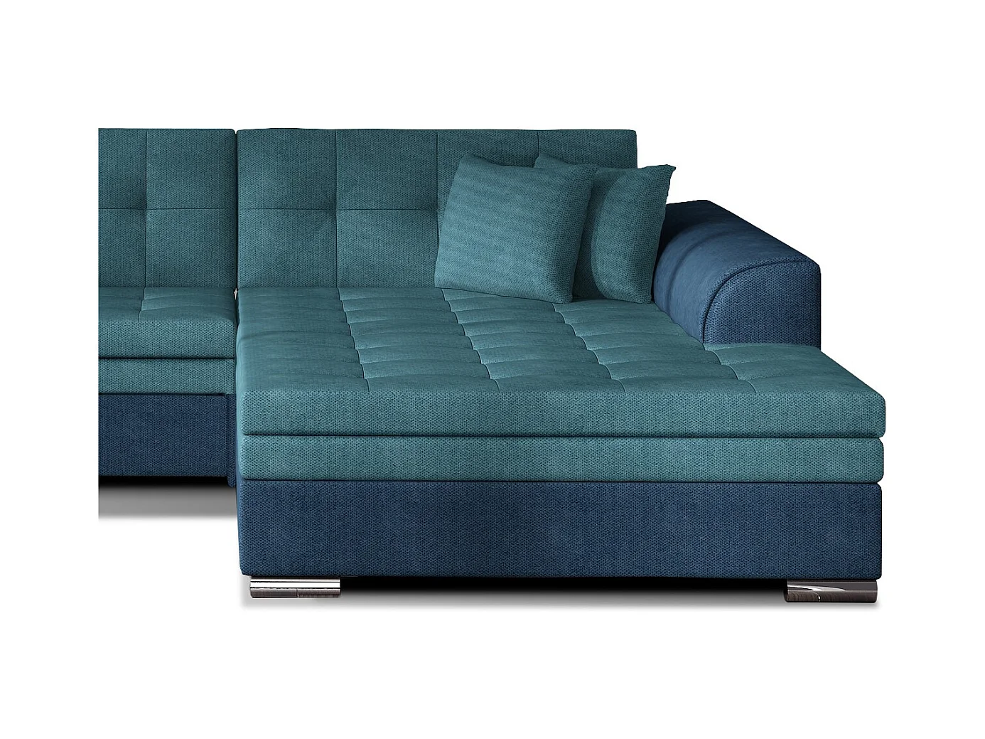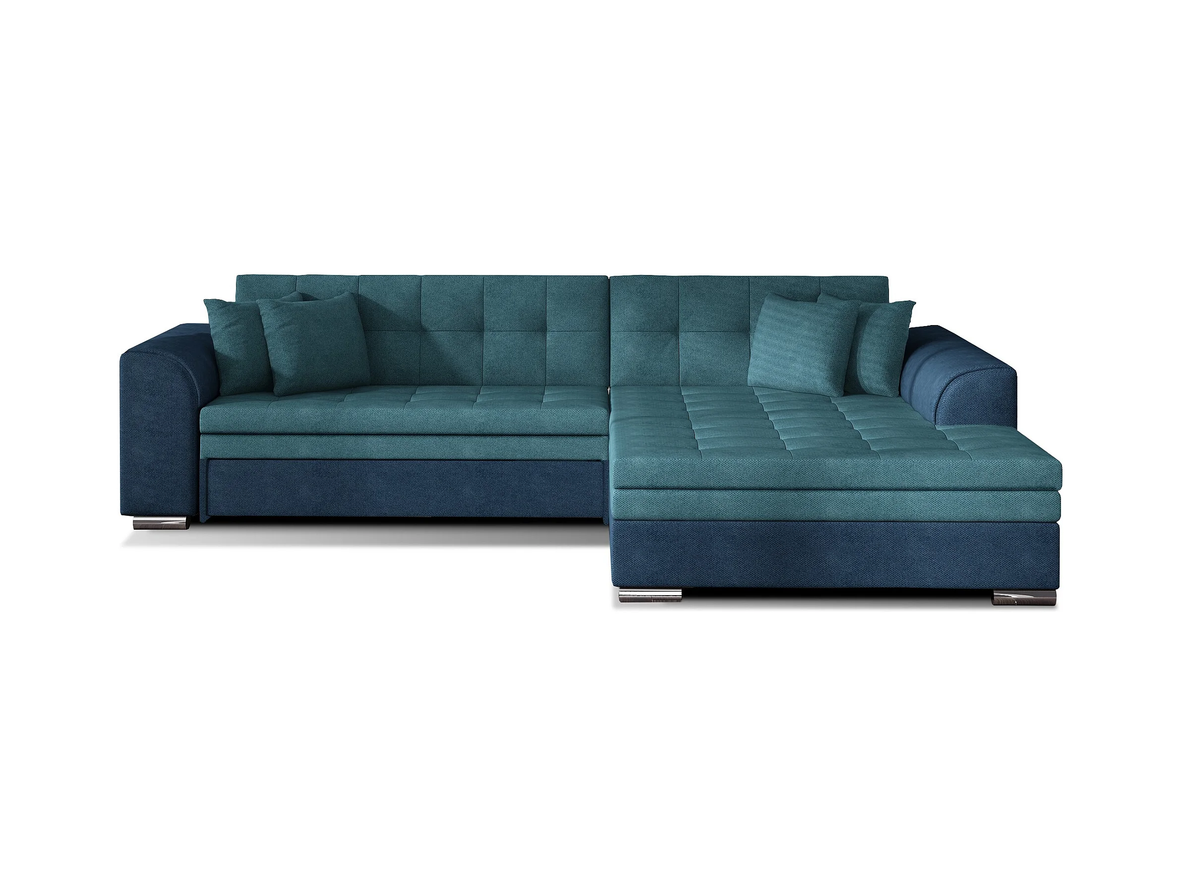 Canapé d'angle droit convertible 4 places tissu bleu foncé et bleu turquoise Looka 295cm