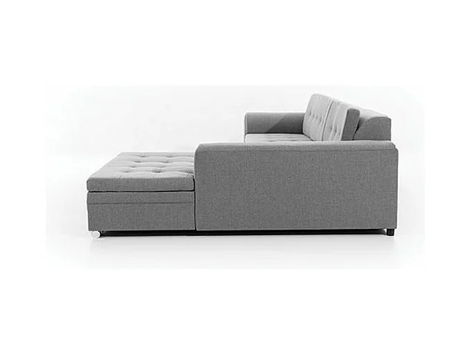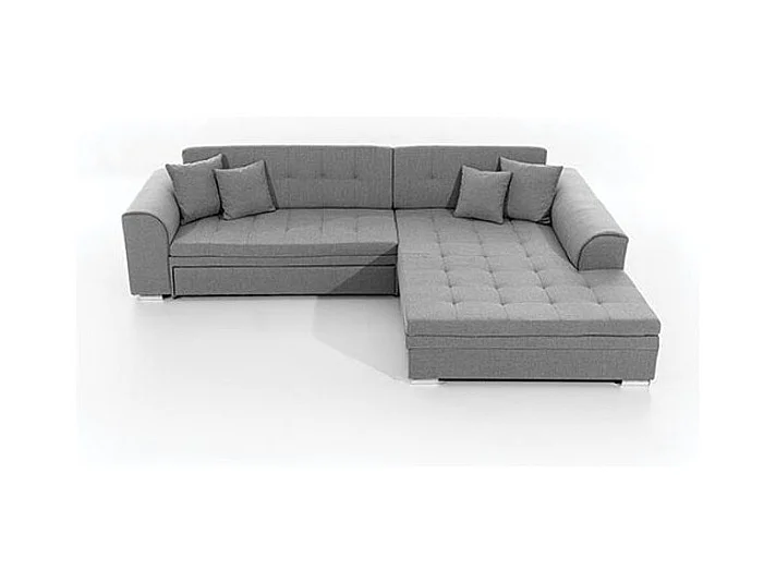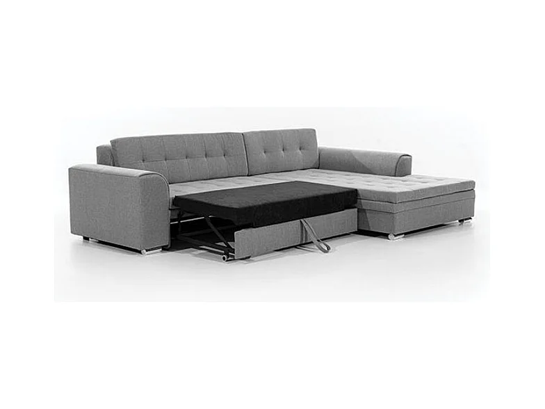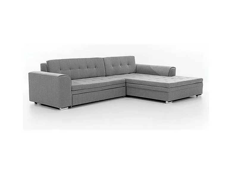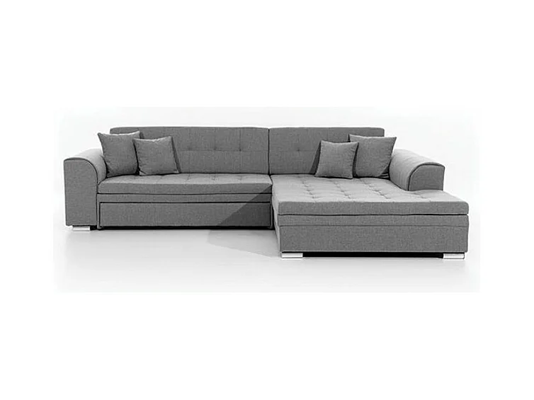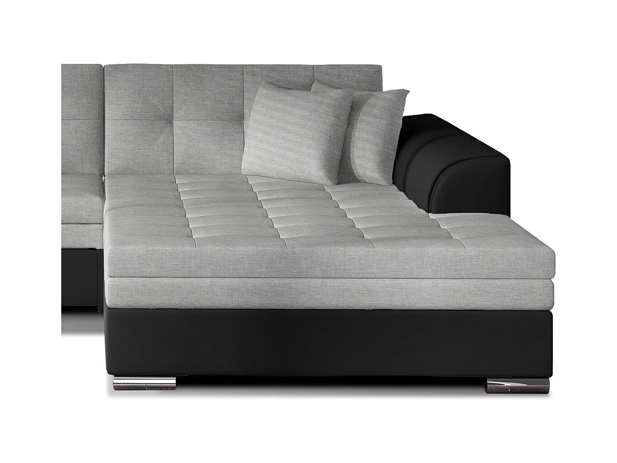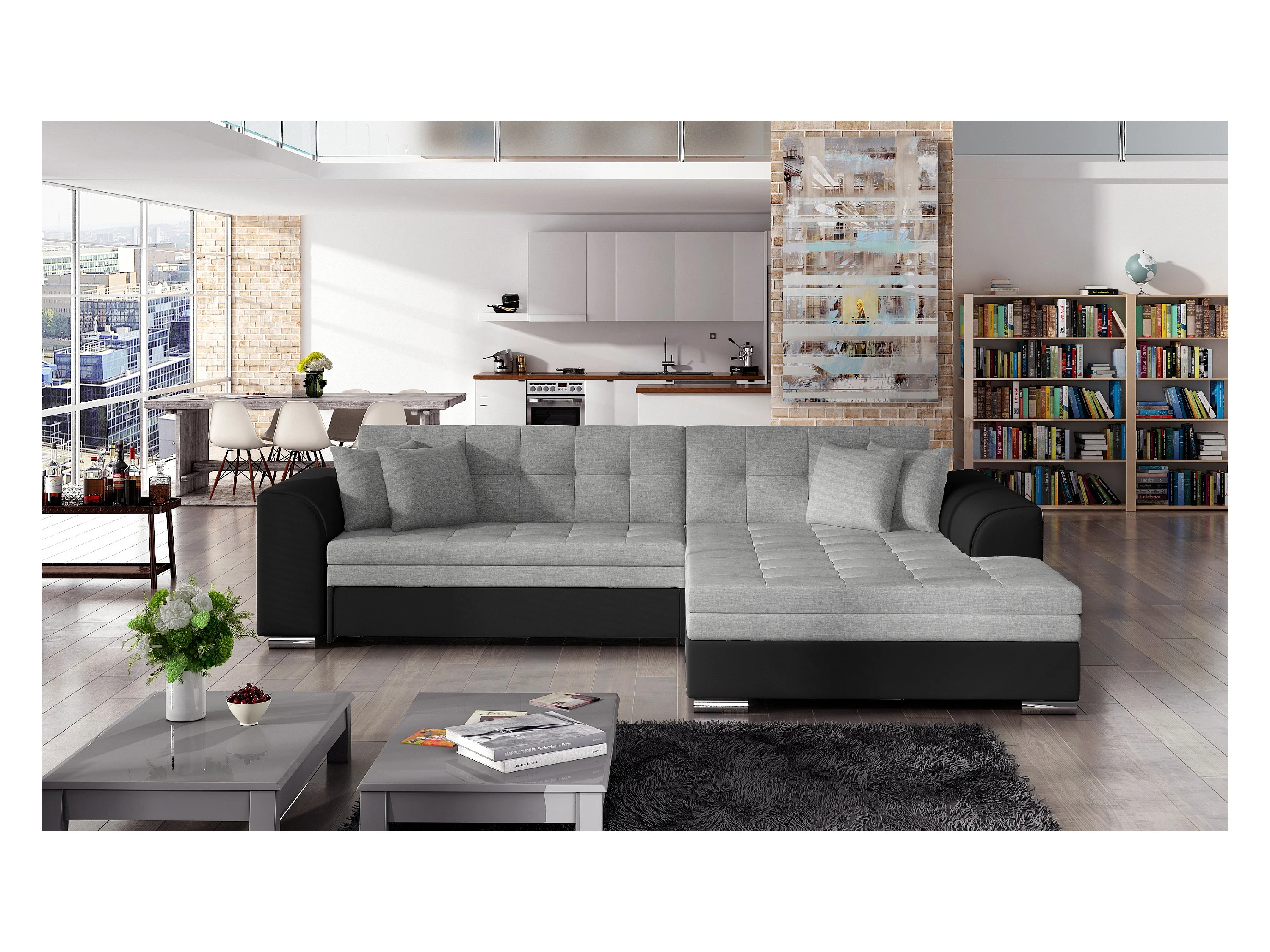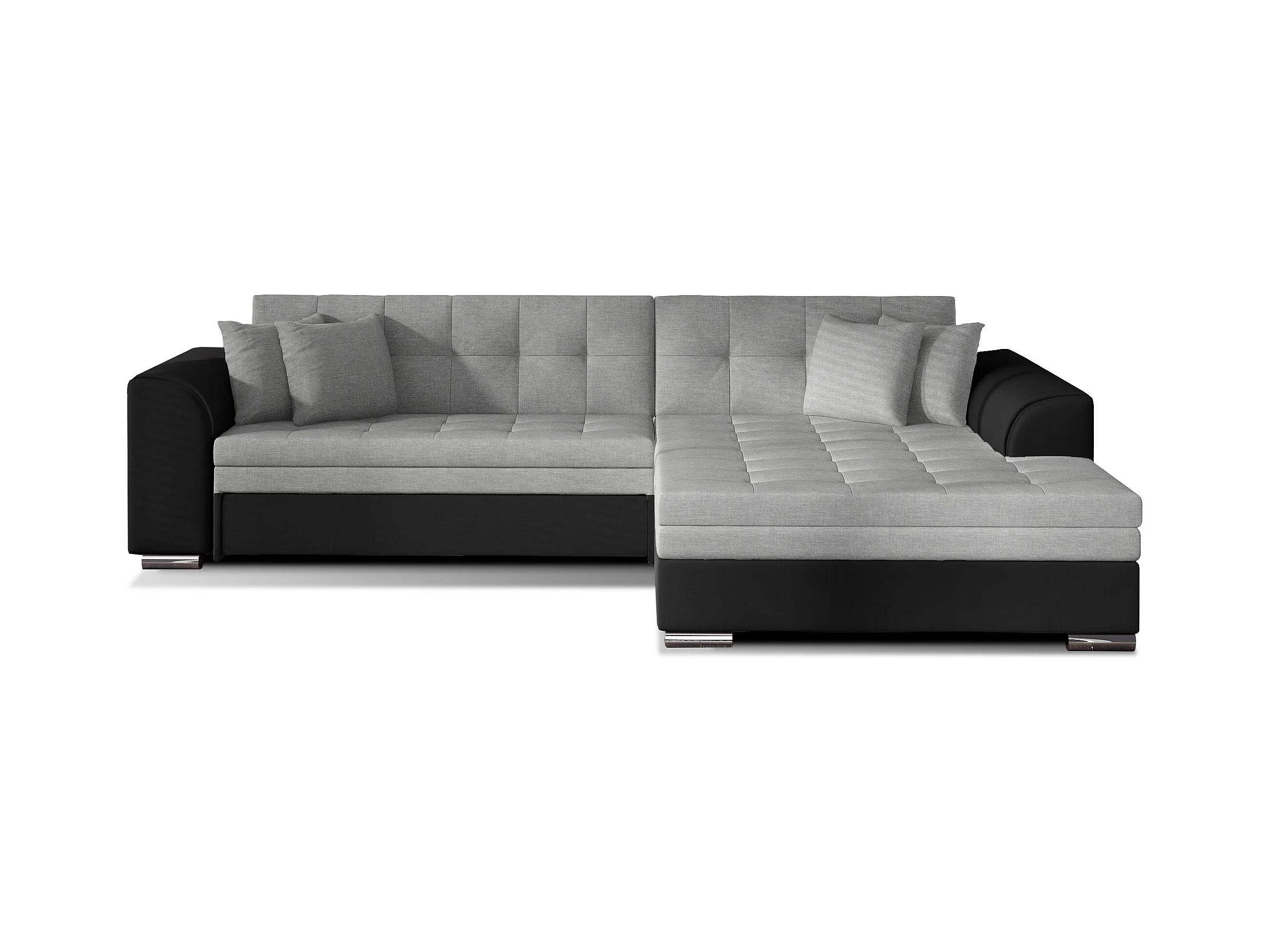 Canapé d'angle droit convertible 4 places tissu gris clair et simili noir Looka 295cm
