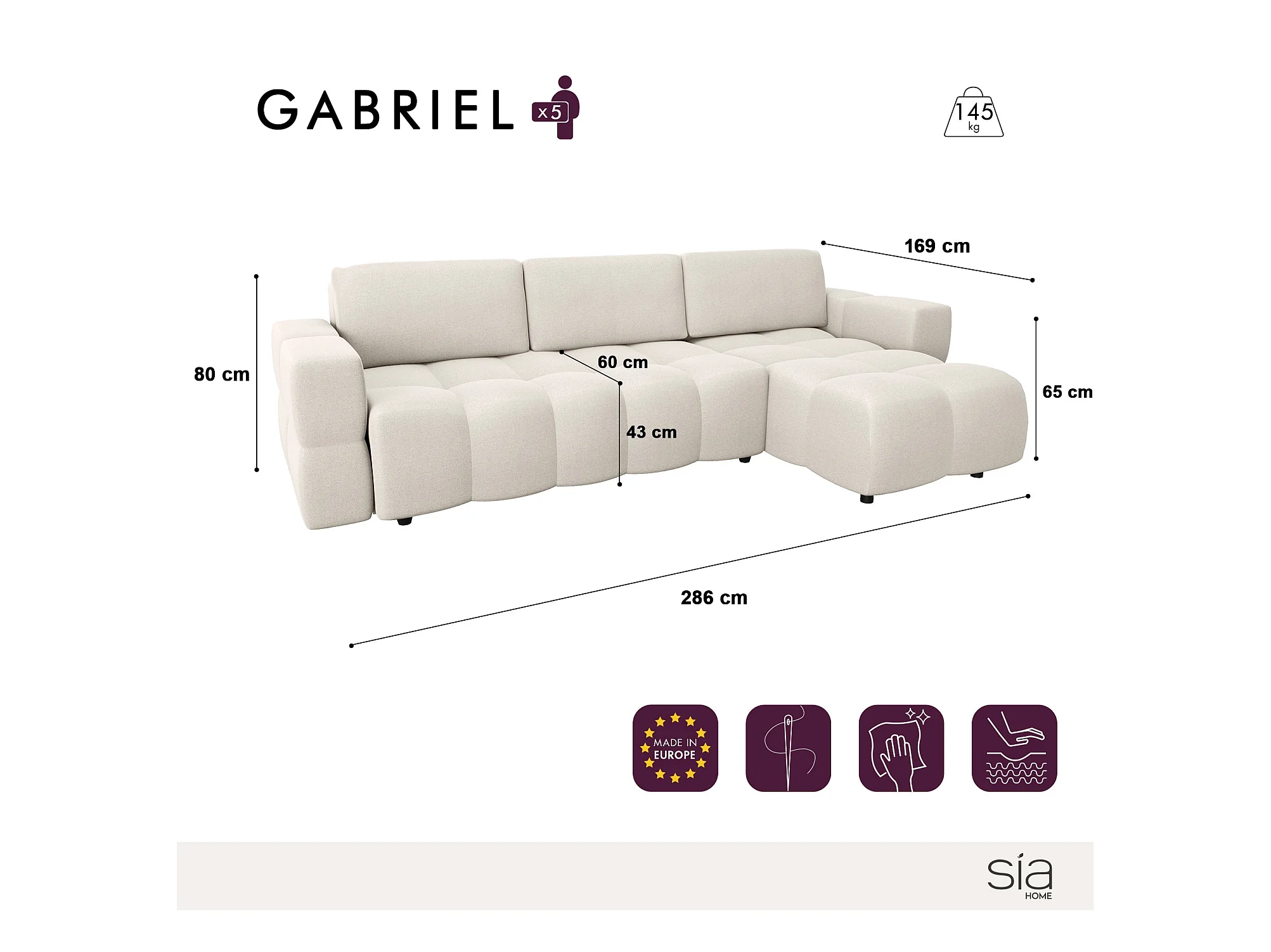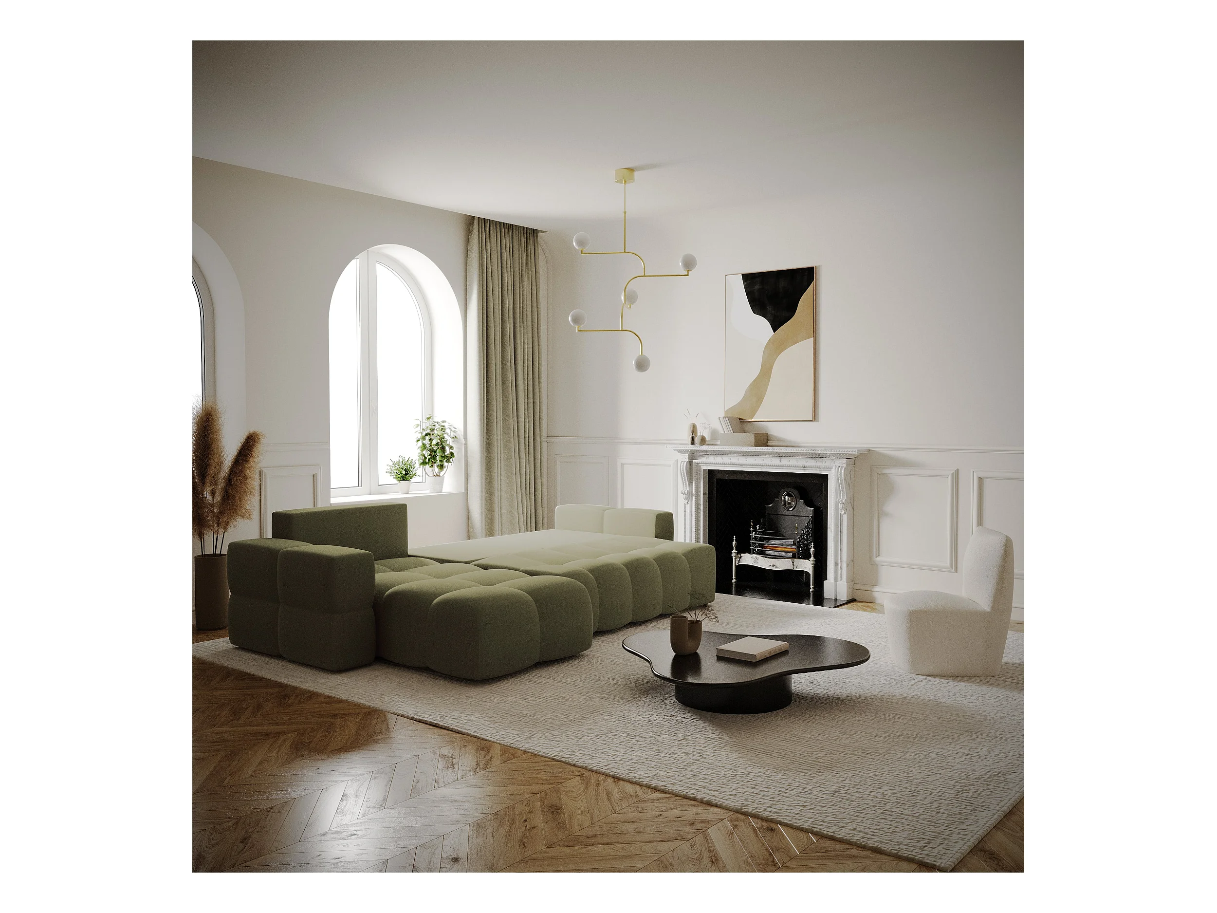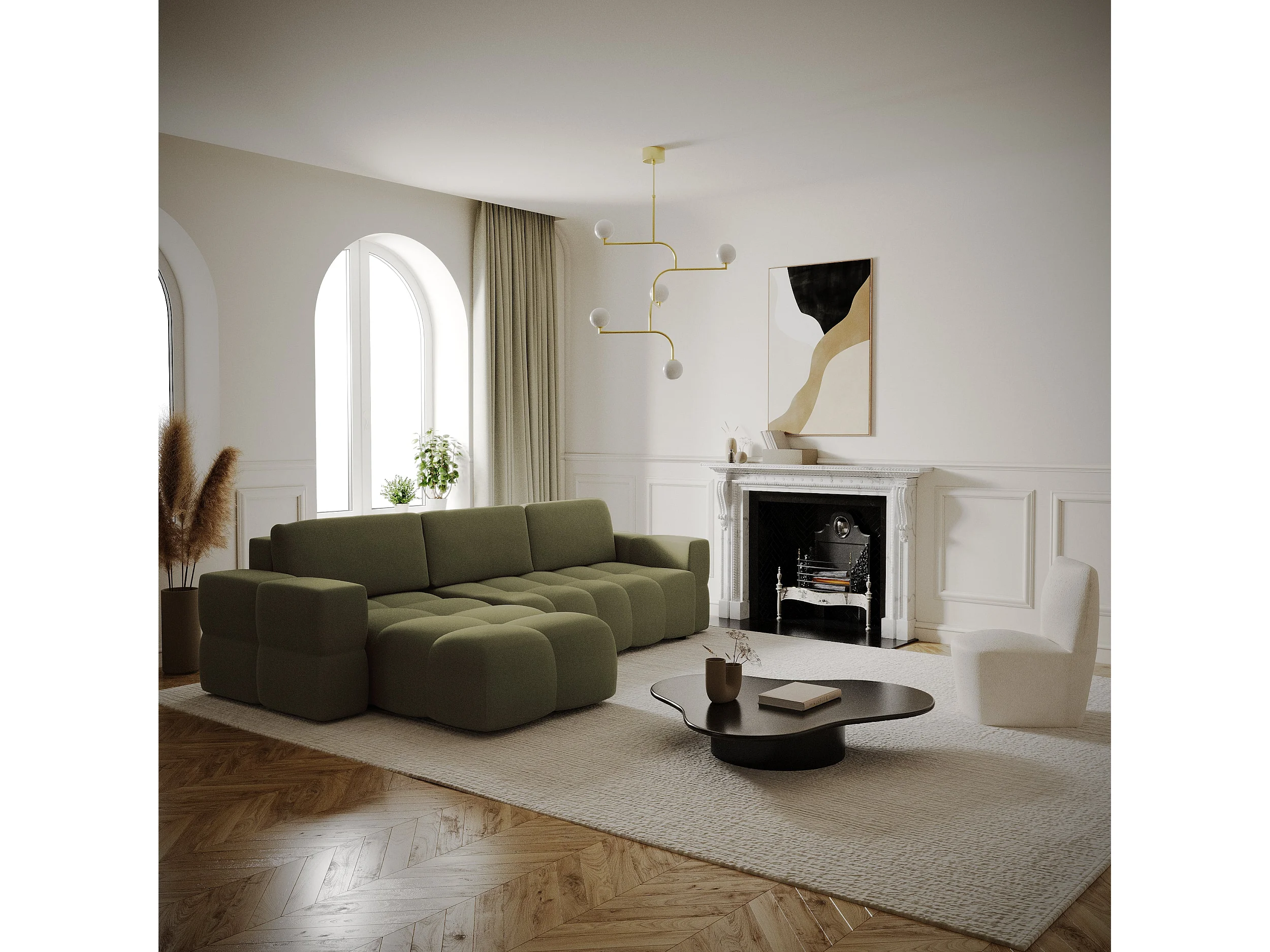 Canapé d'angle droit convertible coffre 5 places tissu tramé vert GABRIEL