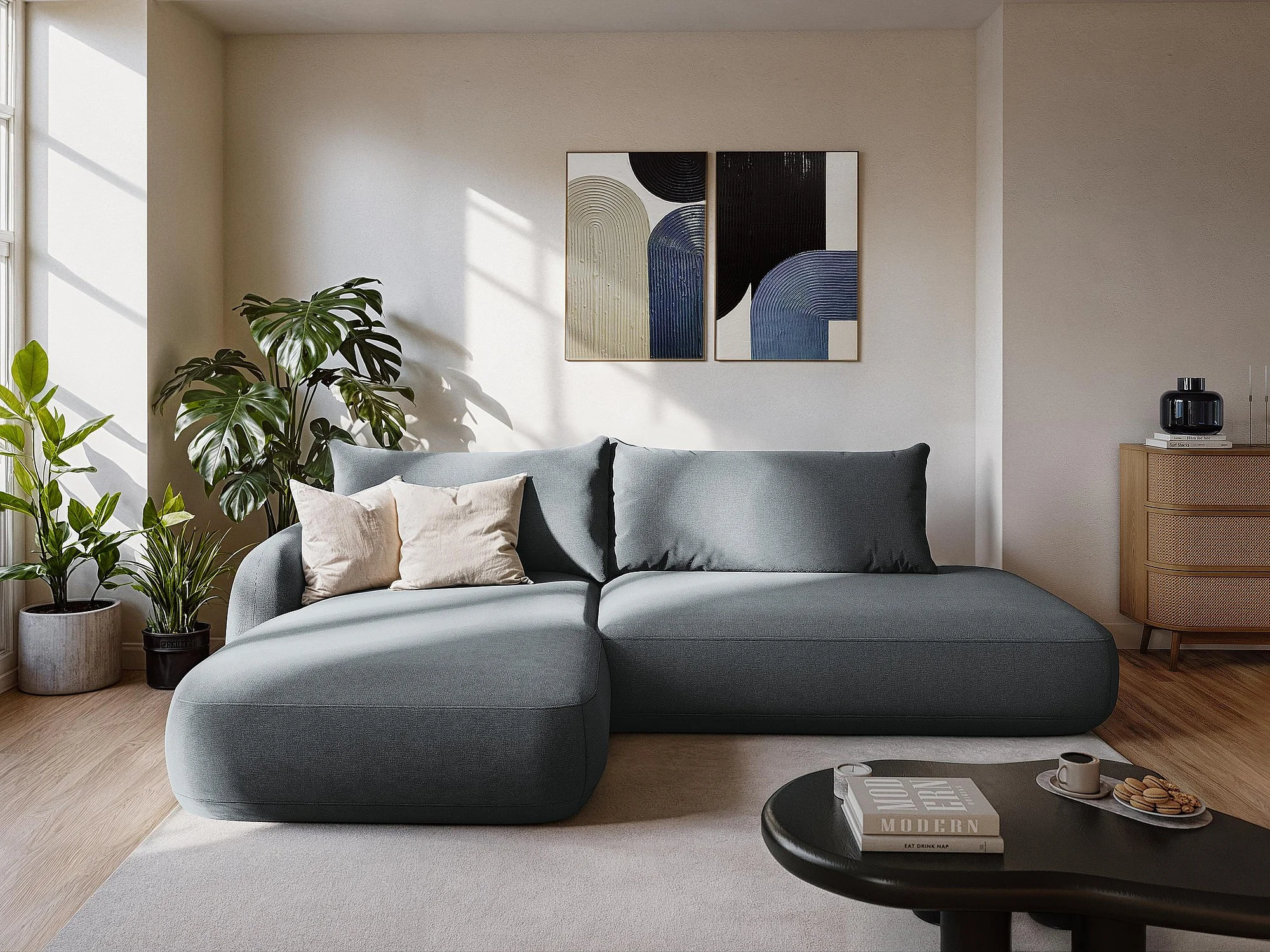 Canapé d'angle droit convertible en tissu chenille - olive - HALE